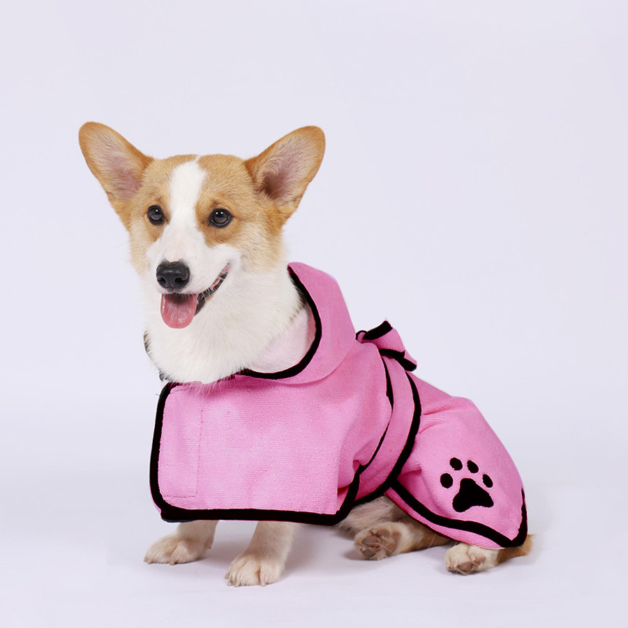 • S [두꺼운 400g 소재, 4-10kg세 이하 반려동물에게 적합] 후드 목욕가운 [핑크]