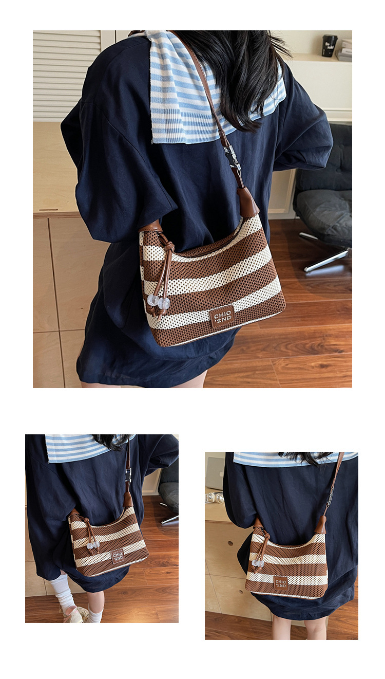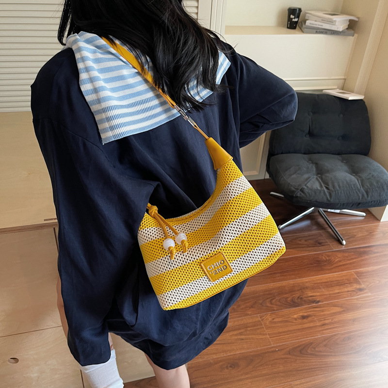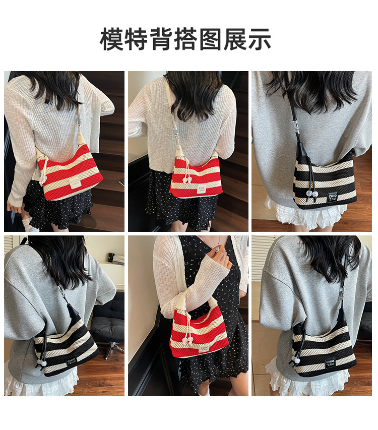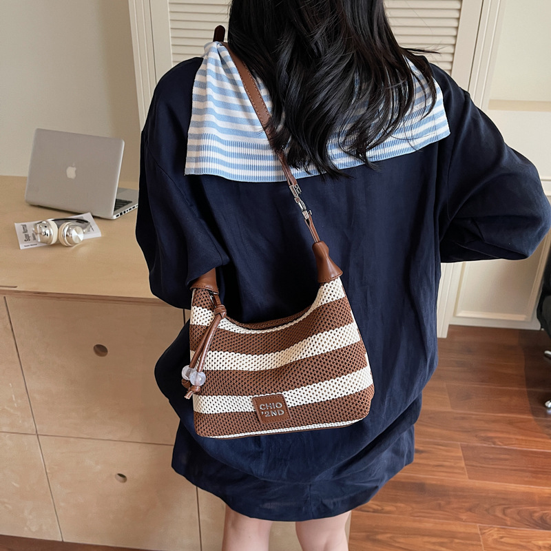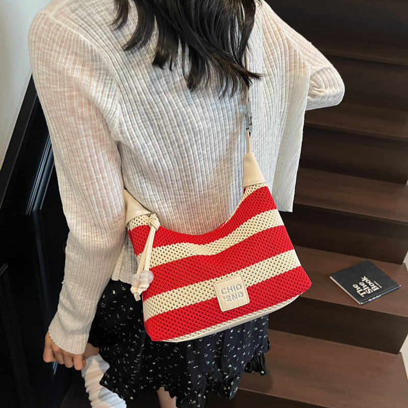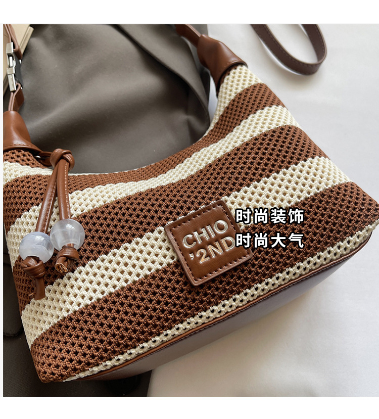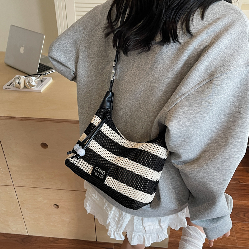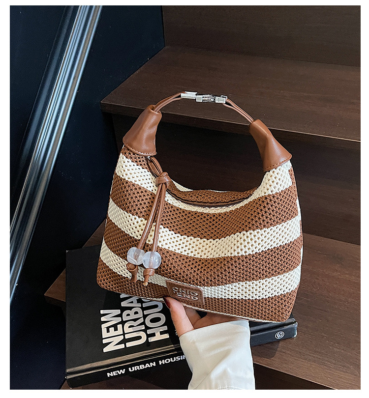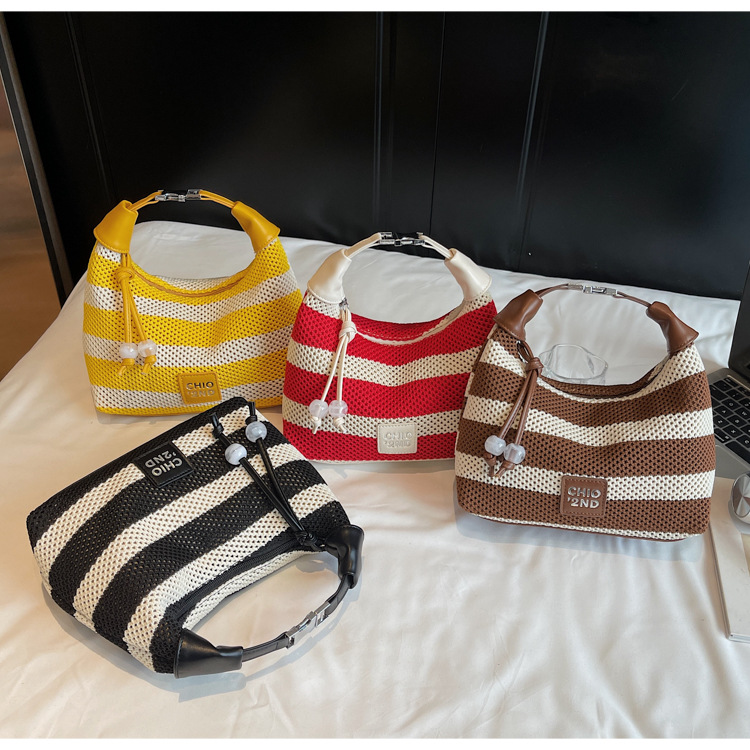 여성을 위한 고급 핸드백 2025 새로운 통근용 짠 가방 고급 스트라이프 중공 크로스바디 숄더백