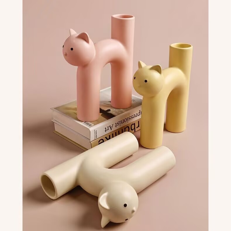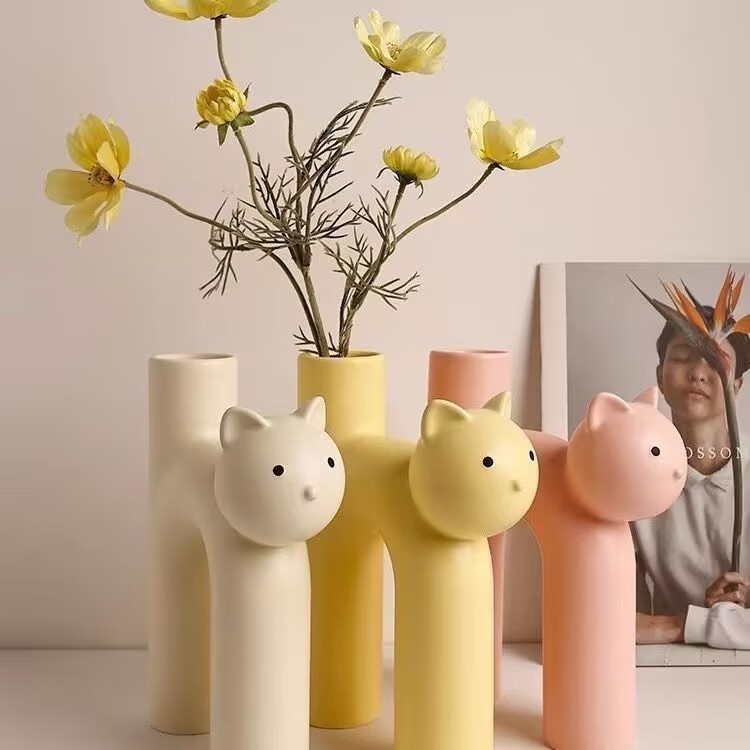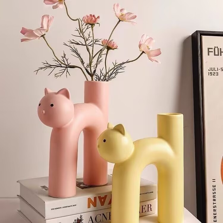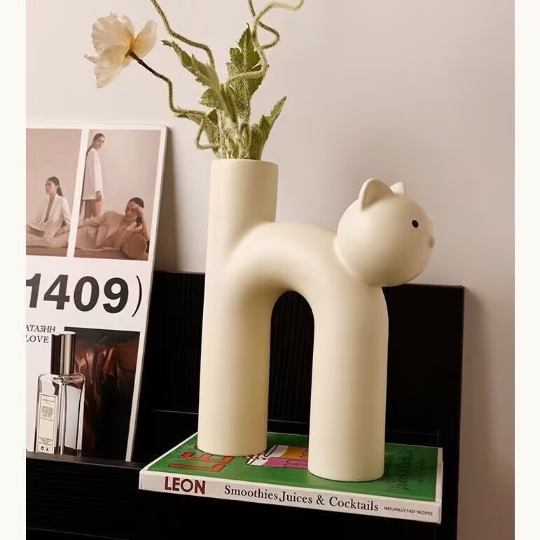 책상 꽃병 스타일 고급스러운 고양이 불규칙한 크림 스타일 북유럽 스타일 장식품 거실 슬림