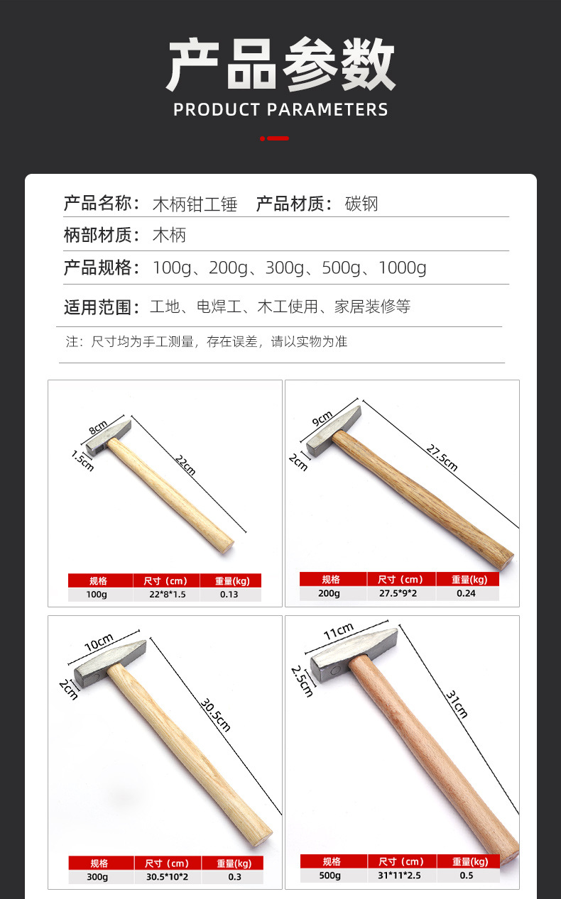 제조 업체 도매 나무 손잡이 분할 작업자 망치 작은 철 망치 가정용 수제 망치 철 망치 도구 홈 개선 목공 분할 작업자 망치스토어 가기