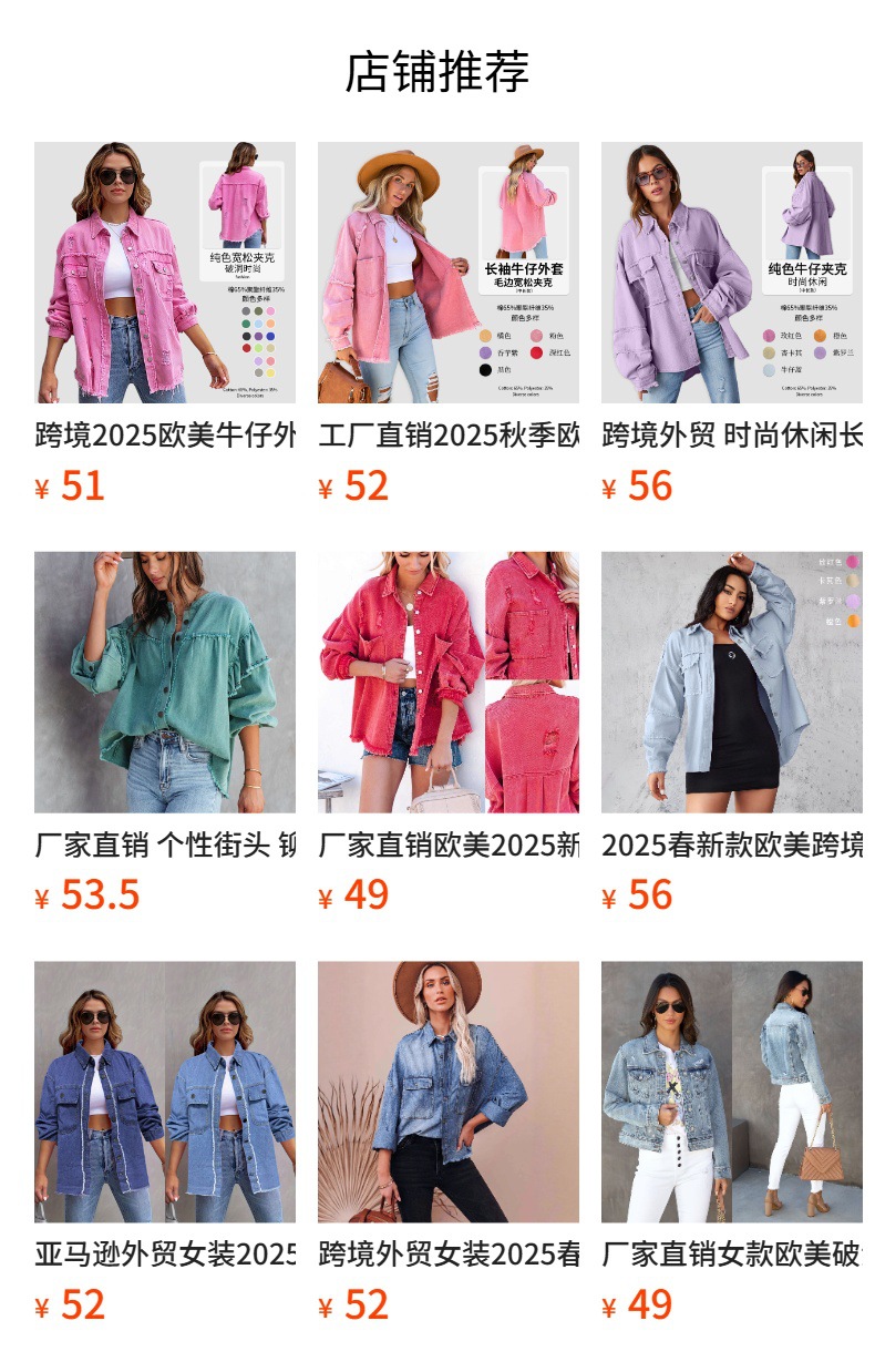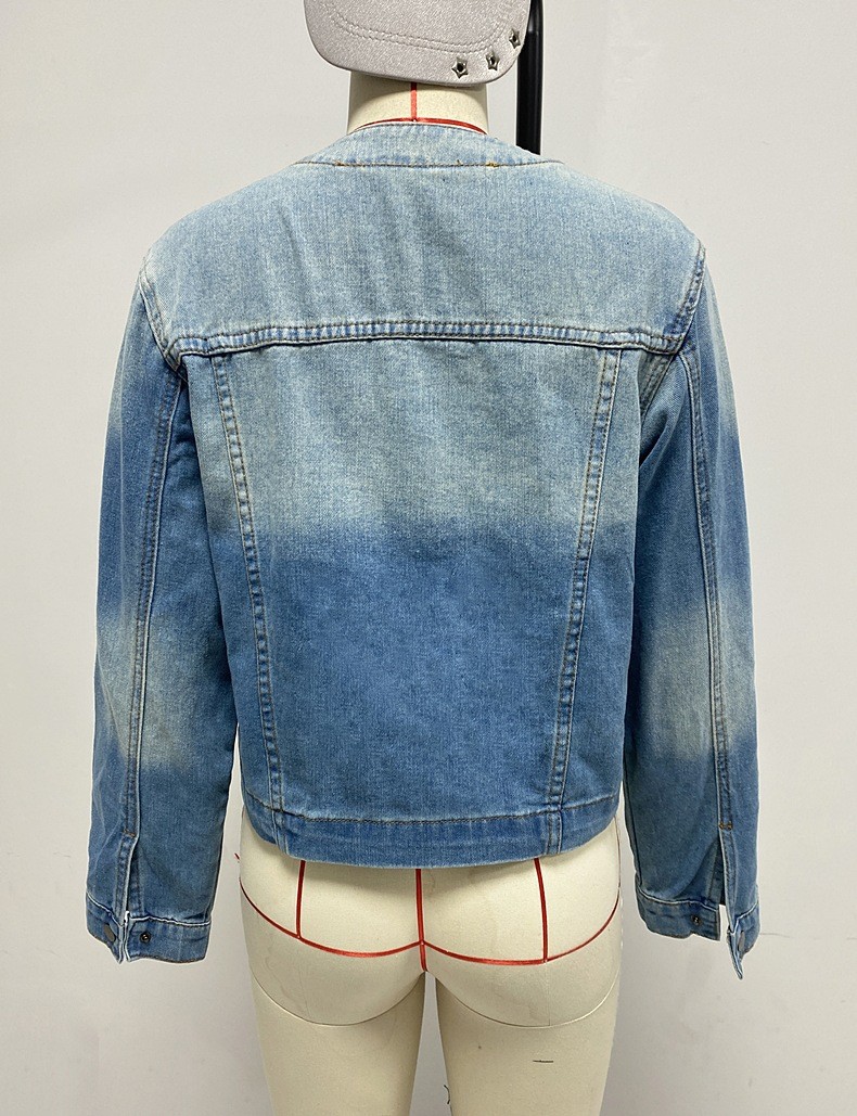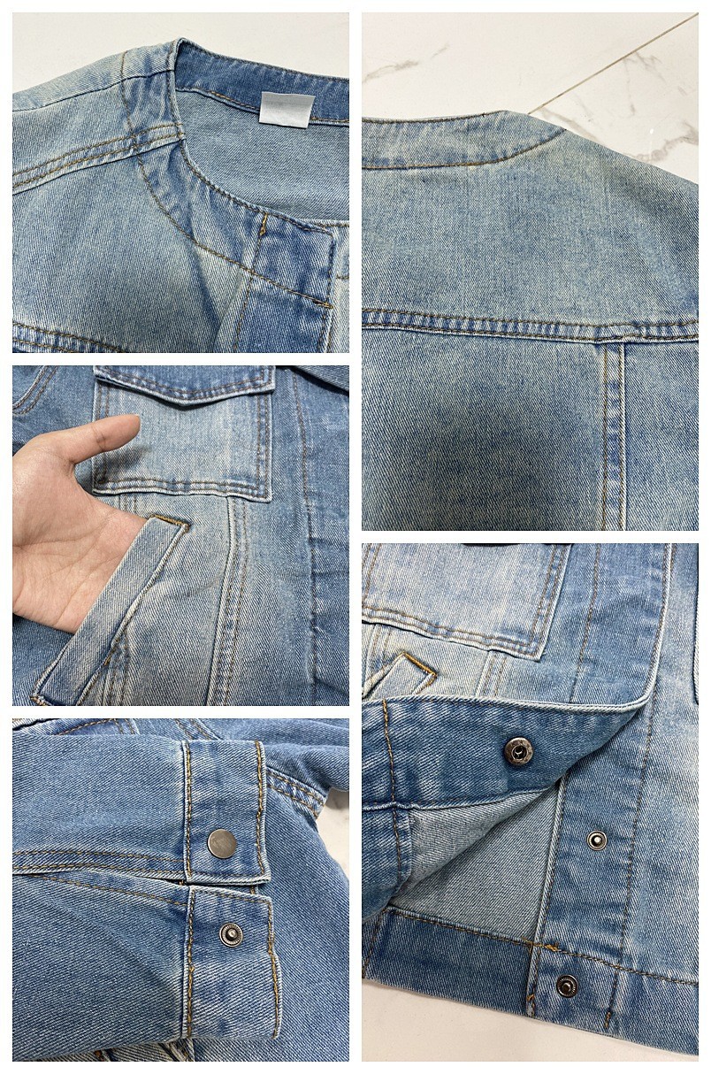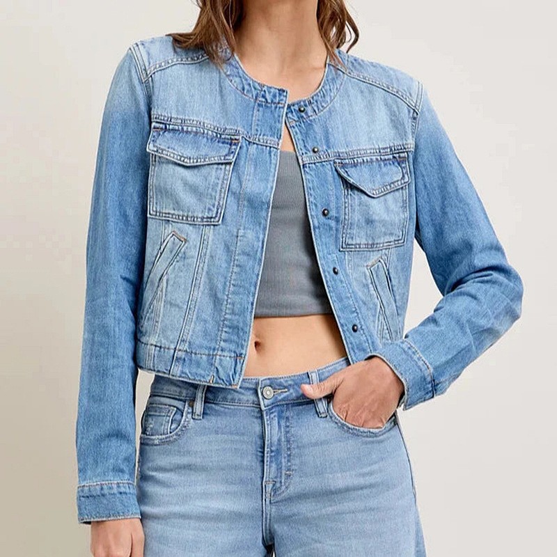 국경 간 2025 유럽과 미국 스타일의 봄 신작 여성 슬림 짧은 칼라리스 데님 재킷 카고 재킷 트렌디하고 멋지다스토어 가기