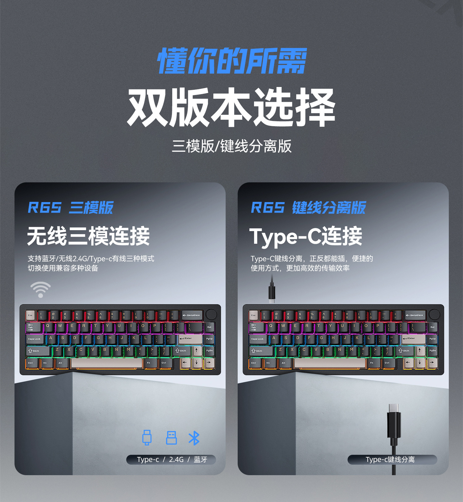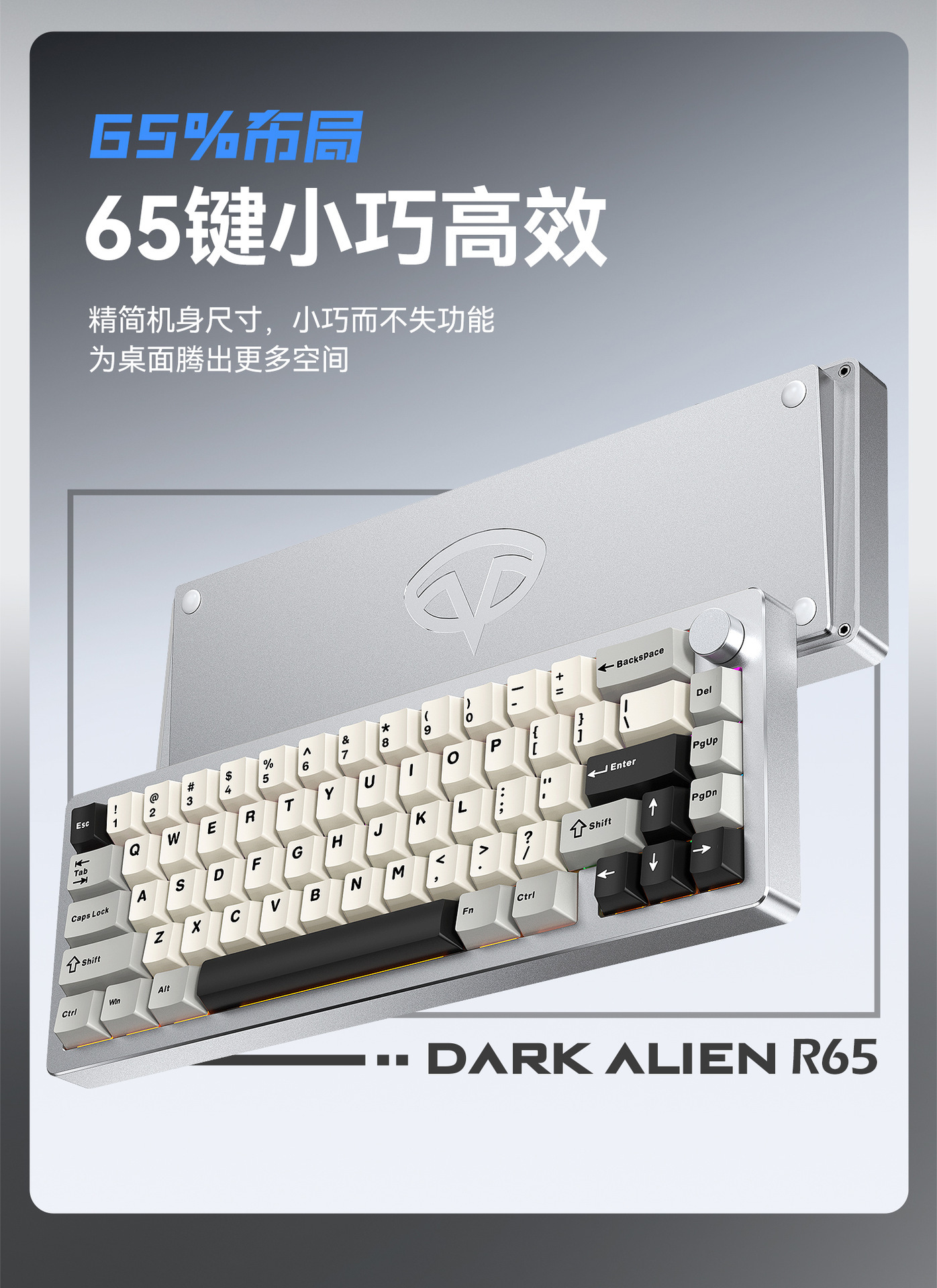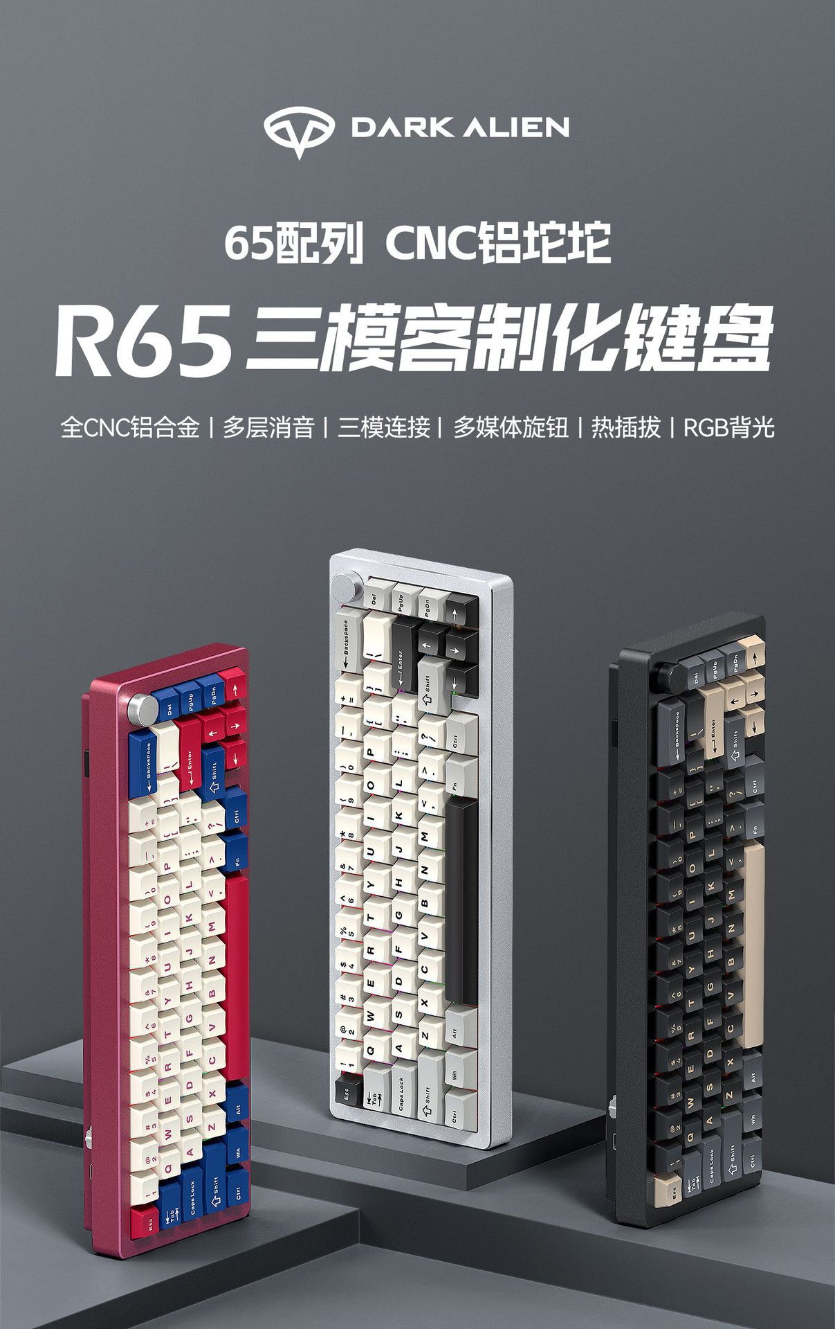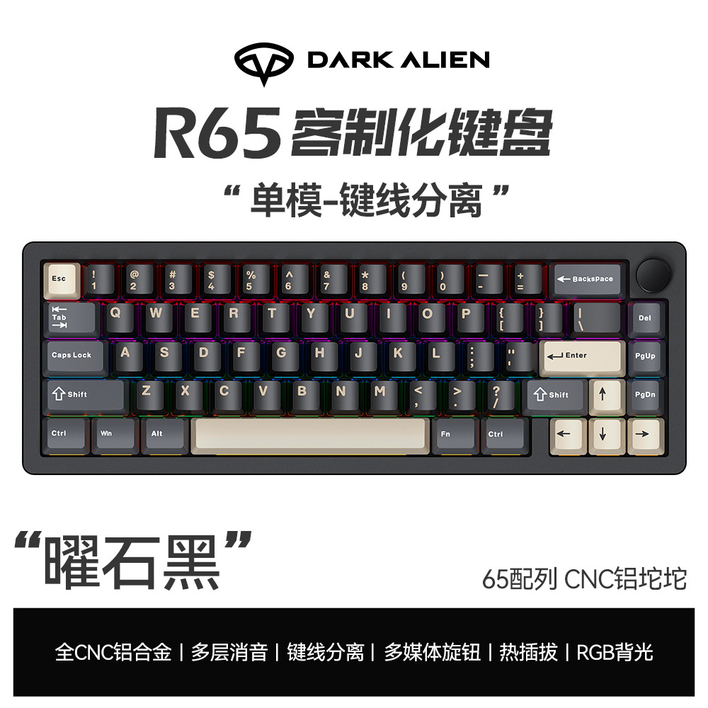 • R65 흑요석 검정색 CNC 기계식 키보드 업그레이드 버전(BT5.0+무선 2.4G+유선 유형-c 3모드)