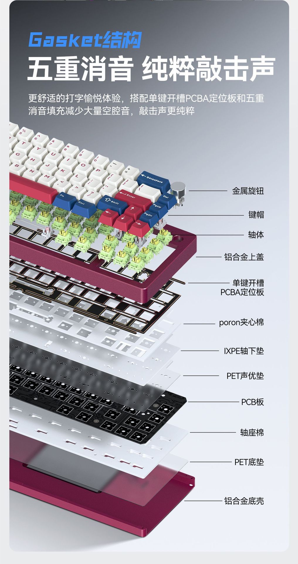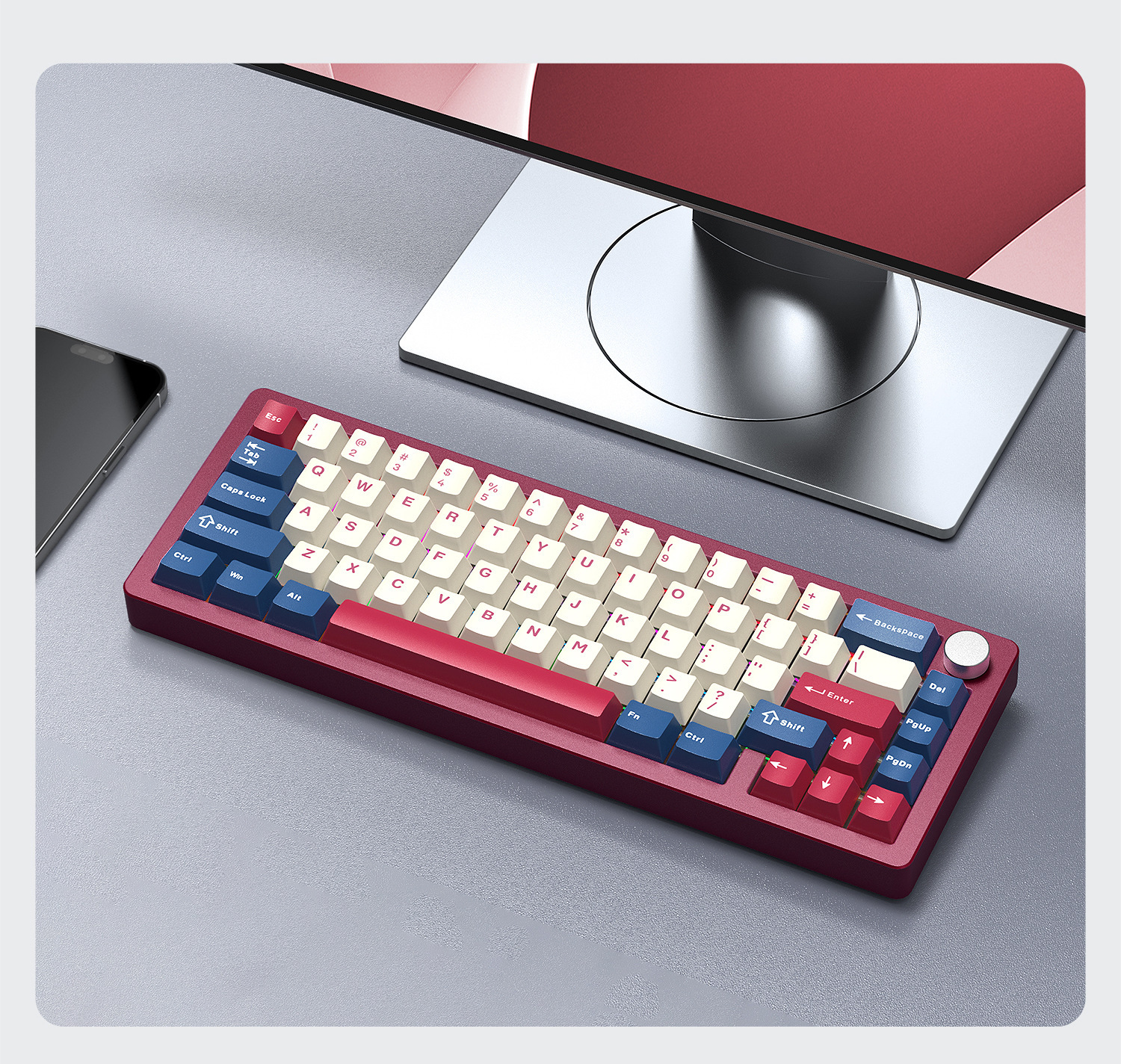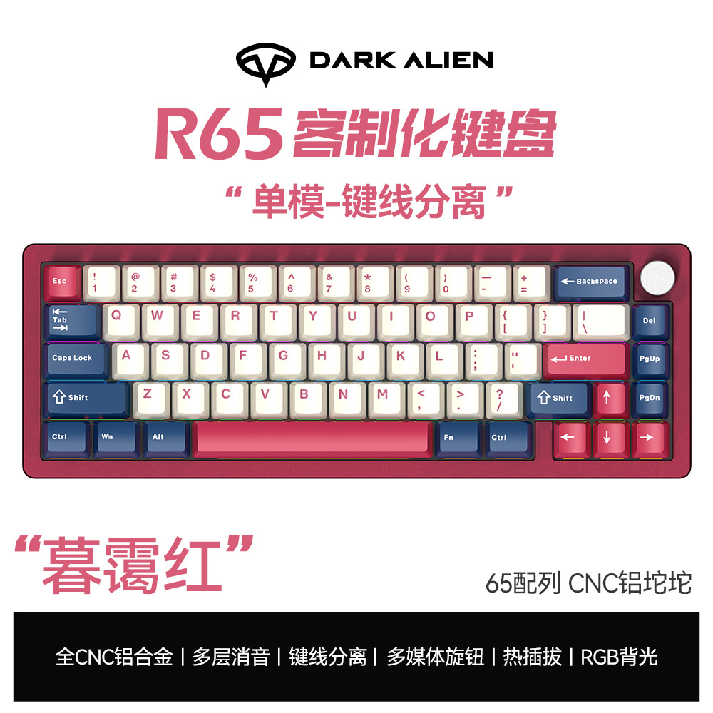 • R65 Twilight Red CNC 기계식 키보드 업그레이드 버전(BT5.0+무선 2.4G+유선 유형-c 3모드)