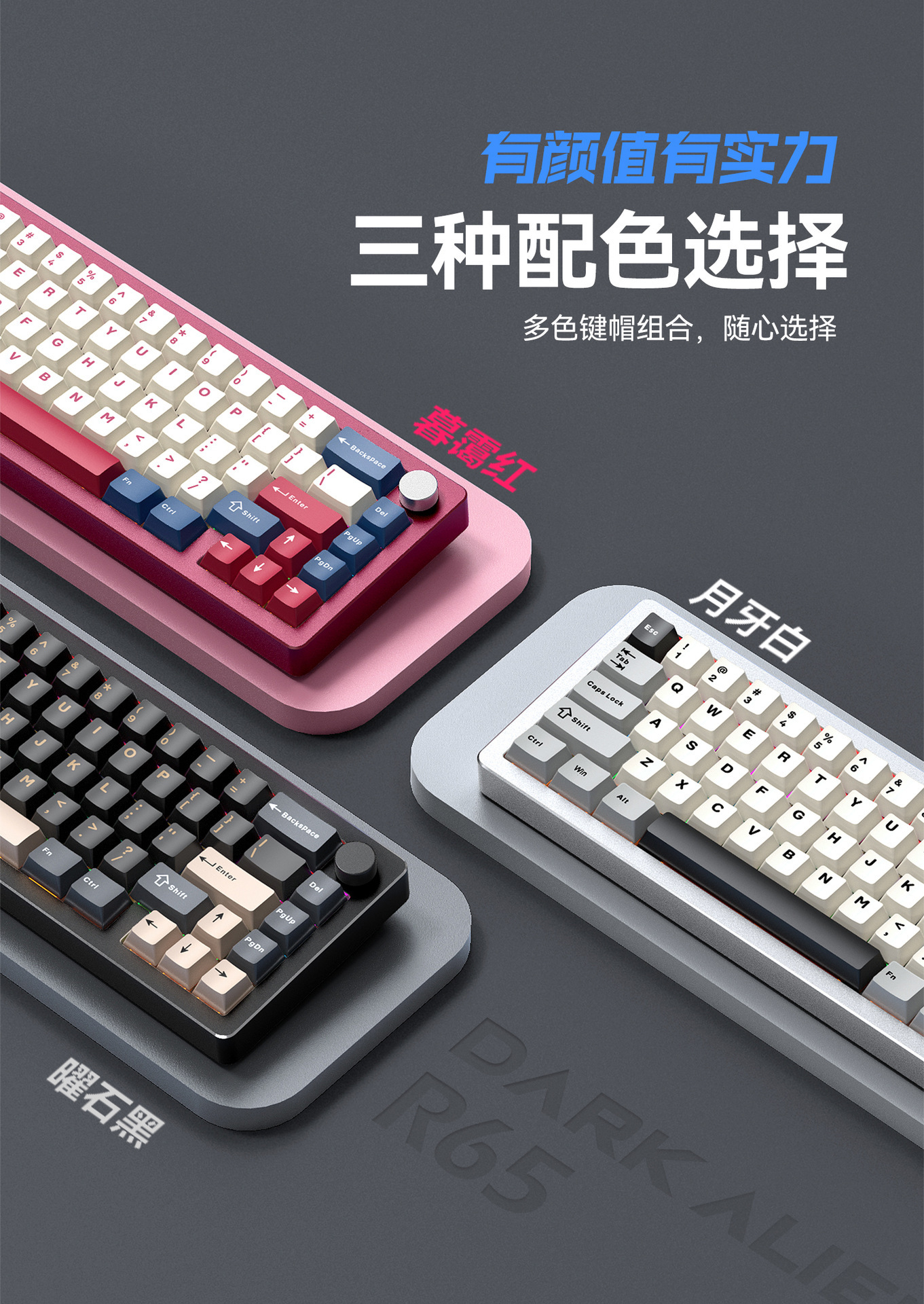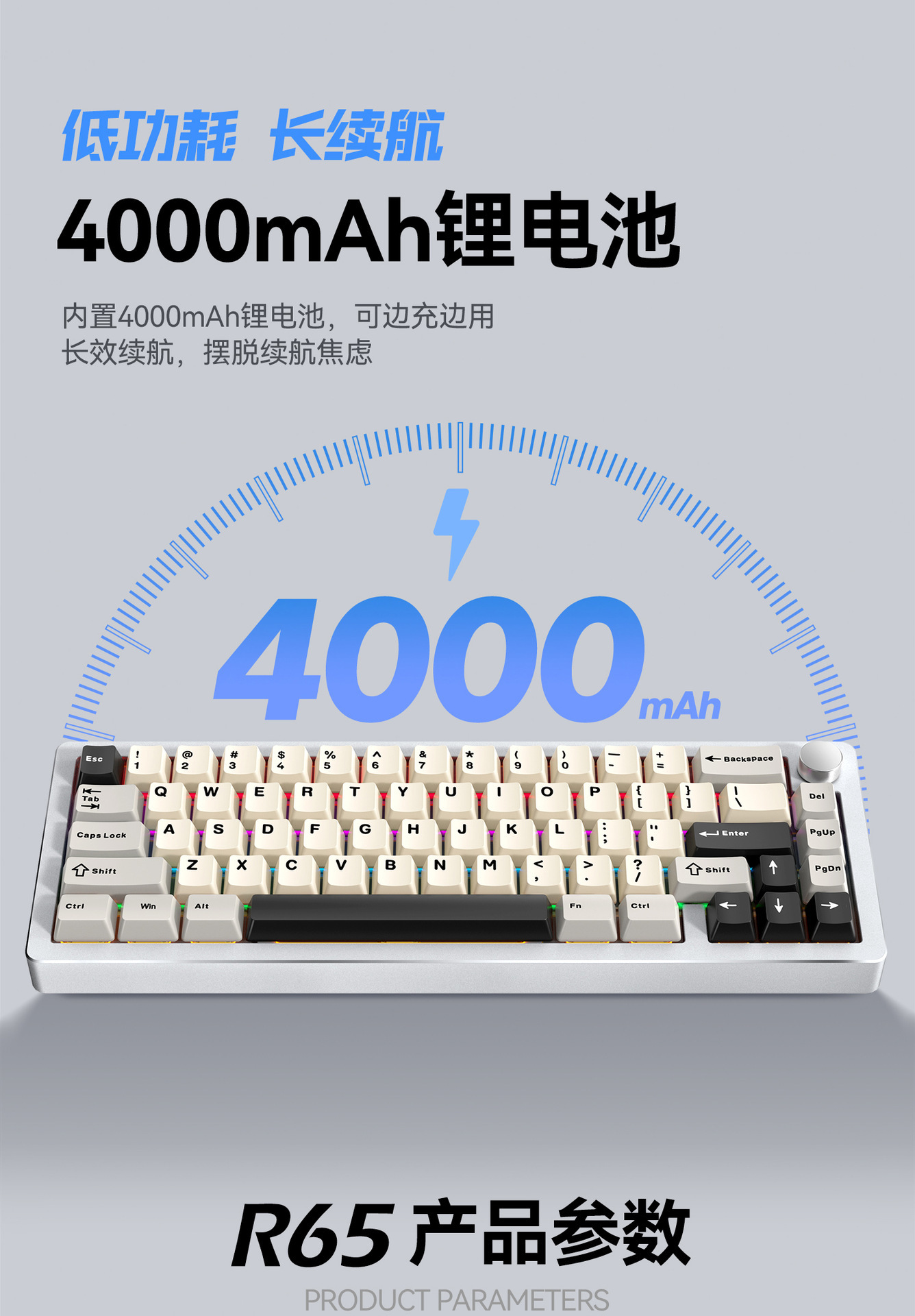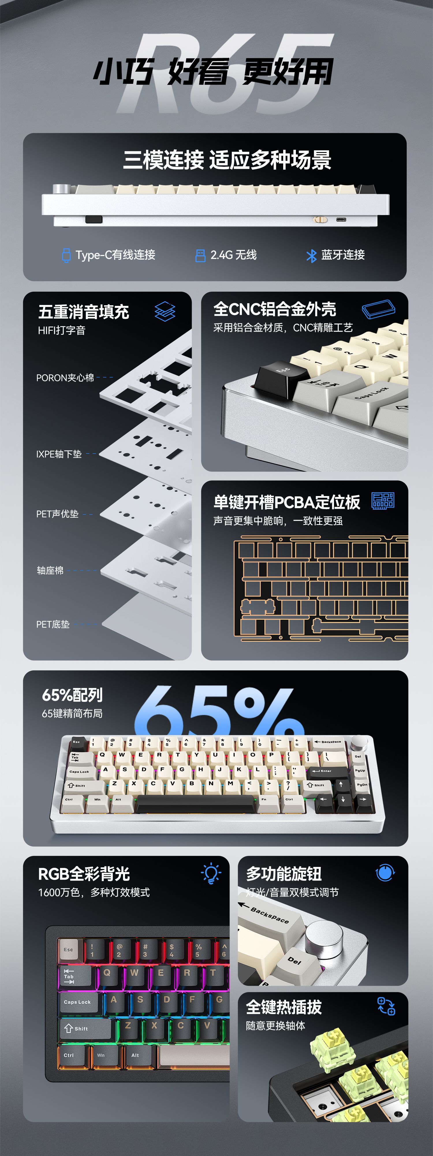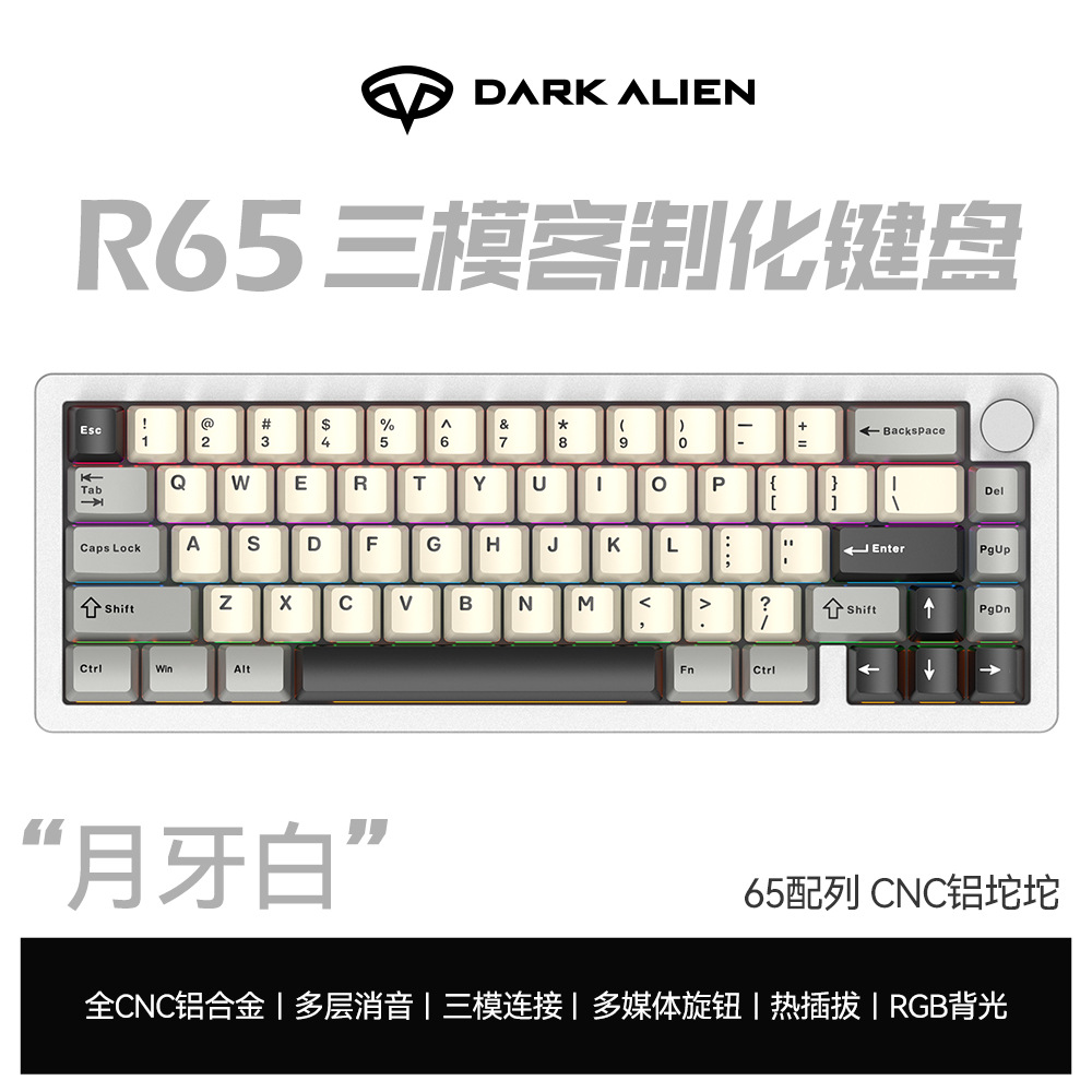 • R65 초승달 흰색 CNC 기계식 키보드 업그레이드 버전(BT5.0+무선 2.4G+유선 유형-c 3모드)