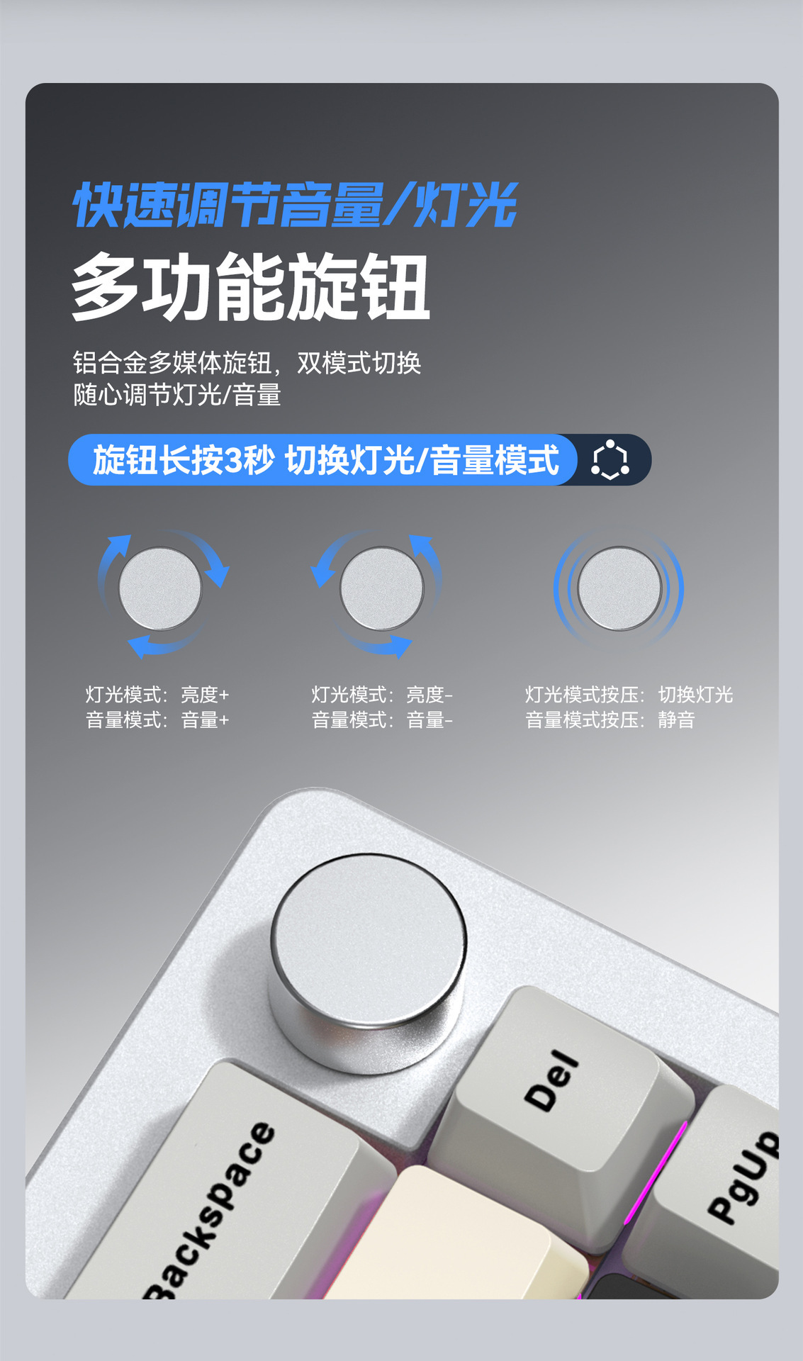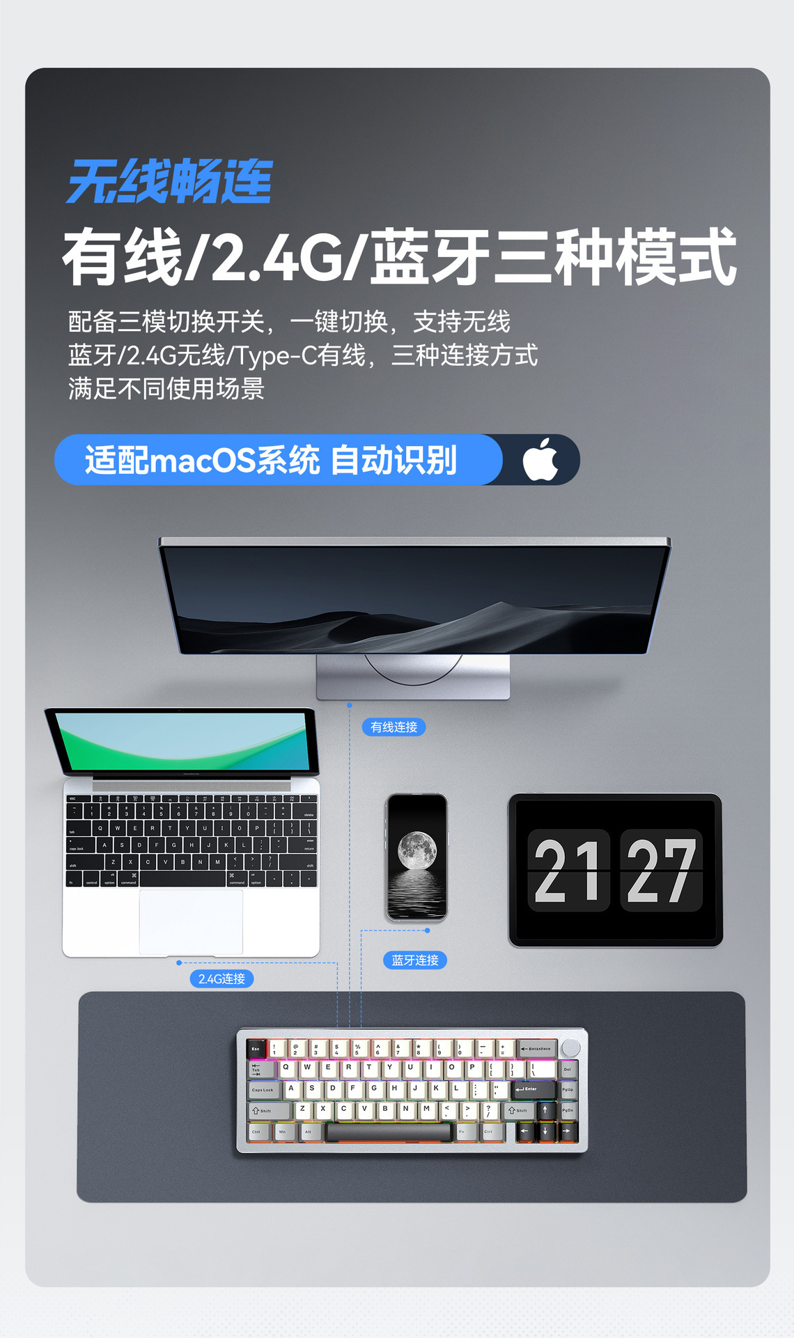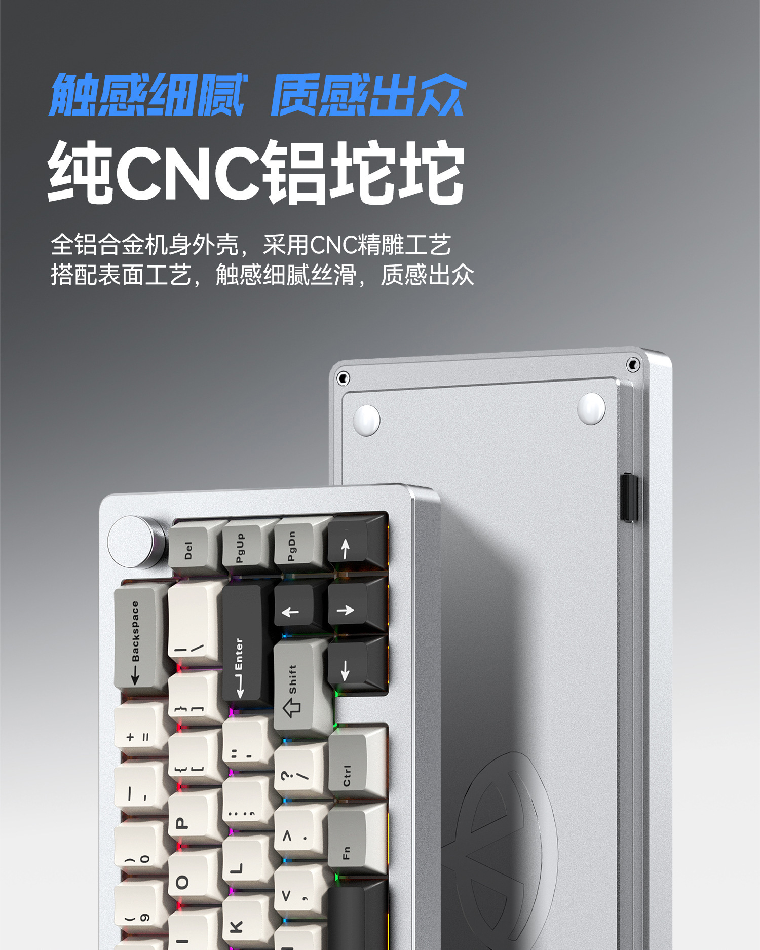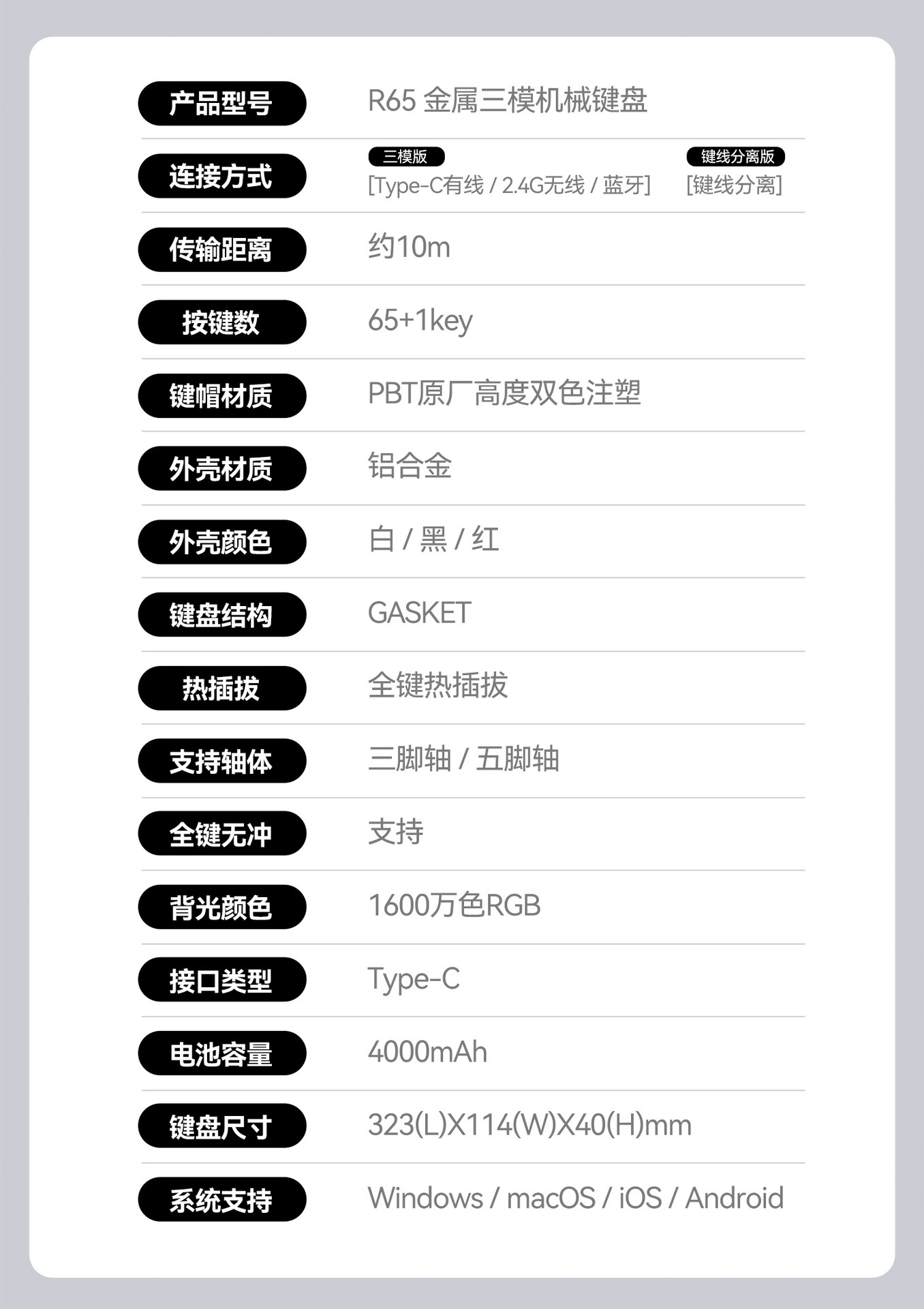 • R65 초승달 흰색 CNC 기계식 키보드 업그레이드 버전(BT5.0+무선 2.4G+유선 유형-c 3모드)