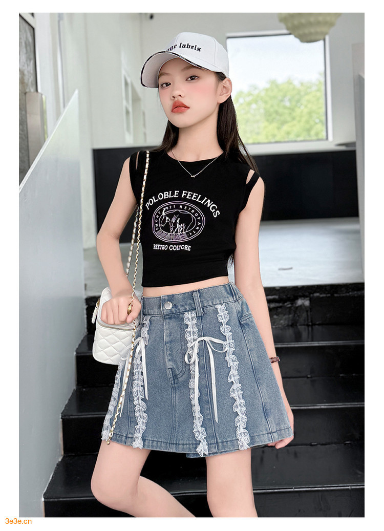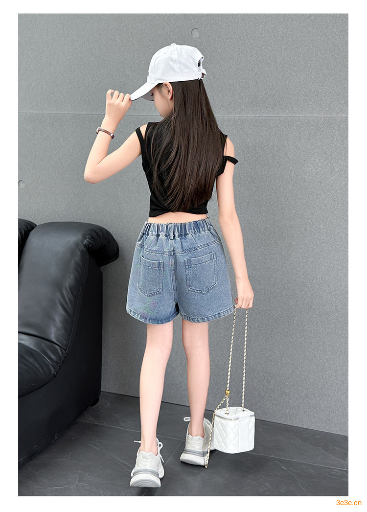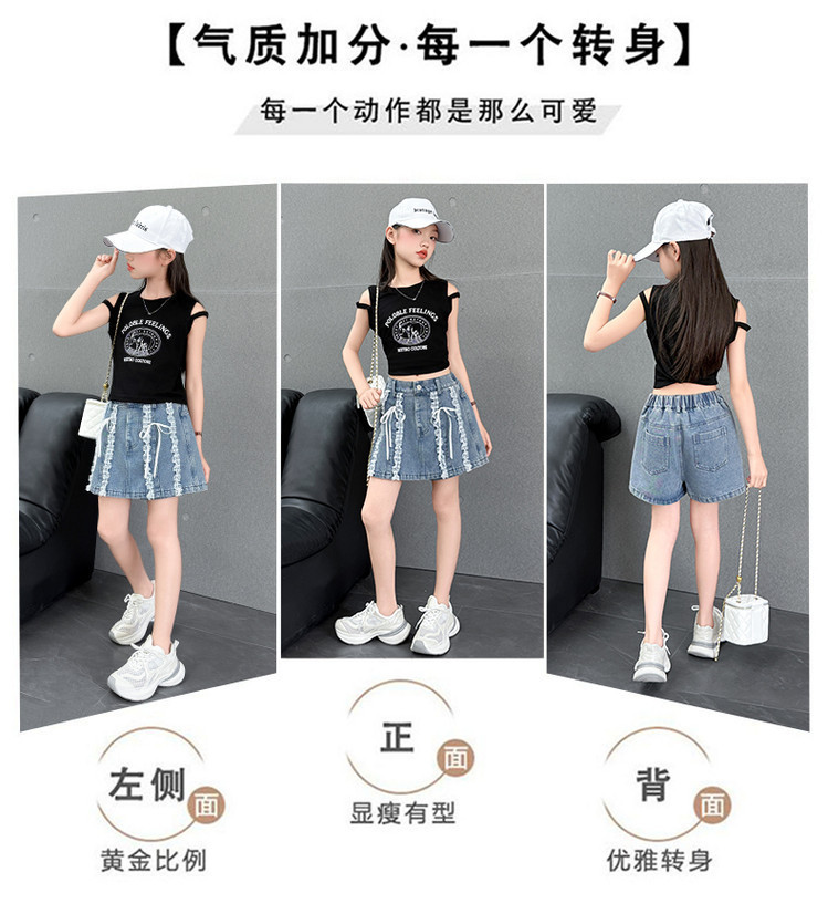 크로스보더 여아 여름 데님 스커트, 한국식 스위트 레이스 스커트, 중대형 아동 패션 다용도 반바지 스커트스토어 가기