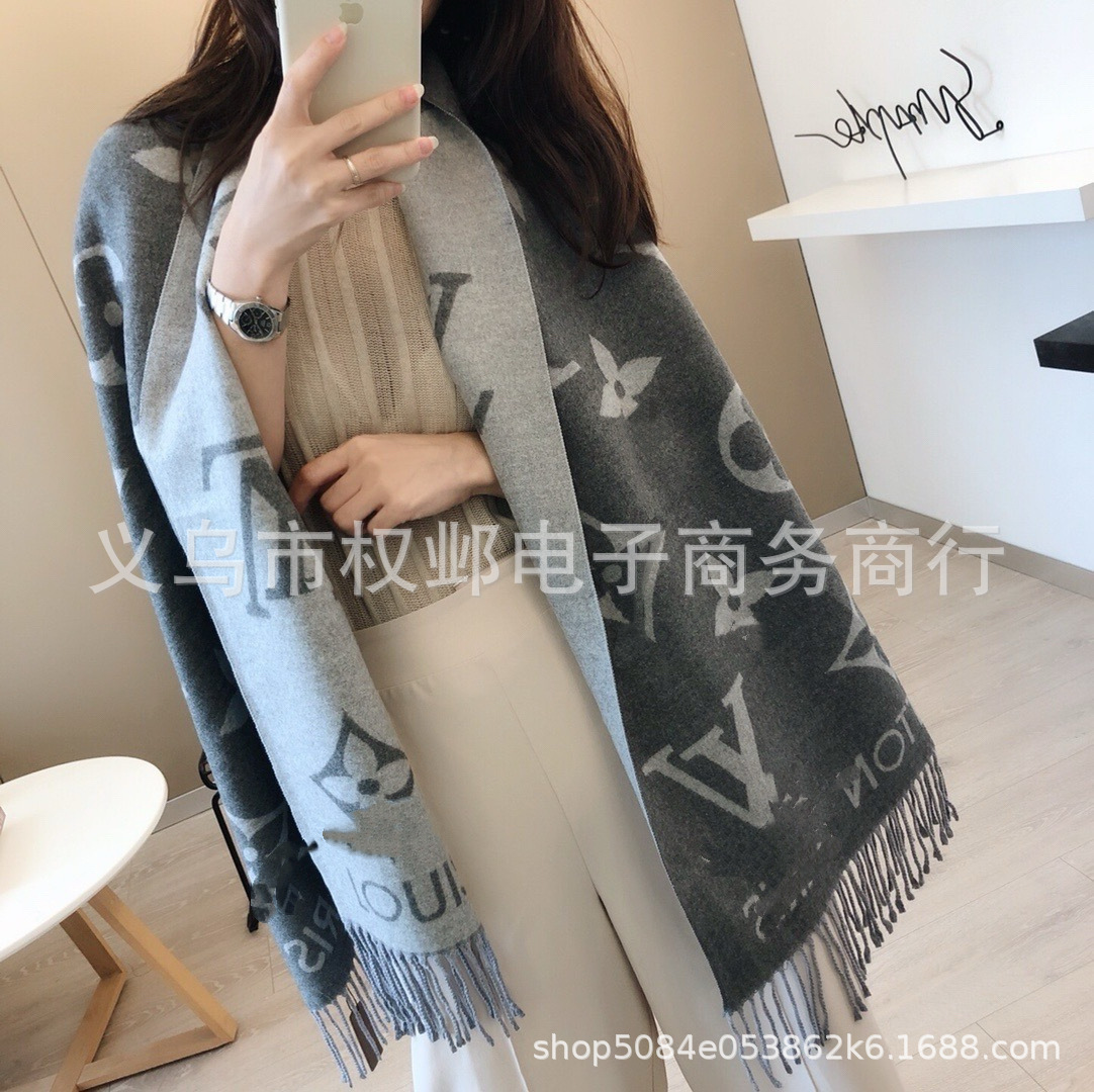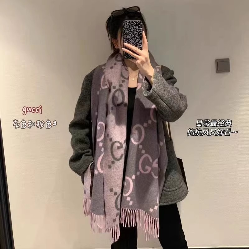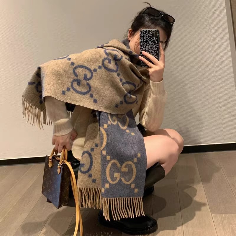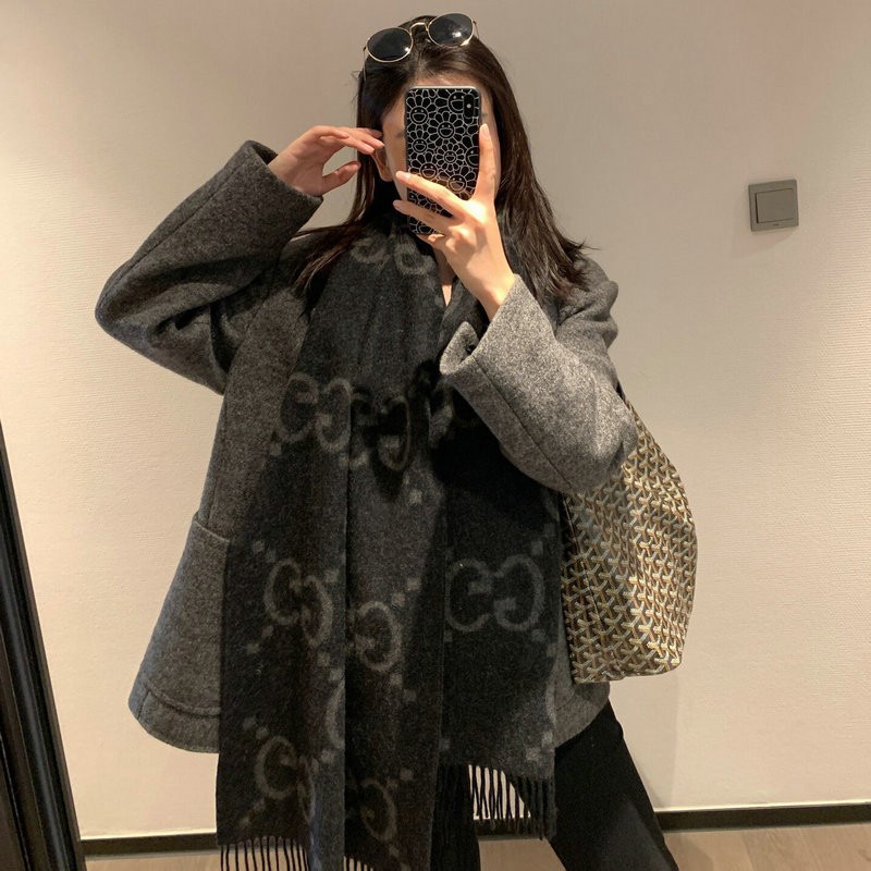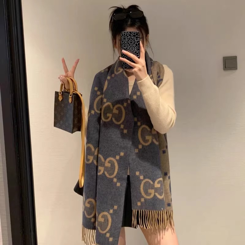 크로스보더 가을 겨울 4색 더블 G 캐시미어 태슬 스카프 블랙 그레이 4색 G 여성용 다용도 숄 빅 레터 자카드 스카프스토어 가기