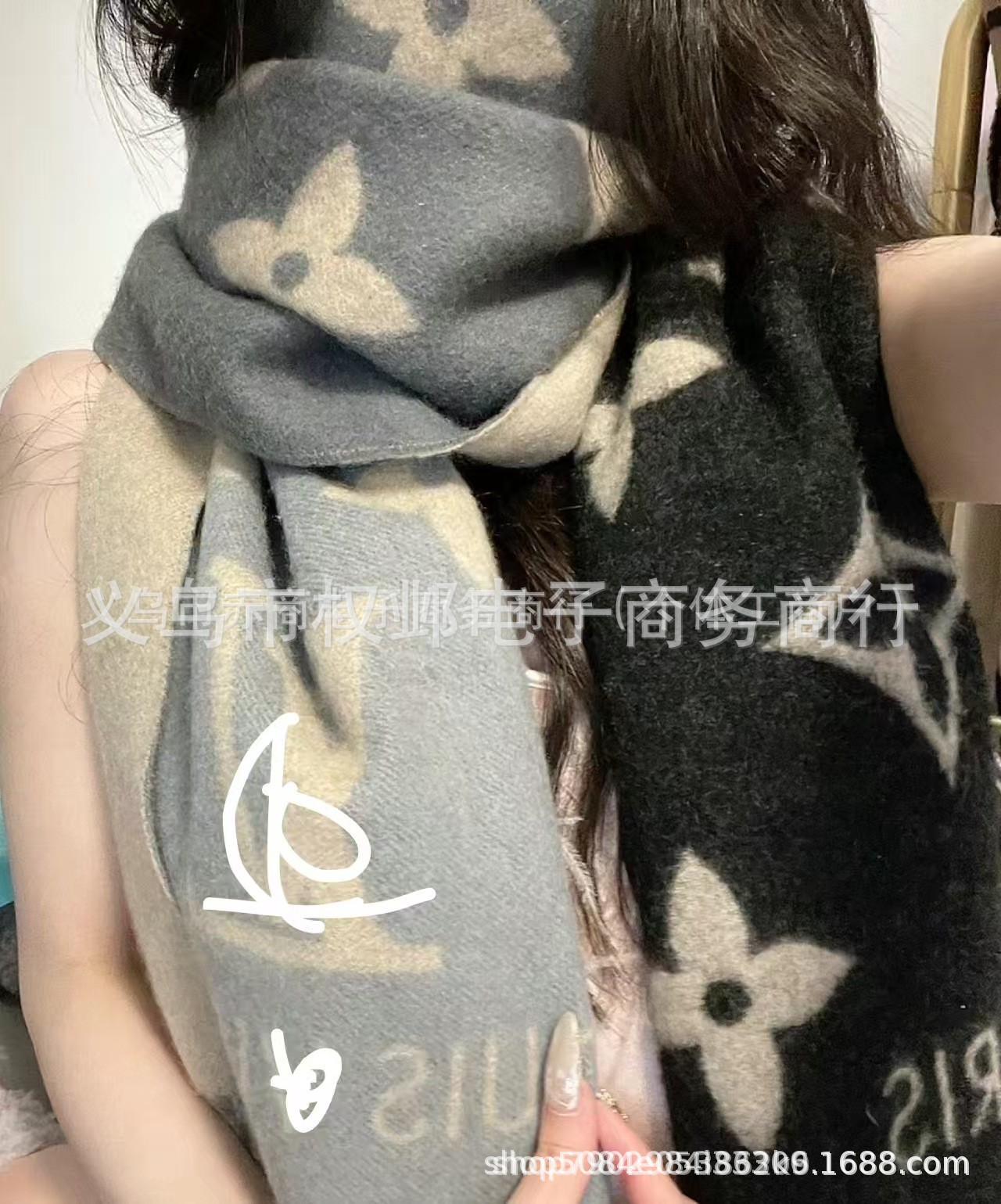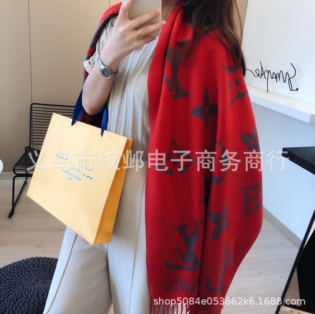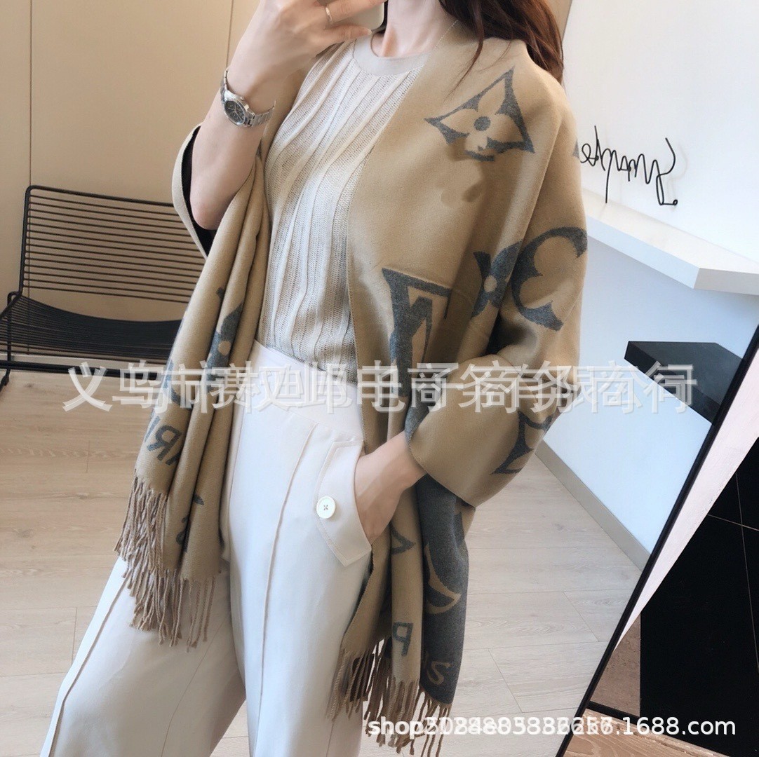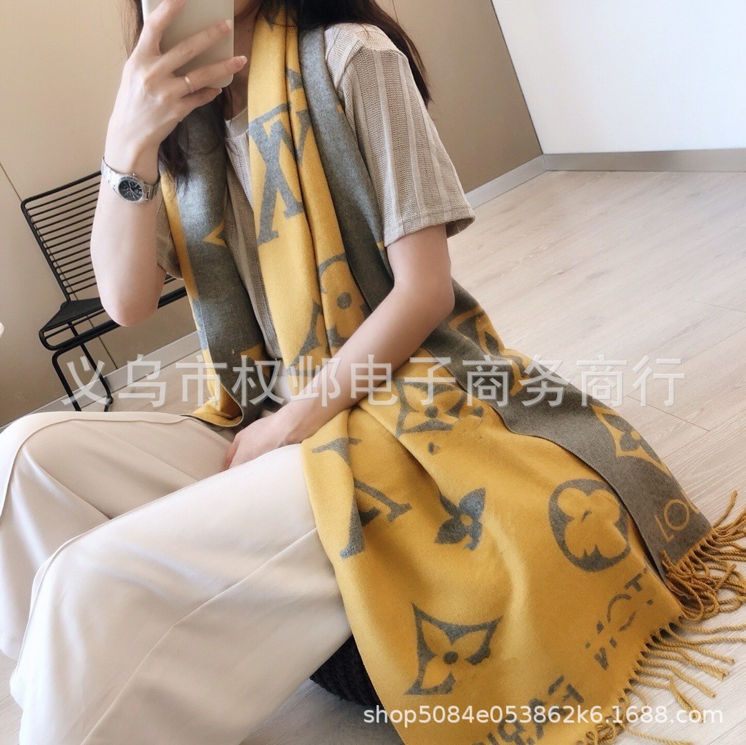 크로스보더 가을 겨울 4색 더블 G 캐시미어 태슬 스카프 블랙 그레이 4색 G 여성용 다용도 숄 빅 레터 자카드 스카프스토어 가기
