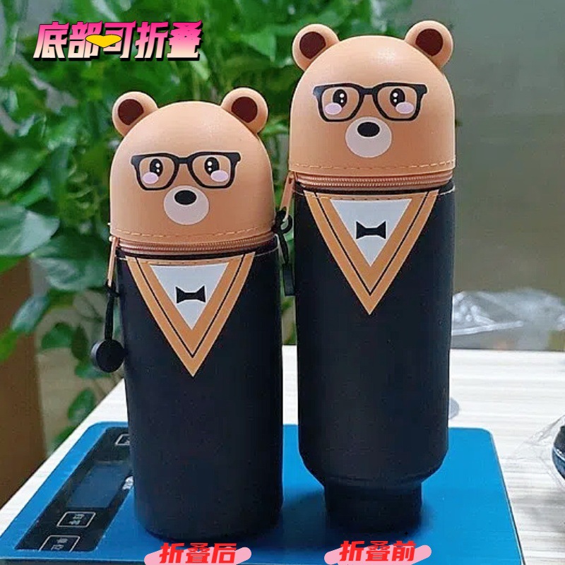 어린이 연필 가방 실리콘 연필 상자 DlY 귀여운 패턴 연필 가방 자이언트 팬더 펜 홀더 귀여운 만화 여우스토어 가기