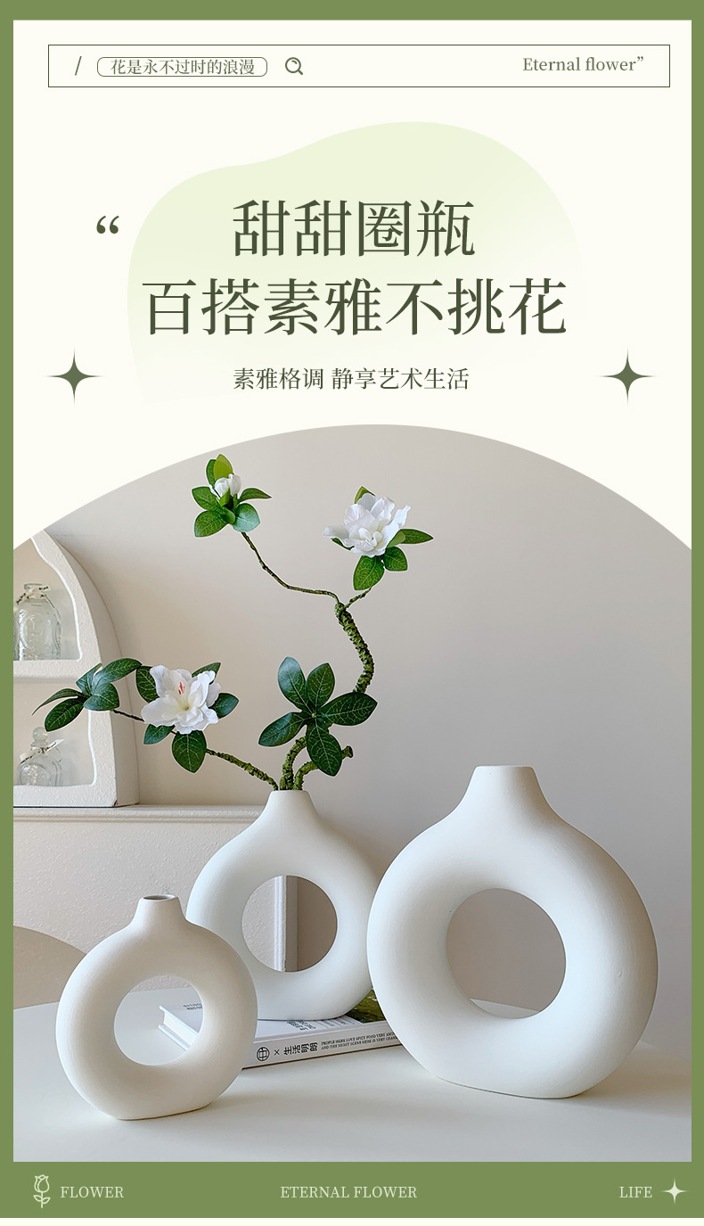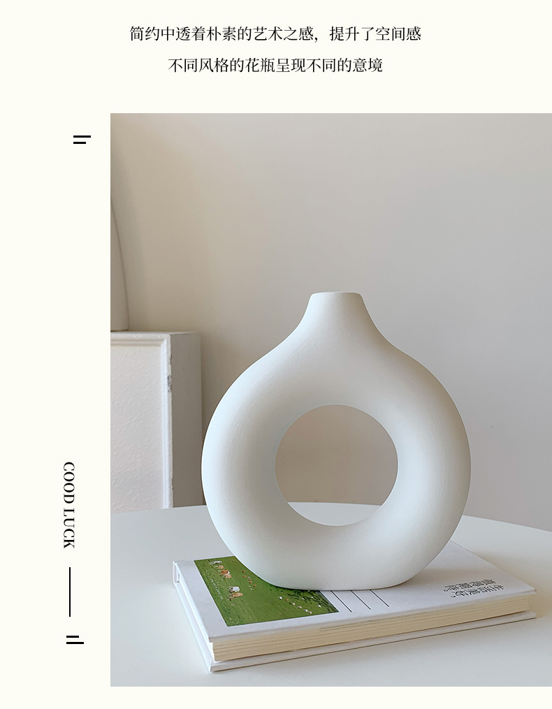 크리 에이 티브 간단한 흰색 세라믹 꽃병 꽃꽂이 북유럽 스타일 장식 장식품 도넛 병 3 피스 세트 도매