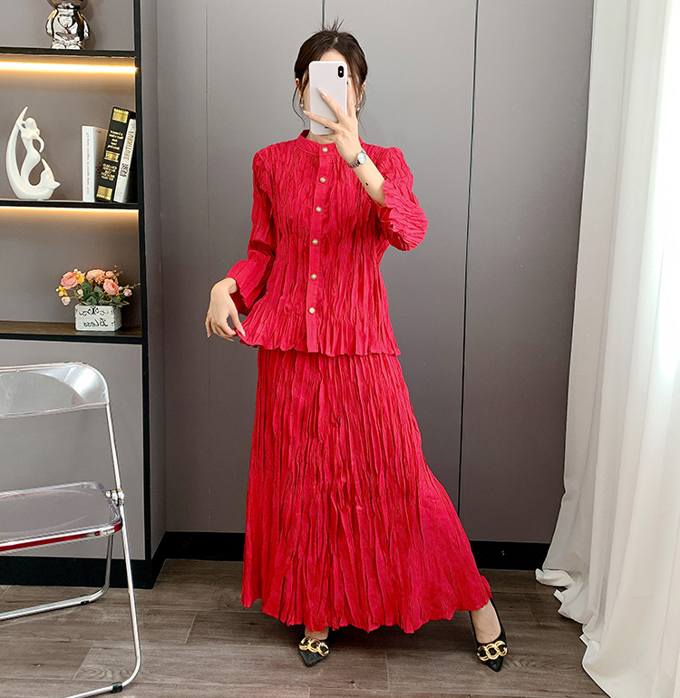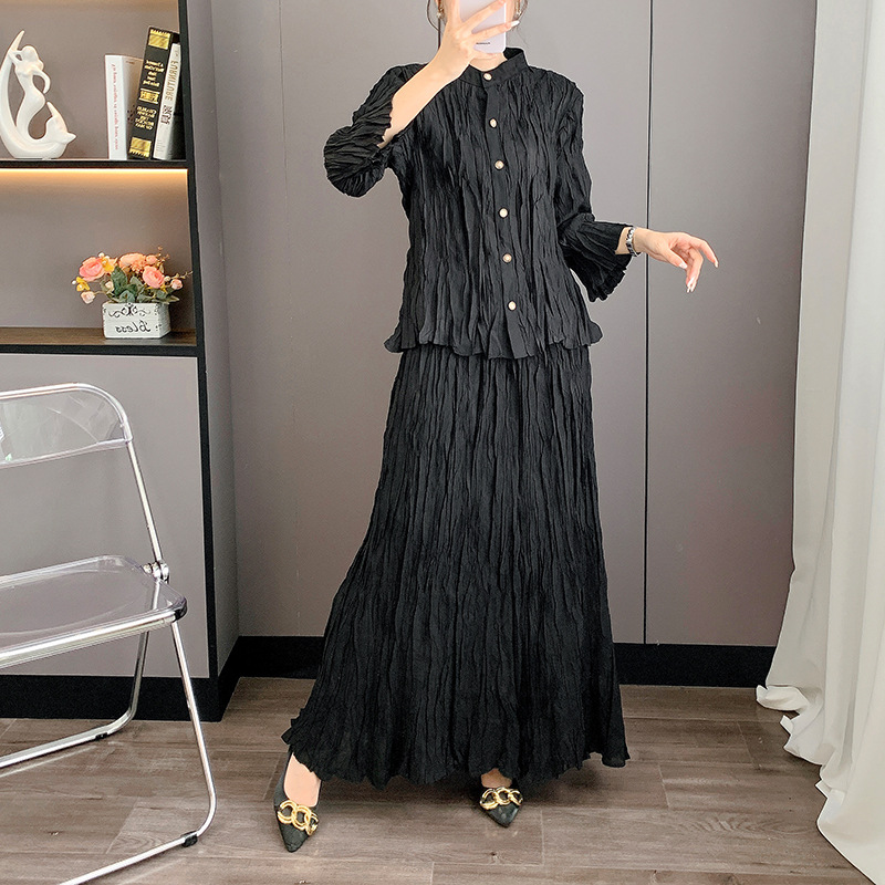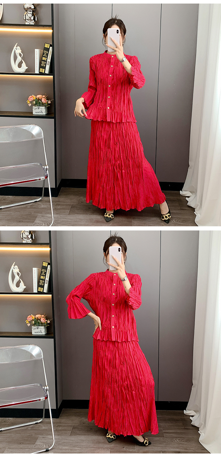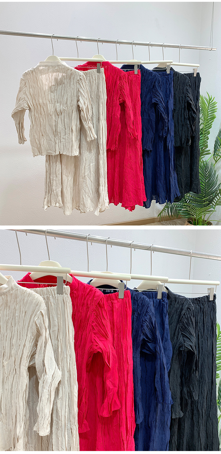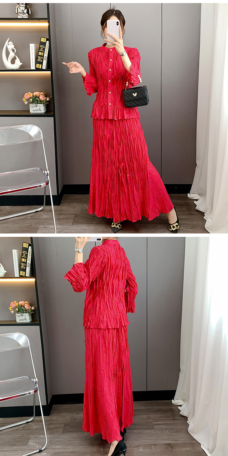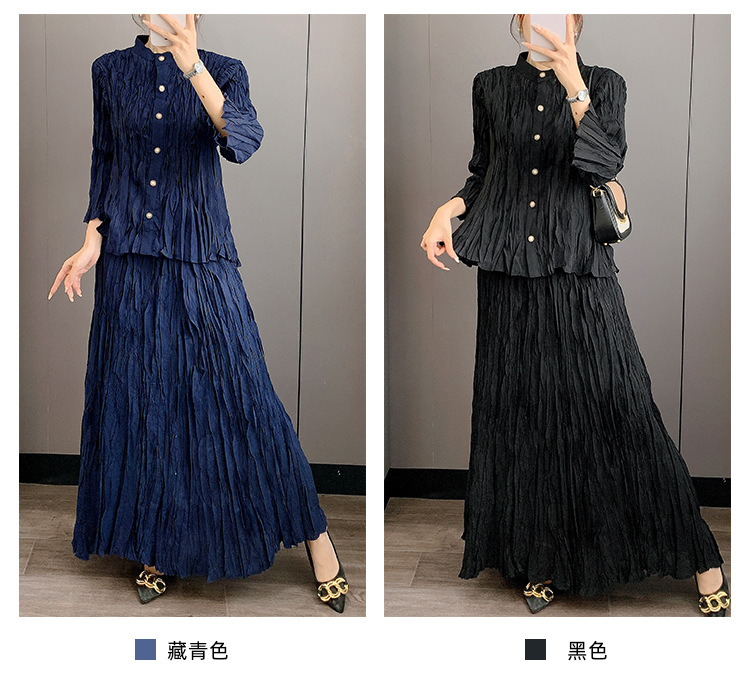 플리츠 정장 2025 여름 신상 여성스러운 우아한 고급 슬림핏 라운드넥 원피스 투피스 세트