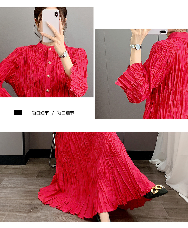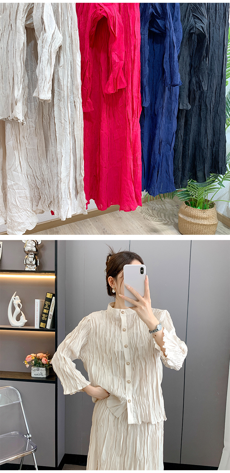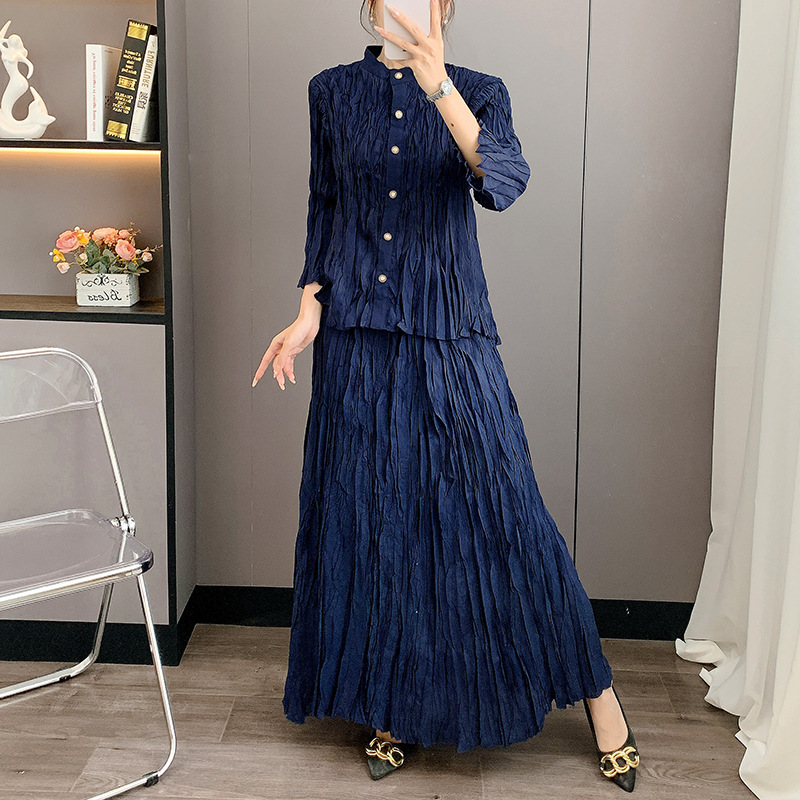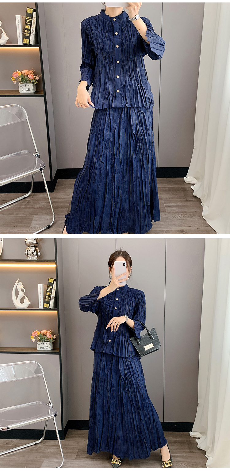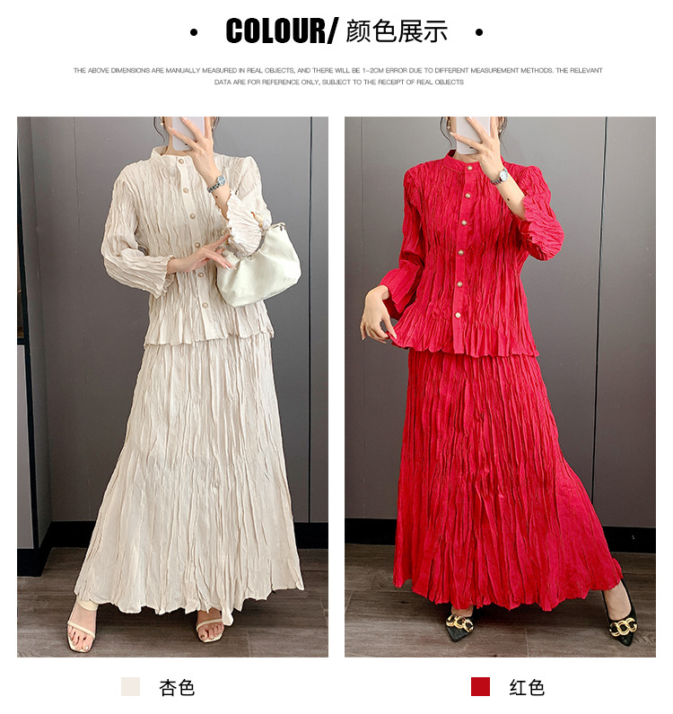 플리츠 정장 2025 여름 신상 여성스러운 우아한 고급 슬림핏 라운드넥 원피스 투피스 세트스토어 가기