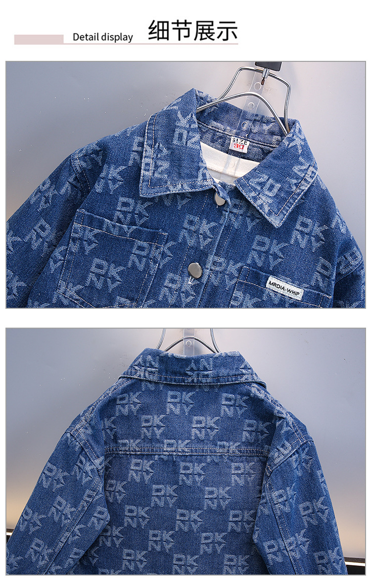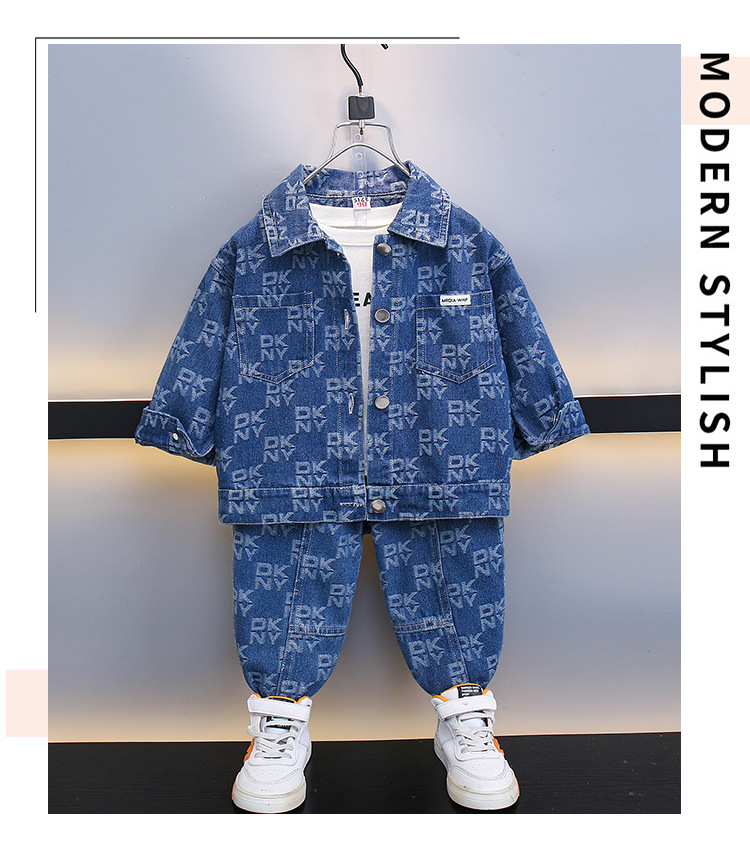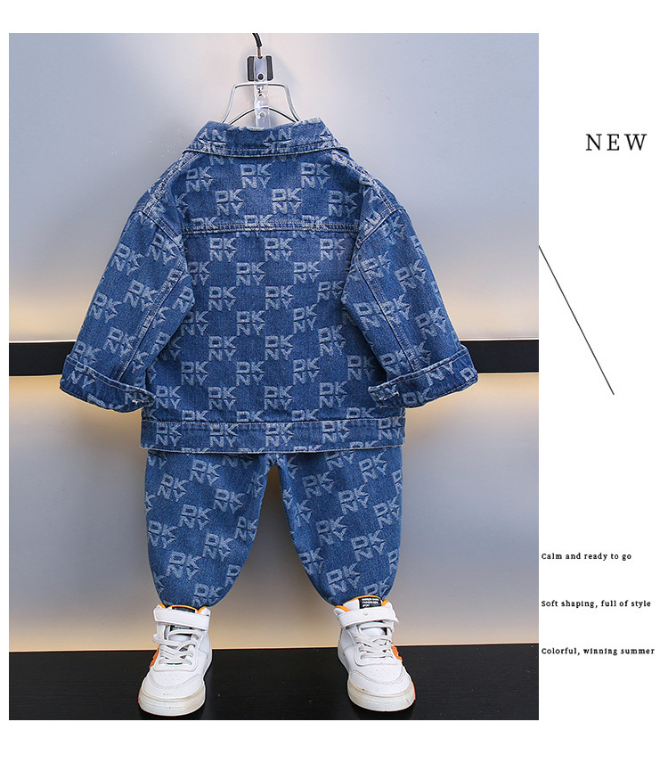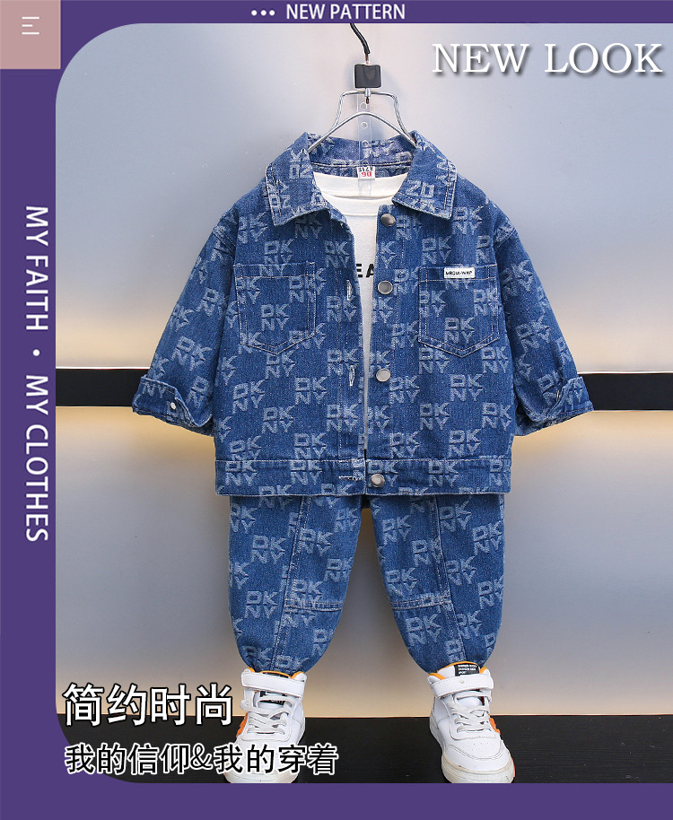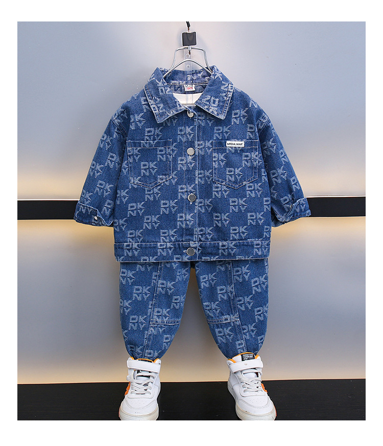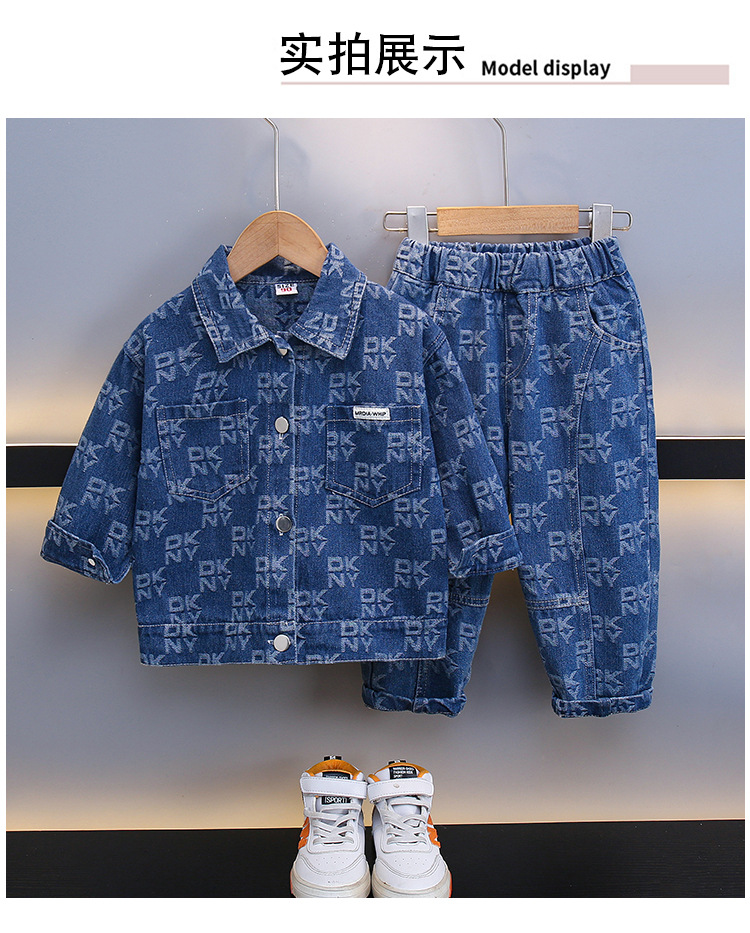 2025 봄, 가을 새로운 패션 어린이 알파벳 인쇄 데님 스포츠 긴팔 투피스 세트 드롭 배송