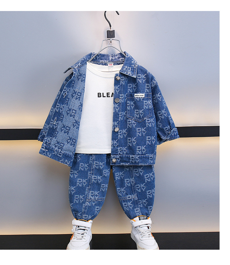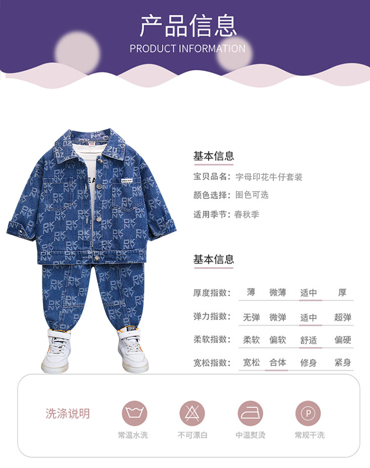 2025 봄, 가을 새로운 패션 어린이 알파벳 인쇄 데님 스포츠 긴팔 투피스 세트 드롭 배송스토어 가기