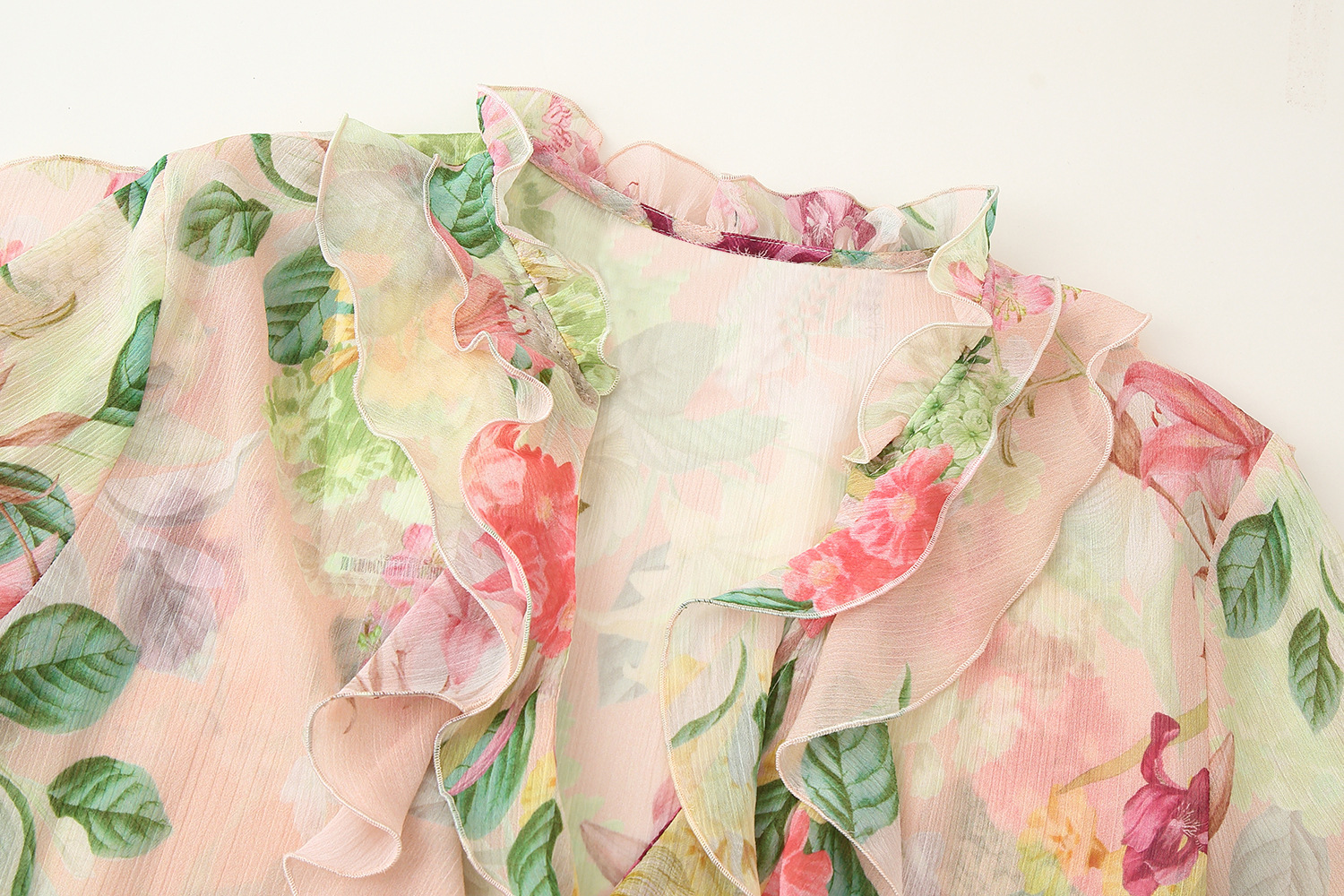 AliExpress 도매 여름 새로운 여성 의류 다목적 꽃 인쇄 v 넥 계층화 된 장식 긴 소매 느슨한 쉬폰 셔츠