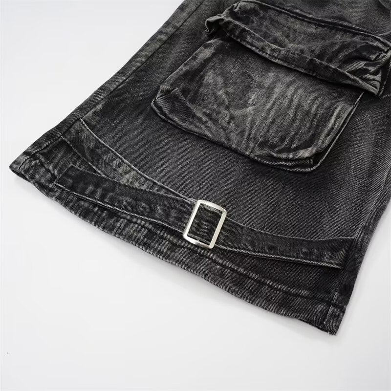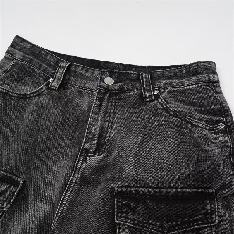 아메리칸 워싱 및 디스트레스드 멀티 포켓 워크 청바지 남성 트렌디 브랜드 펑크 디자인 맞춤형 기능성 와이드 팬츠스토어 가기