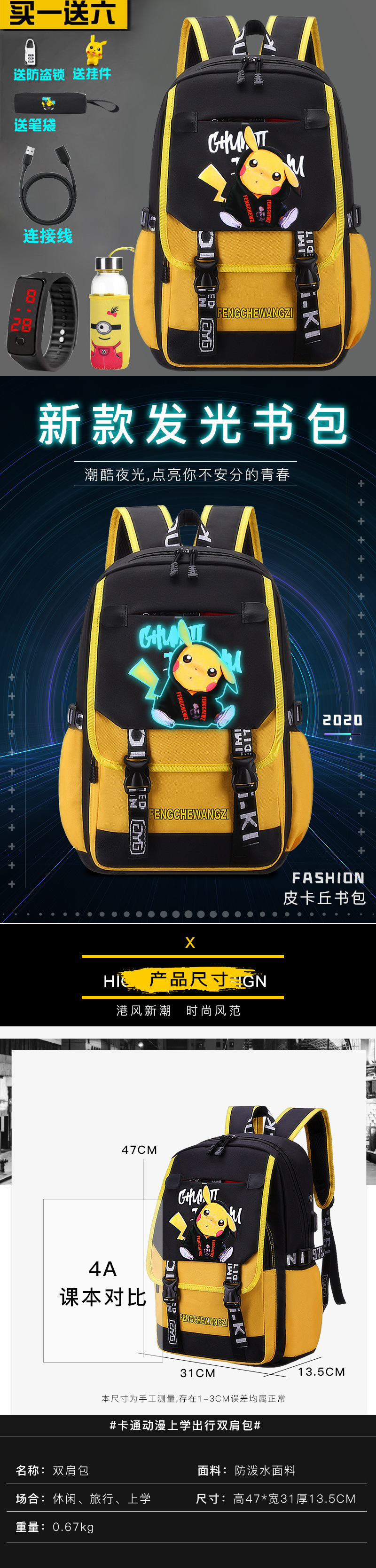 피카츄 오리지널 책가방 남아 초등학생 패션 트렌드 경량 배낭 애니메이션 중학생 배낭스토어 가기