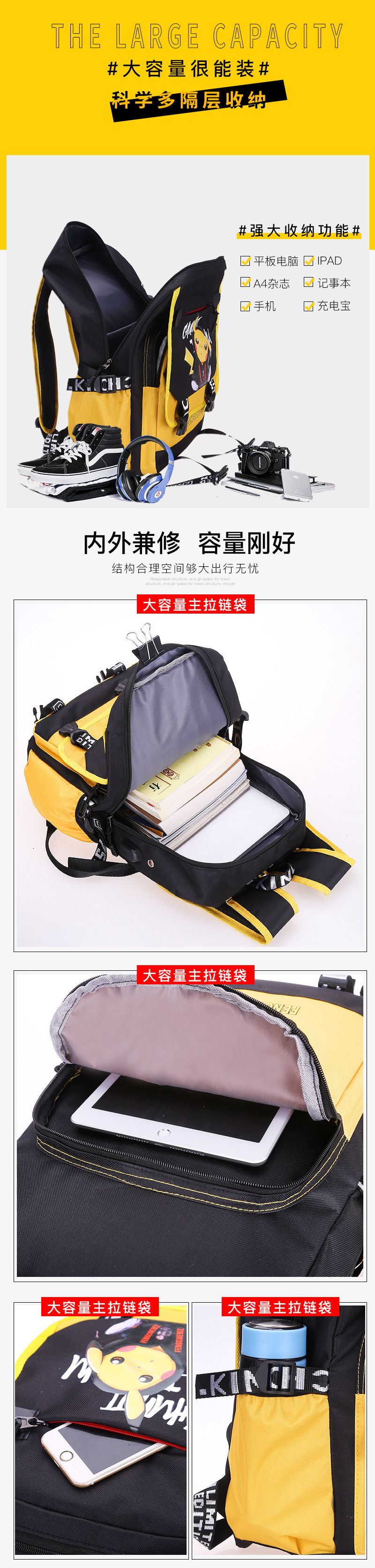 피카츄 오리지널 책가방 남아 초등학생 패션 트렌드 경량 배낭 애니메이션 중학생 배낭