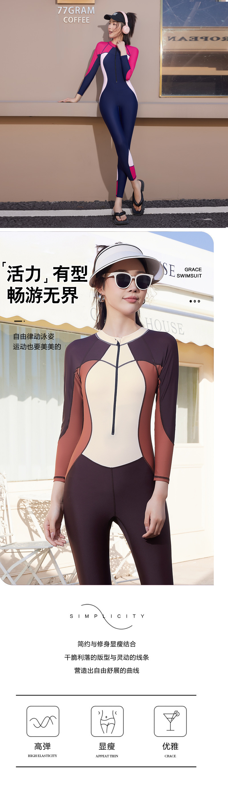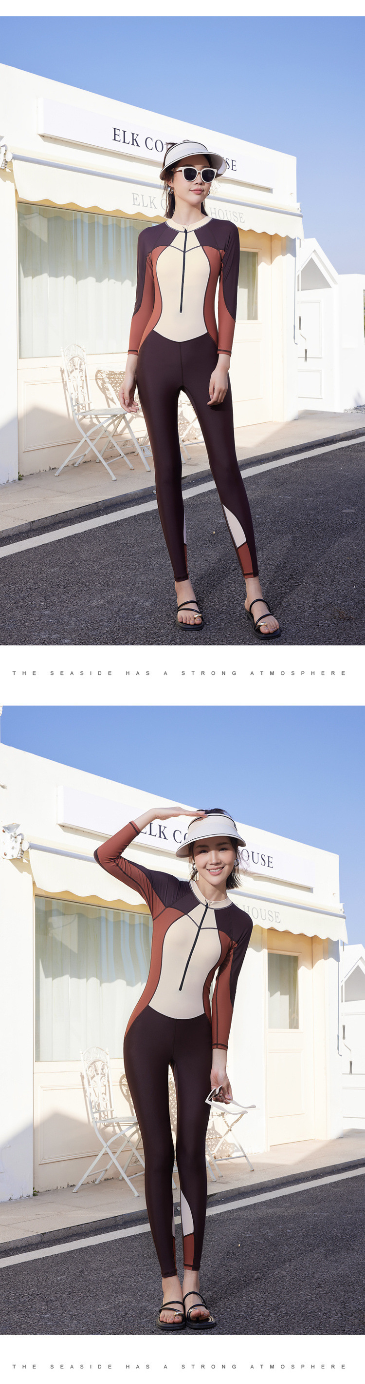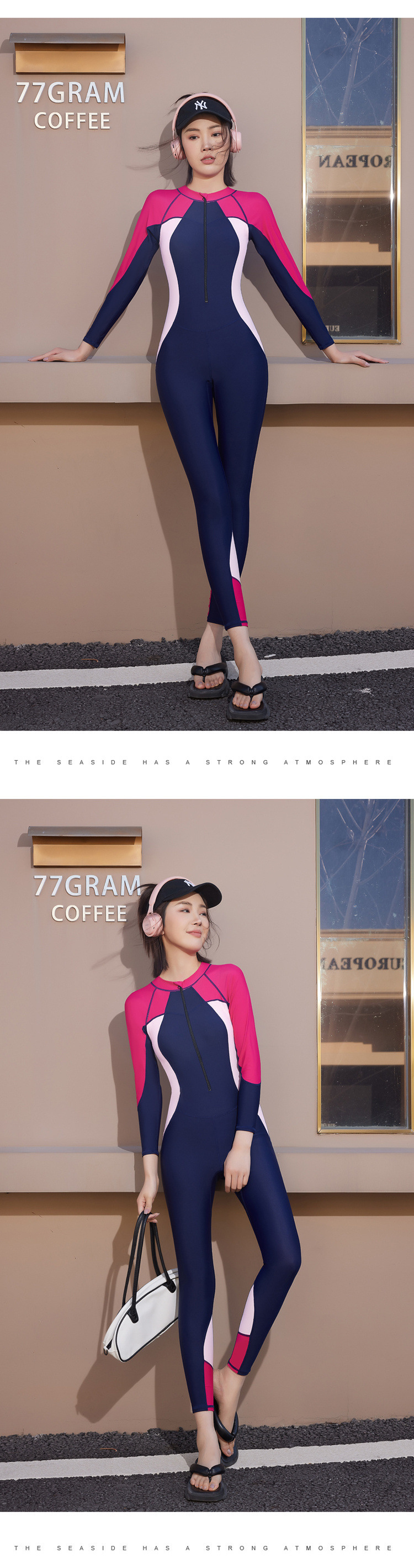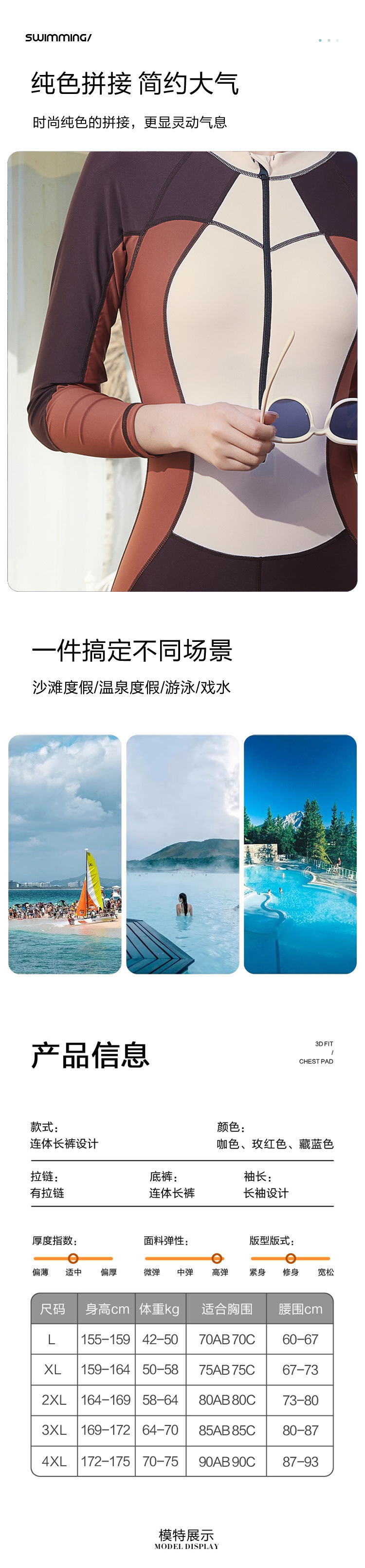 2024 새로운 원피스 대형 잠수복 긴팔 전신 수영복 자외선 차단 보수적 바지 서핑 스노클링 잠수복스토어 가기