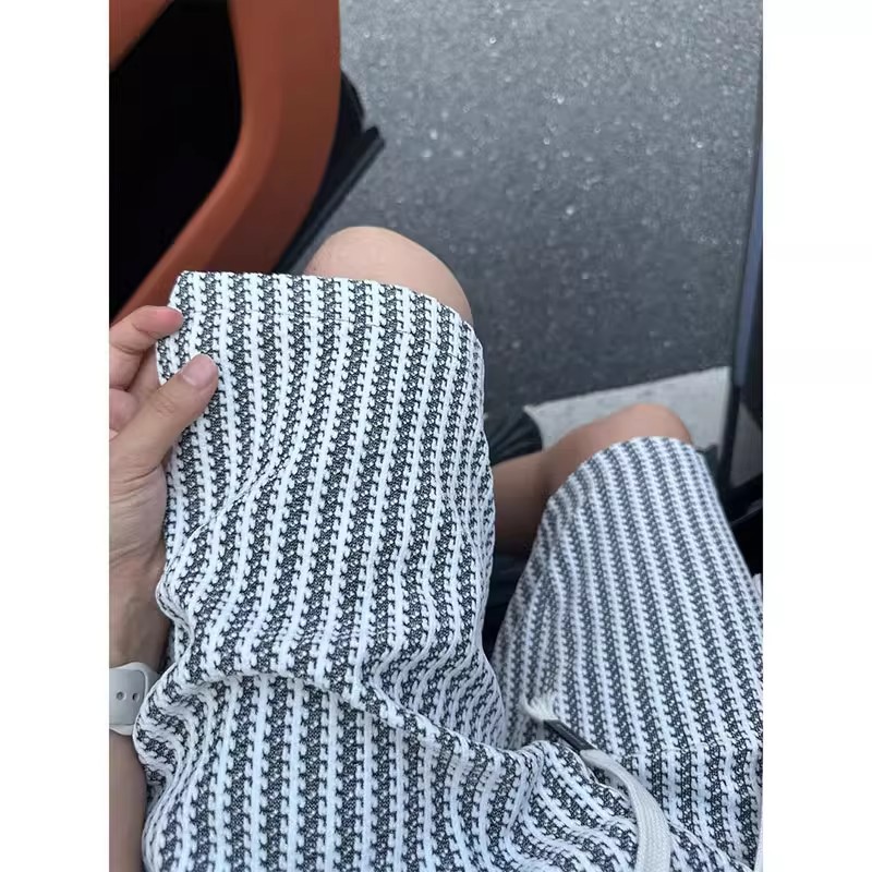 Xiaoxiangfeng 니트 반바지 남성 여름 흑백 줄무늬 스포츠 바지 트렌디 브랜드 하이 엔드 루즈 캐주얼 5 점 바지스토어 가기