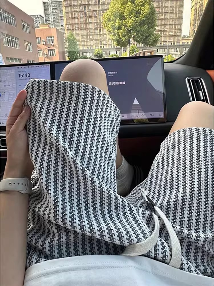 Xiaoxiangfeng 니트 반바지 남성 여름 흑백 줄무늬 스포츠 바지 트렌디 브랜드 하이 엔드 루즈 캐주얼 5 점 바지