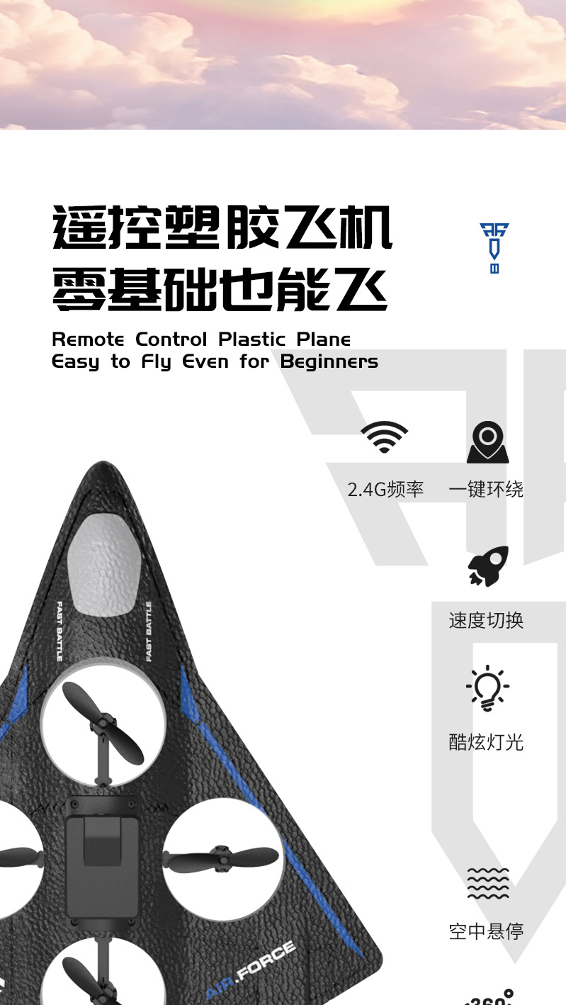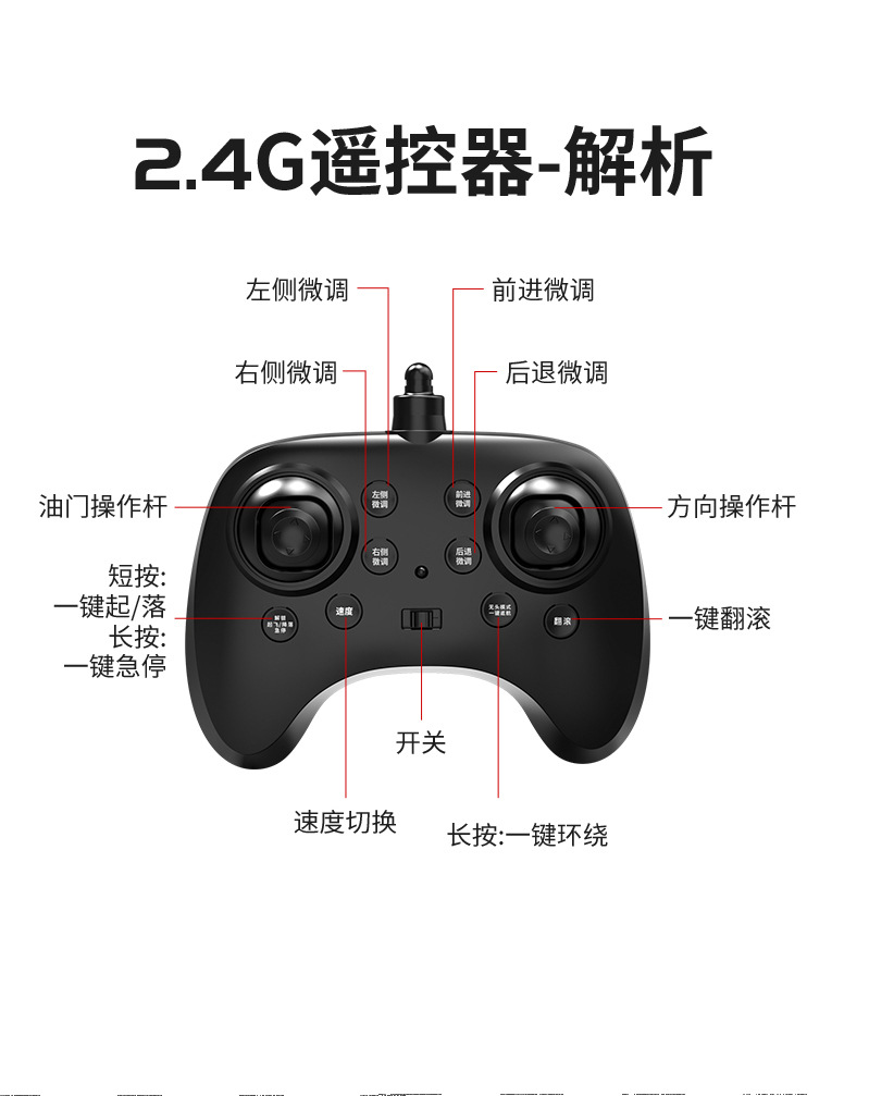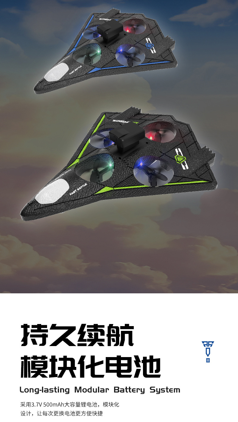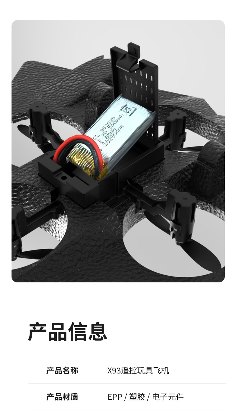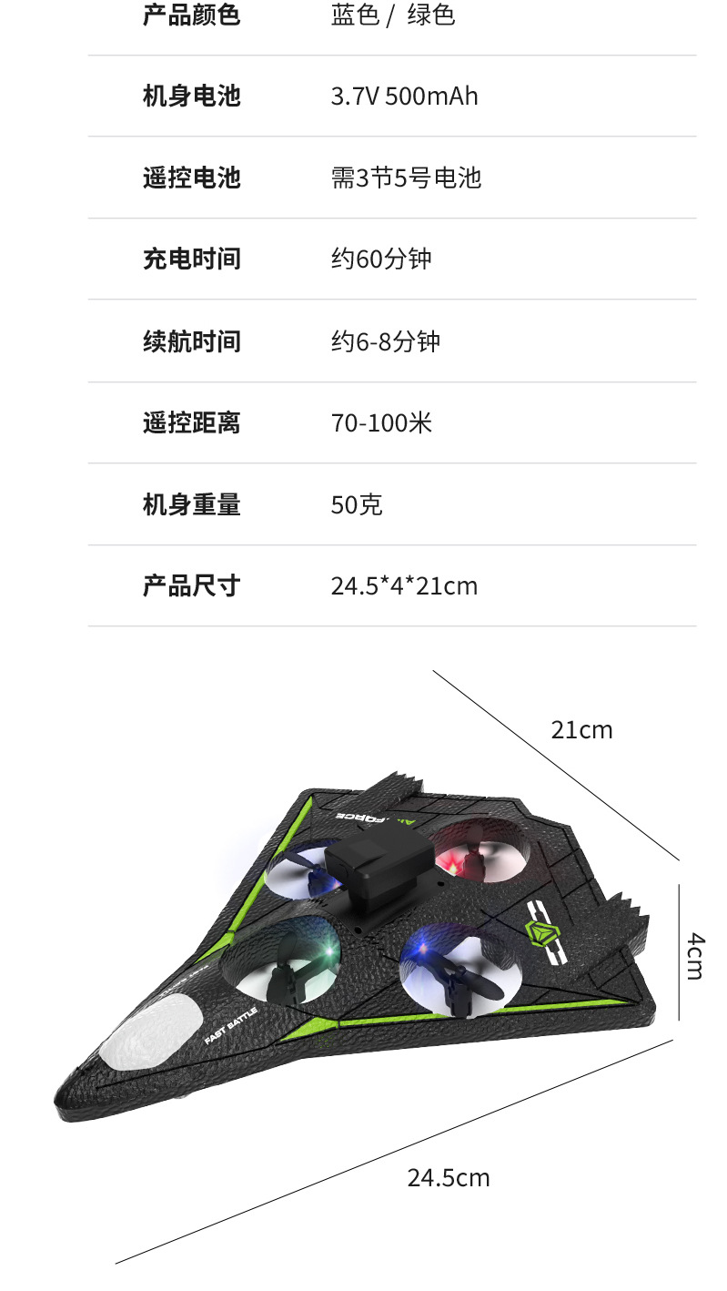 电池参数:机身:3.7V 500mAh. 遥控器电池:3粒AAA(不包)