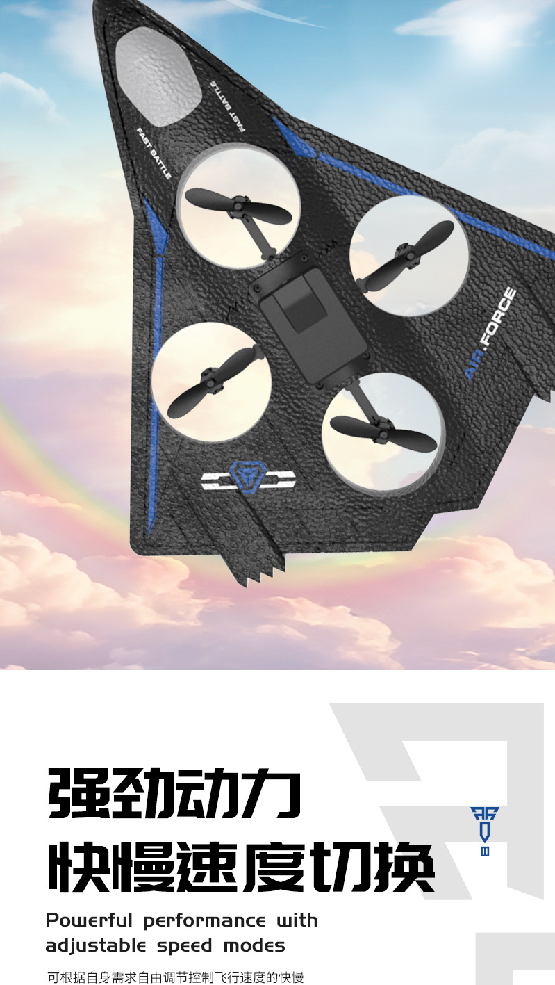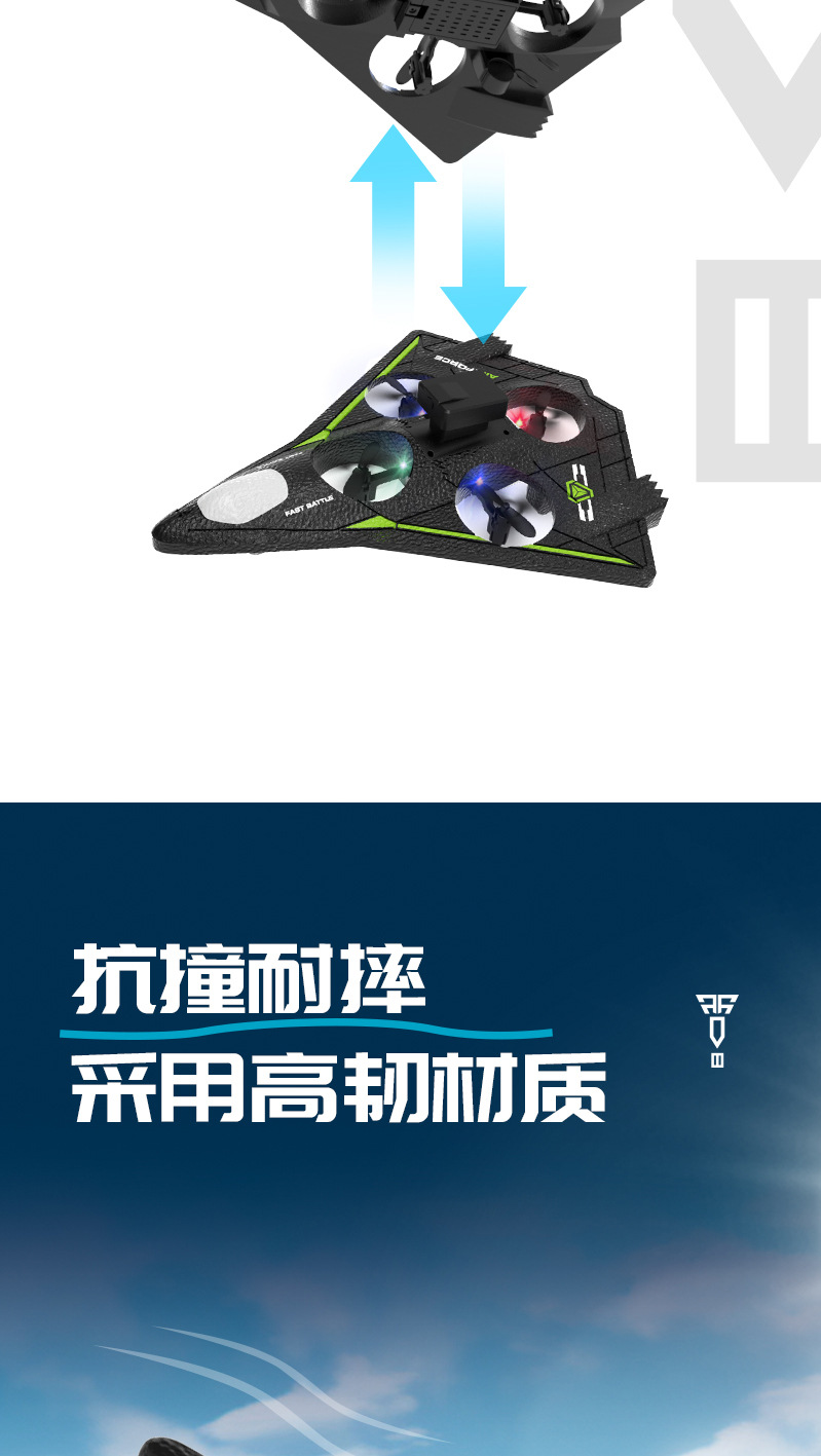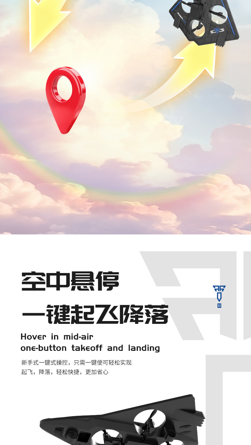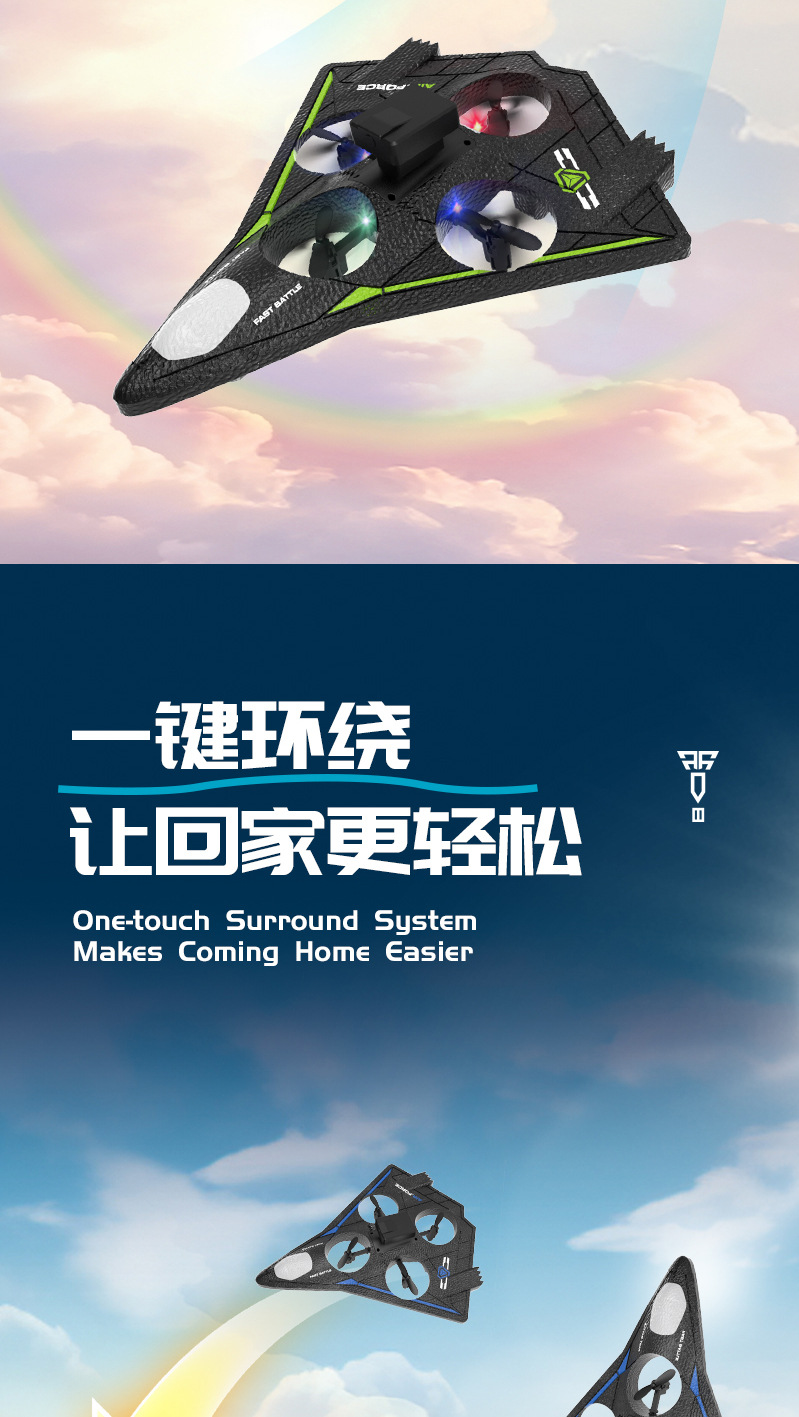 产品功能:产品为泡沫机身四轴无人机,配置遥控器.可以前进、后退、上升、下降、左右转、左右侧飞,无头模式,一键返航,快慢速3档切换功能,360°特技翻滚,泡沫保护更安全。避障款同时拥有感应避障功能,四个方向带避障感应,防止飞行过程中撞到障碍物。 航拍款 配置高清航拍摄像头,遥控器配置手机支架,可以操作无人机实时进行拍照录像,并且通过APP下载到手机里面。