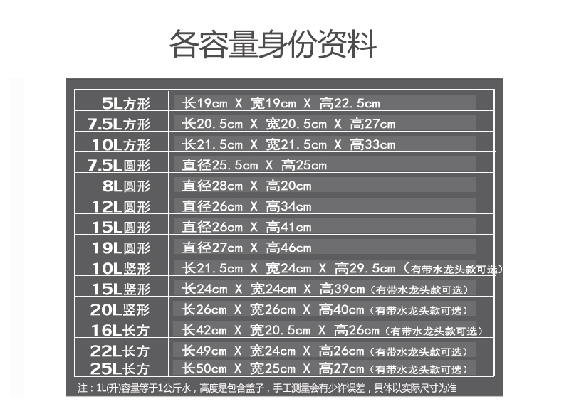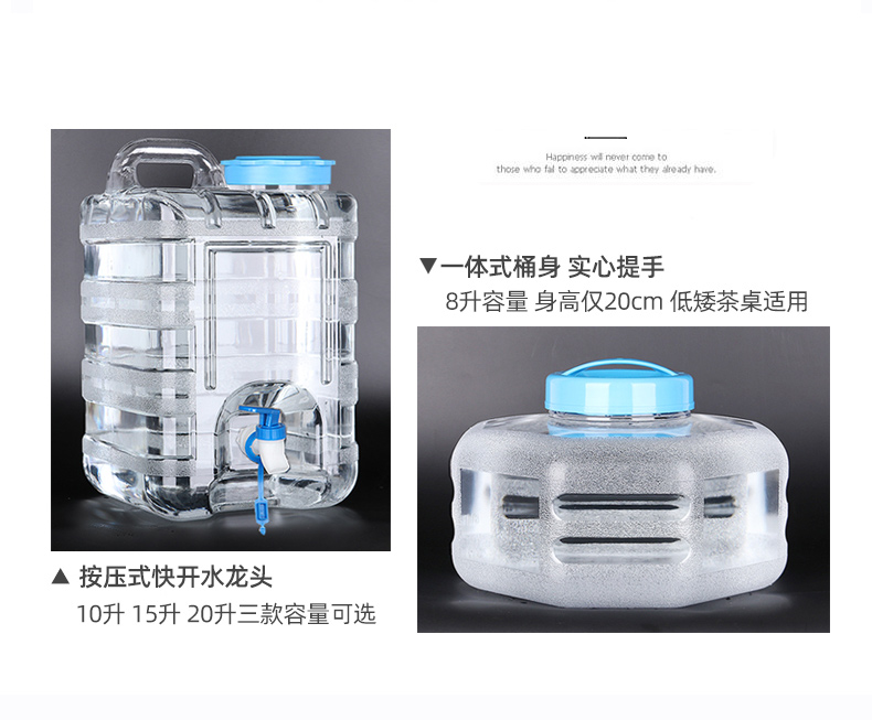 도매 식품 등급 투명 사각형 순수 물통 PC 가정용 물 저장 휴대용 미네랄 워터 버킷 쿵푸 차 세트 물