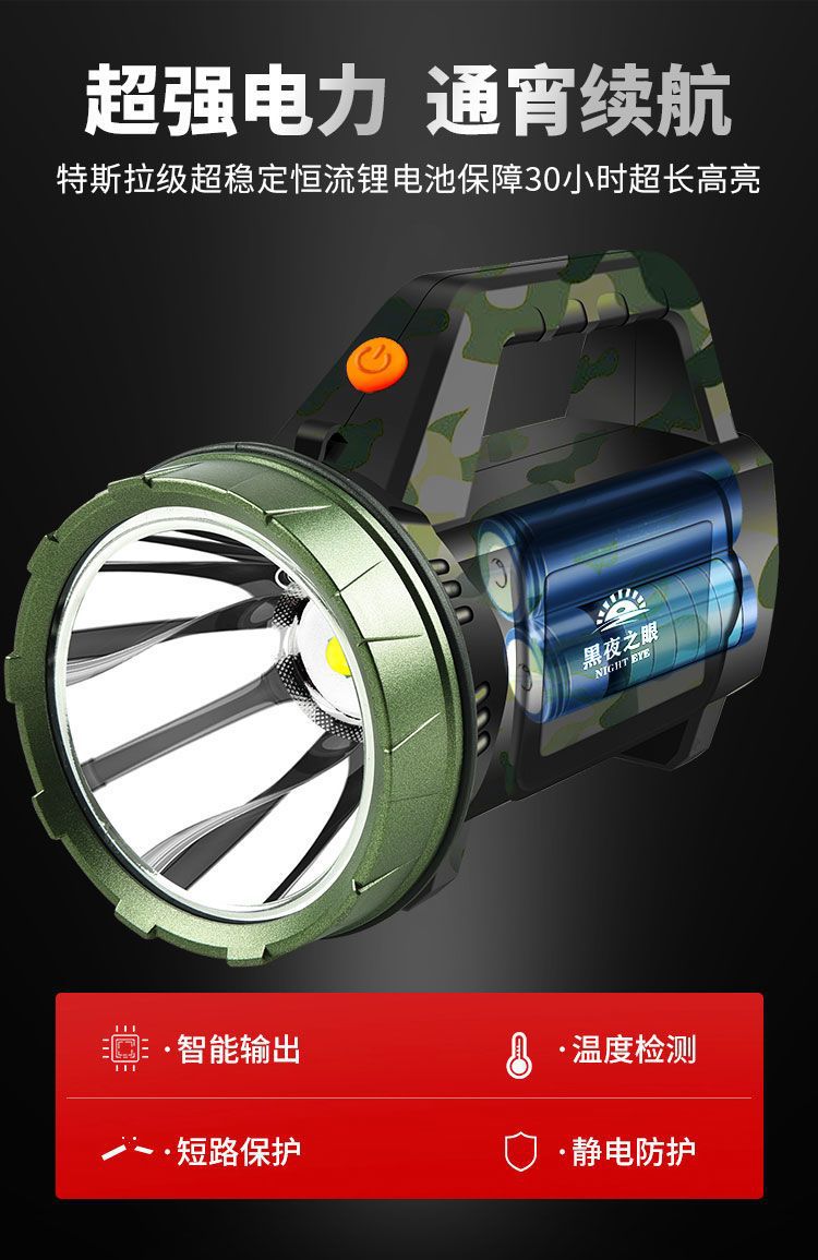 손전등 강한 빛 충전식 야외 매우 밝은 장거리 특수 부대 휴대용 탐조등 대용량 긴 배터리 수명