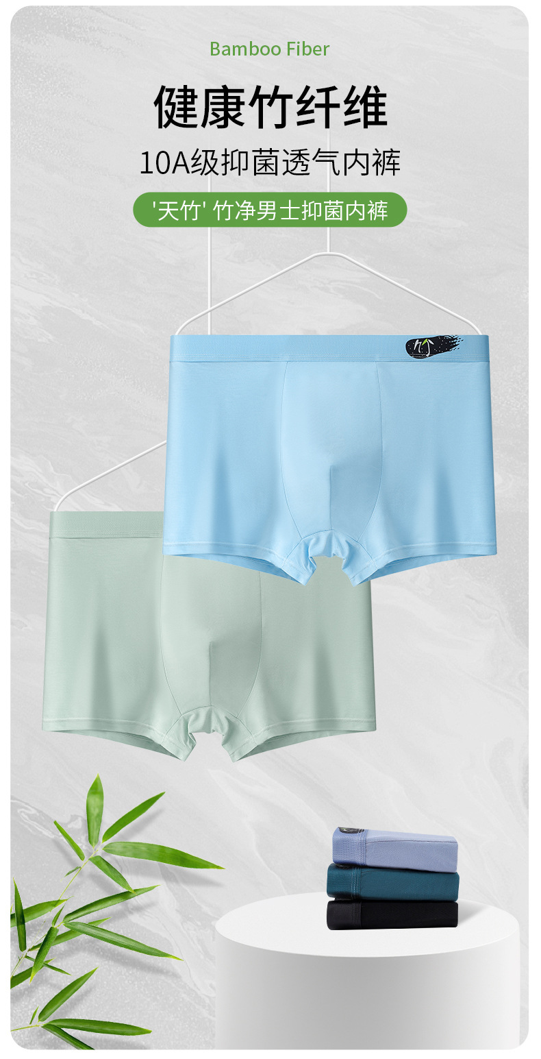 대나무 섬유 남성 속옷 10A 항균 유지 내부 가랑이 통기성 흡습성 고탄성 이음매없는 중간 허리 남성 복서 팬티