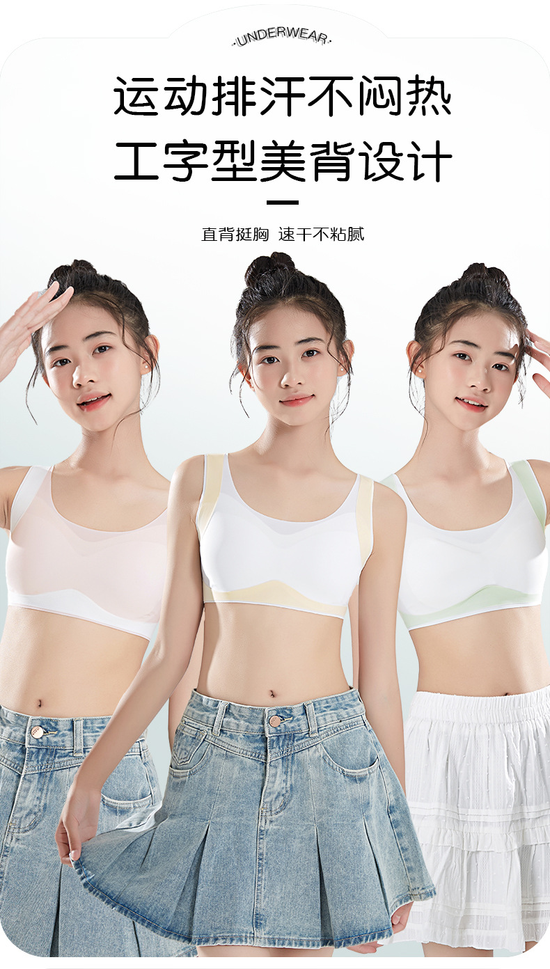 여아 스포츠 브라, 발달기 심리스 조끼, 여아 중학생, 여아 브라
