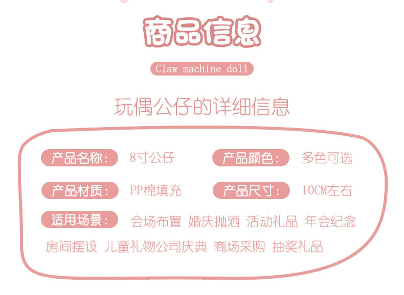 국경 간 도매 8inch 인형 뽑기 기계, 놀이 공원, 봉제 인형, 대외 무역, 결혼식 던지기 장난감