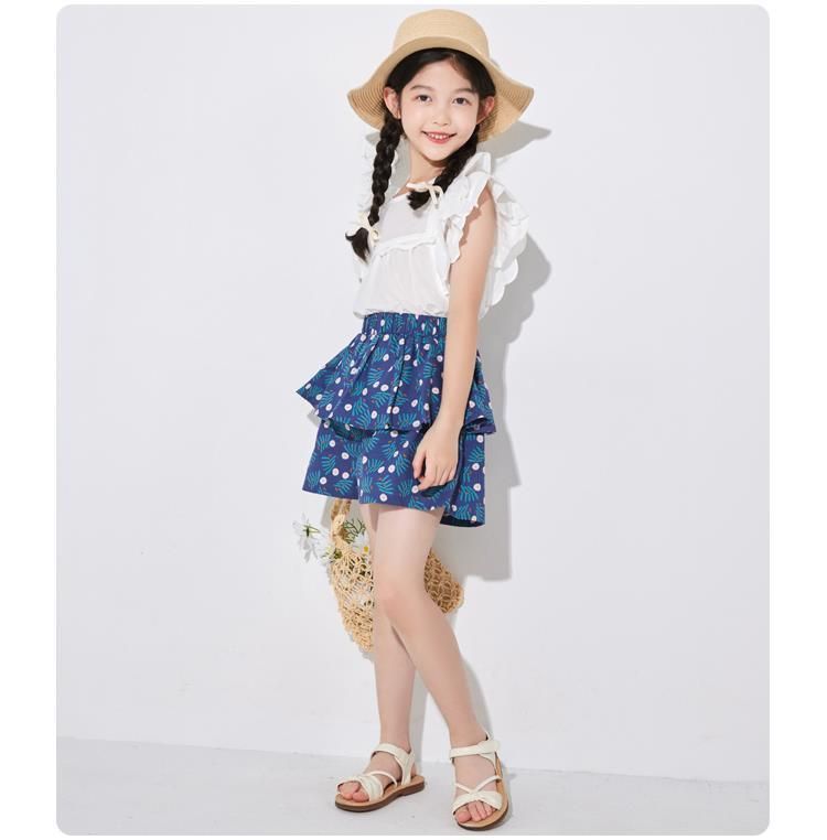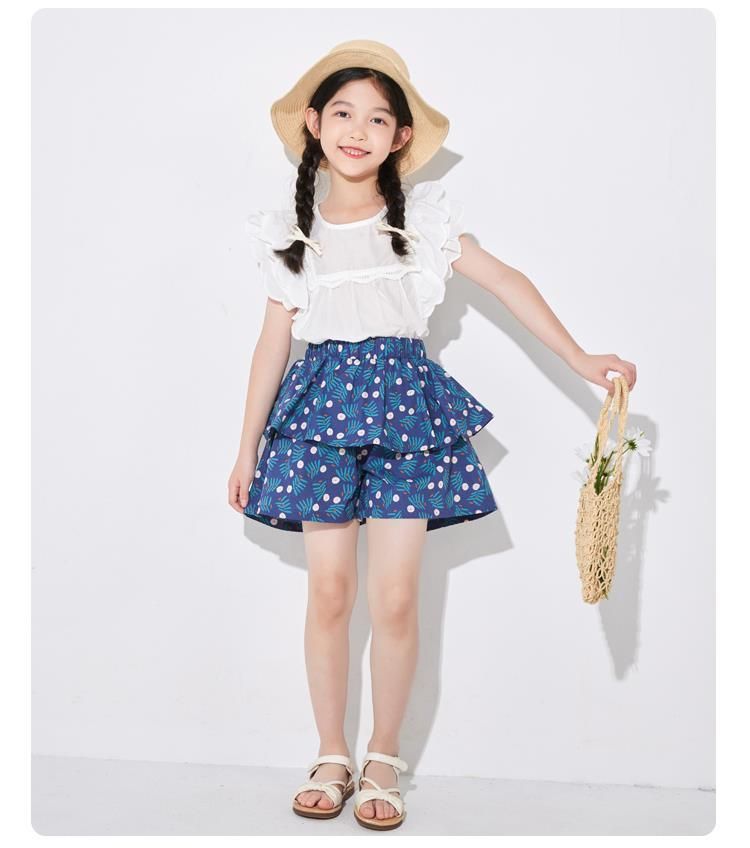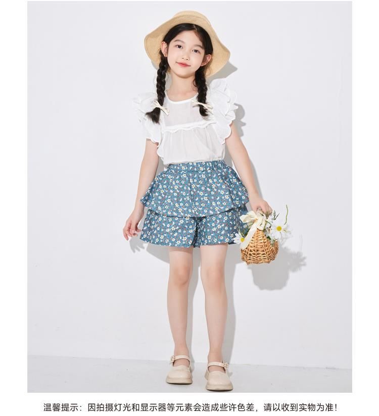 여아용 얇은 하프 길이 스커트, 공주 어린이 꽃무늬 반바지, 여아용 중대형 어린이용 새로운 여름 새로운 중국 스타일 스커트