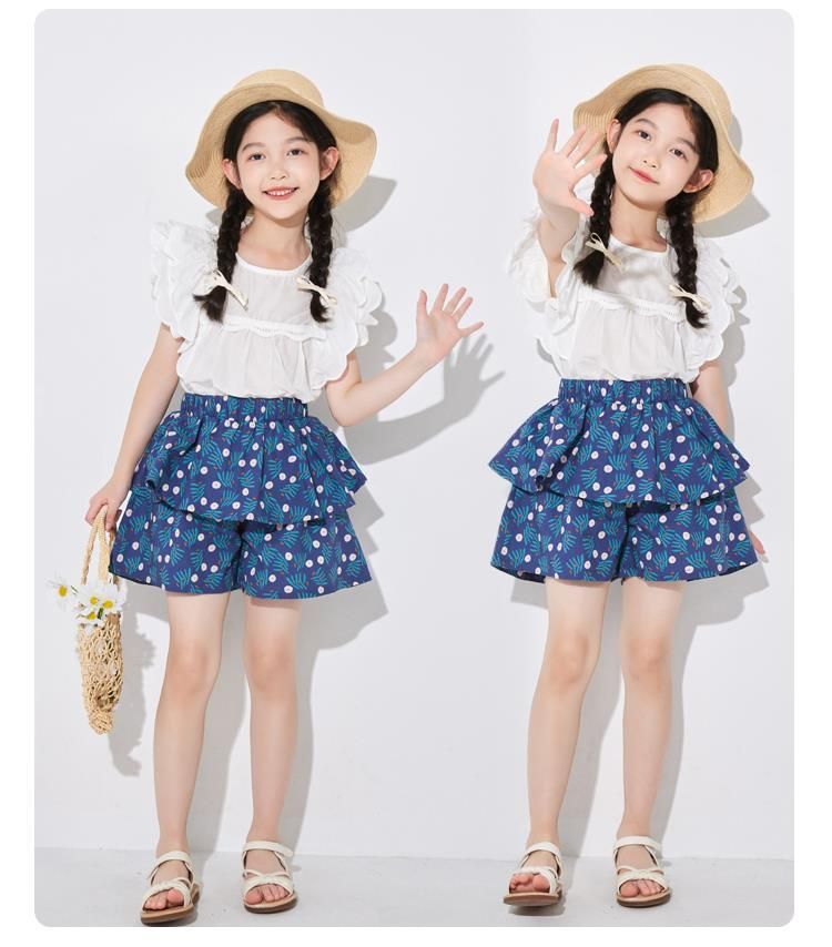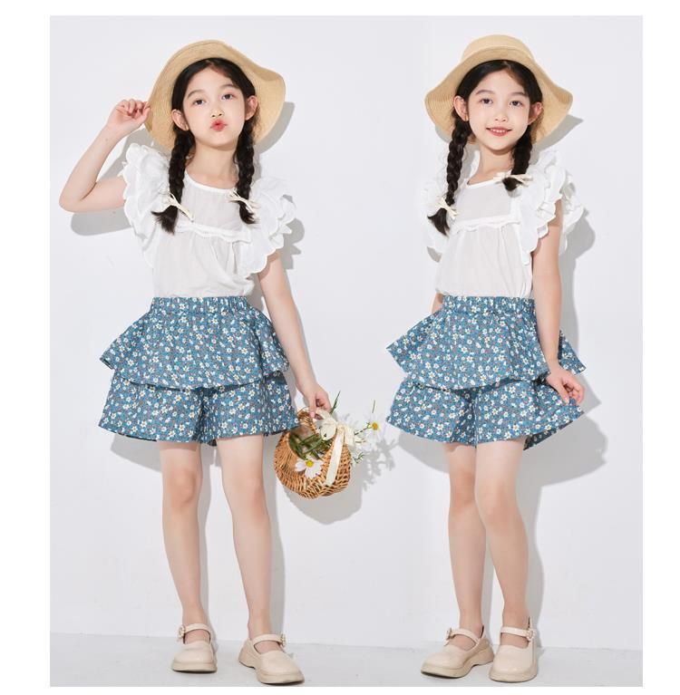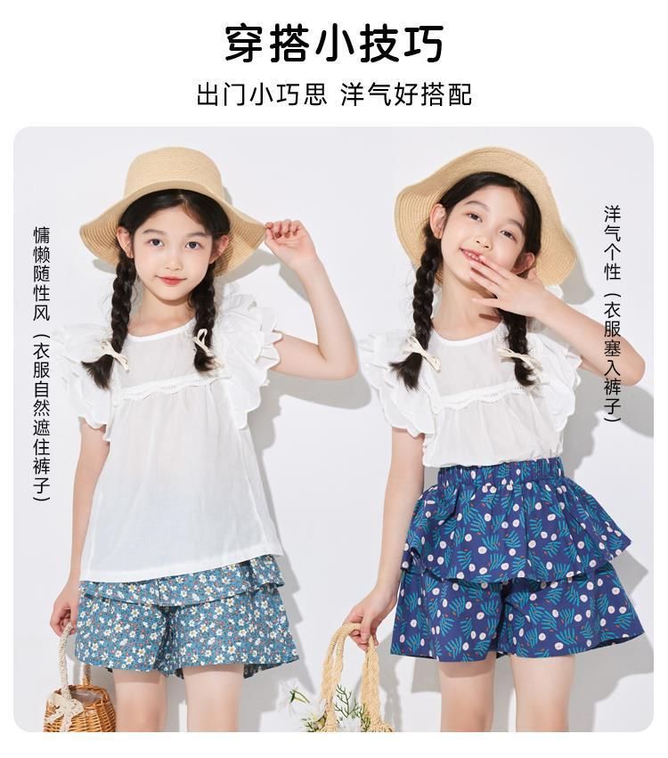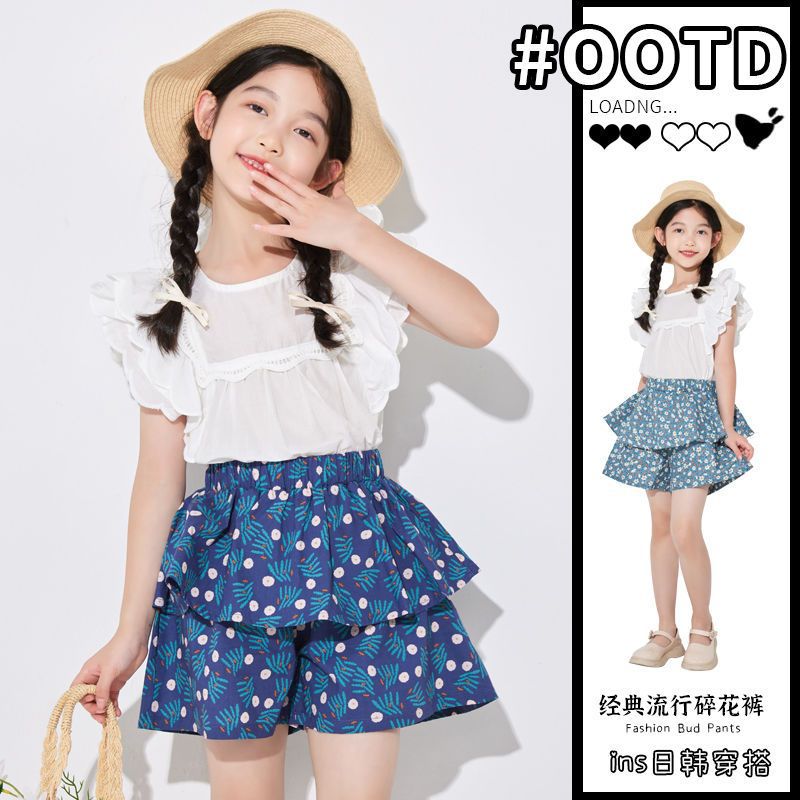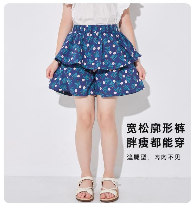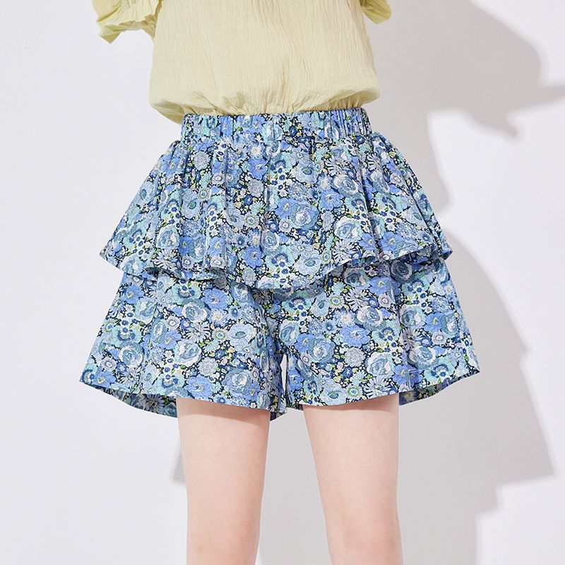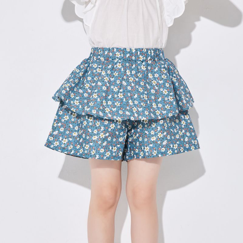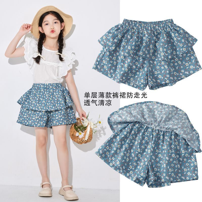 여아용 얇은 하프 길이 스커트, 공주 어린이 꽃무늬 반바지, 여아용 중대형 어린이용 새로운 여름 새로운 중국 스타일 스커트스토어 가기