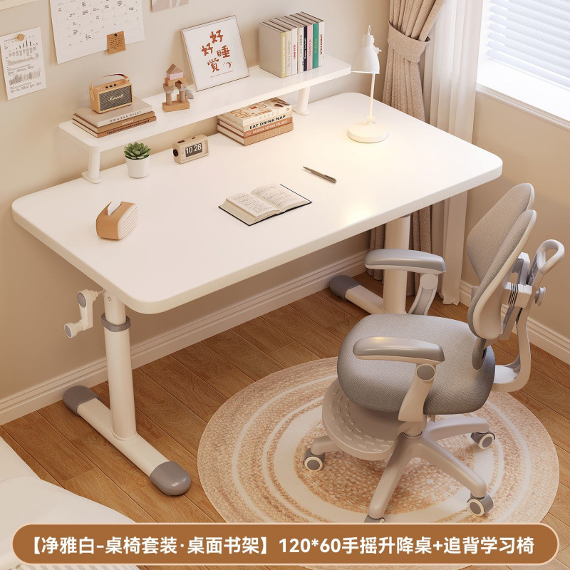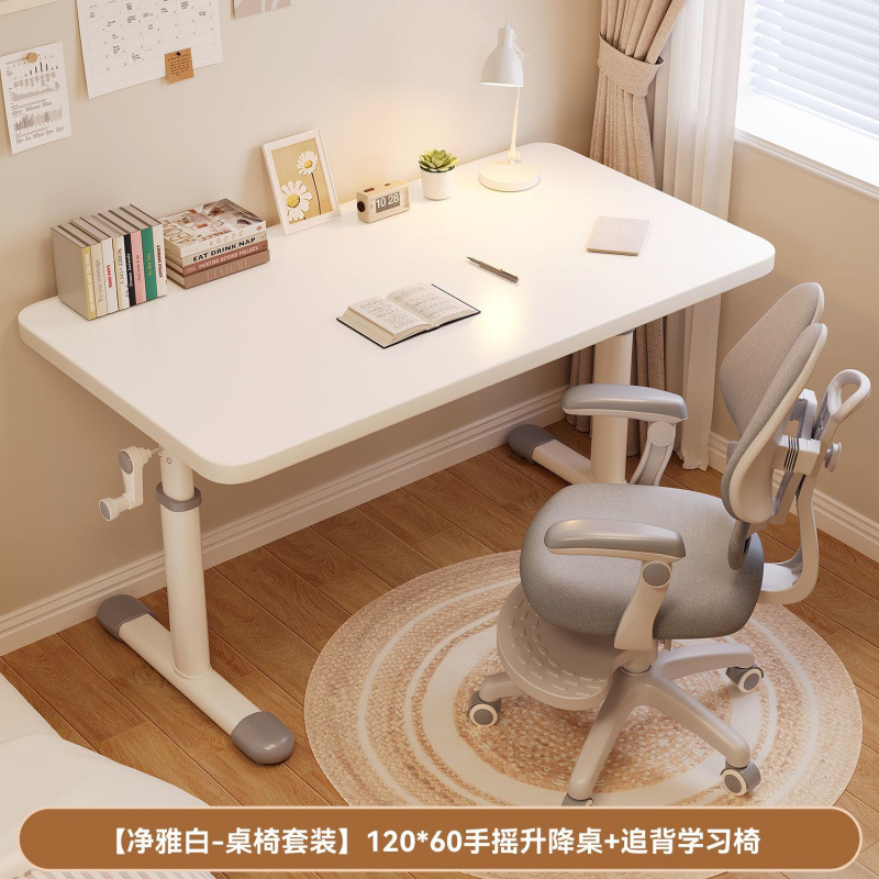 핸드 리프팅 두꺼운 흰색 테이블 학생 특별 책상과 의자 세트 연구 사무실 학습 컴퓨터 나무 테이블스토어 가기