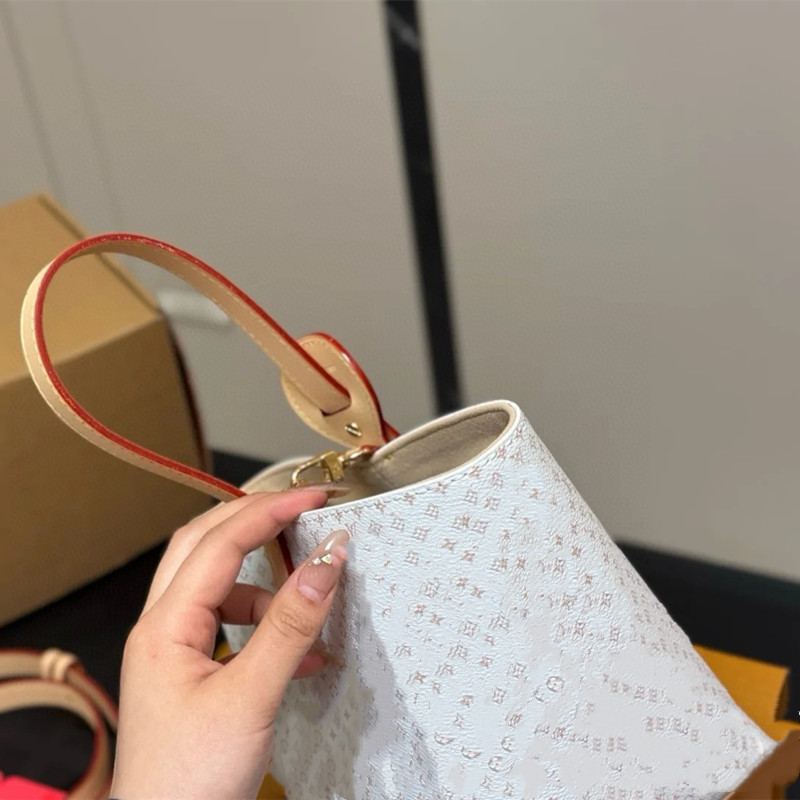 새로운 스타일의 정품 가죽 BB 모래 언덕 컬러 버킷 하이 엔드 트렌디 휴대용 화이트 3 색 여성용 가방 캐주얼 다용도 싱글 숄더 크로스 바디 백스토어 가기