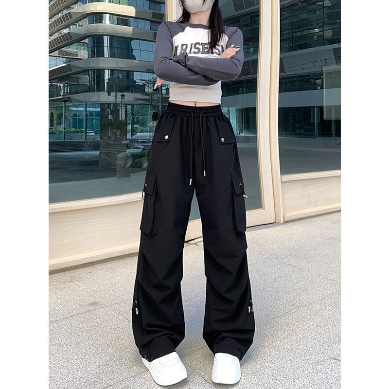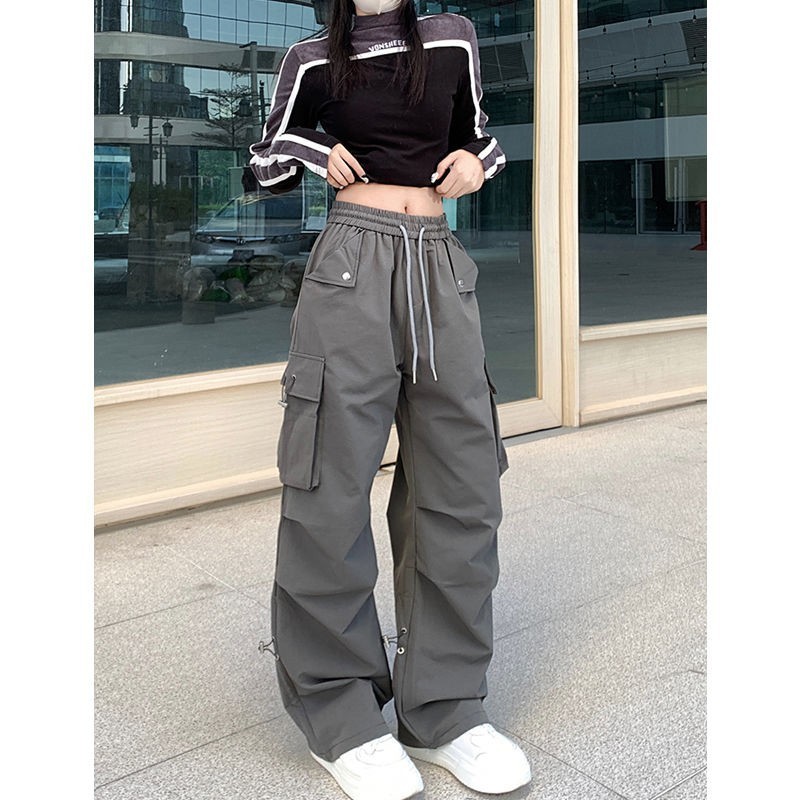 여름 여성용 아메리칸 와이드 레그 파라트리퍼 작업복, 얇은 하이웨이스트, 루즈하고 활용도가 높은 트렌디한 어썰트 팬츠, 캐주얼 롱 팬츠스토어 가기