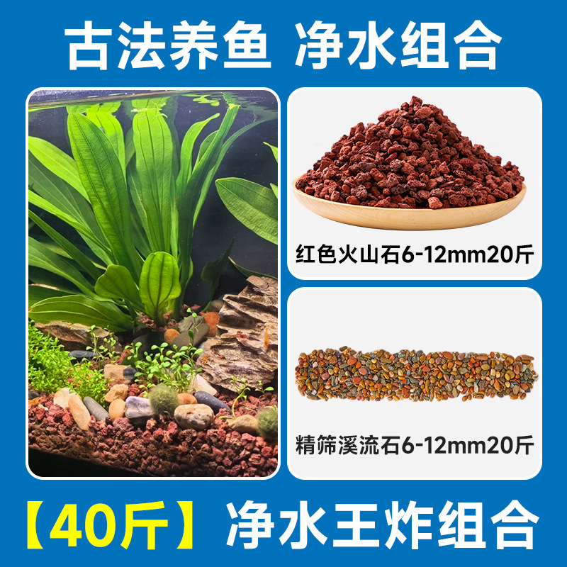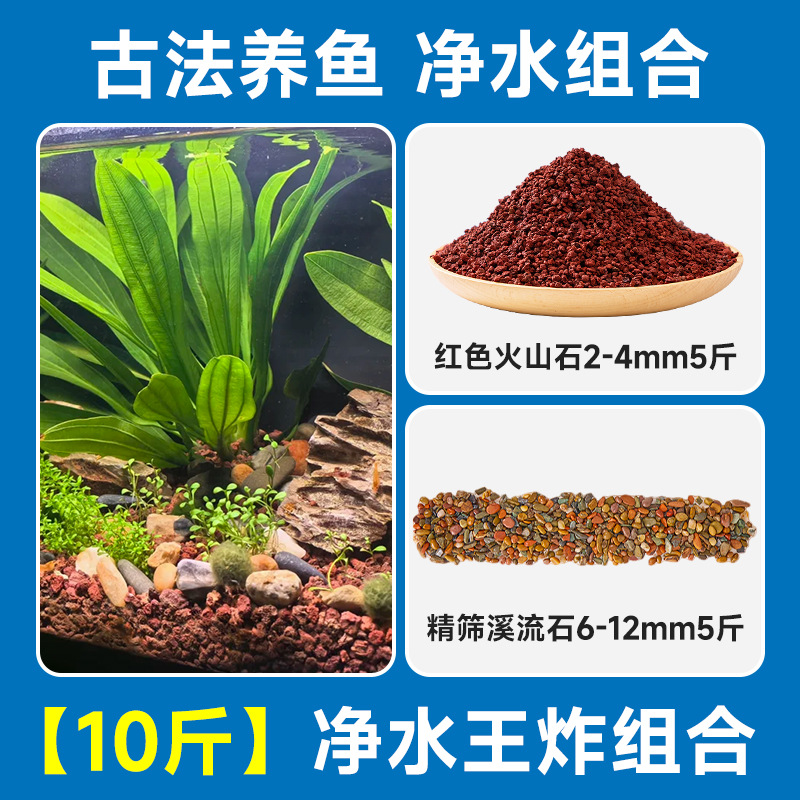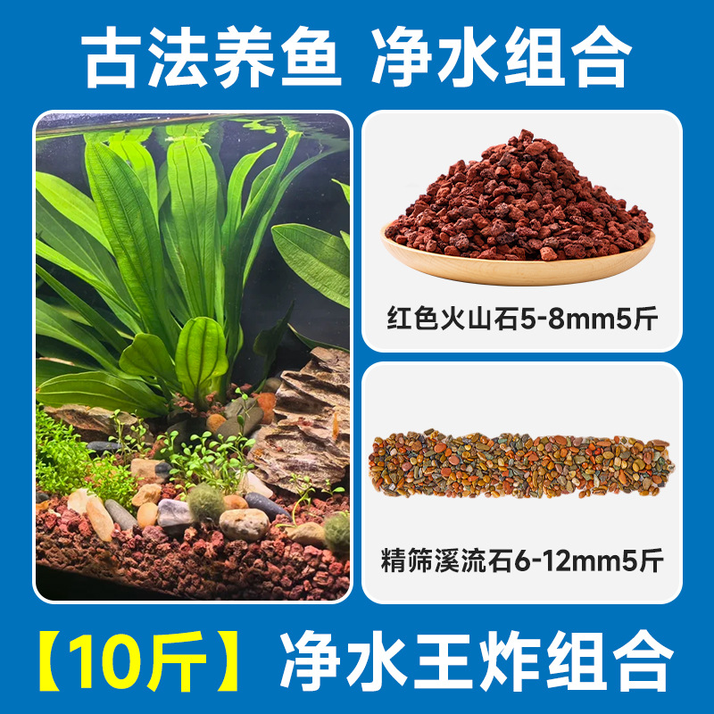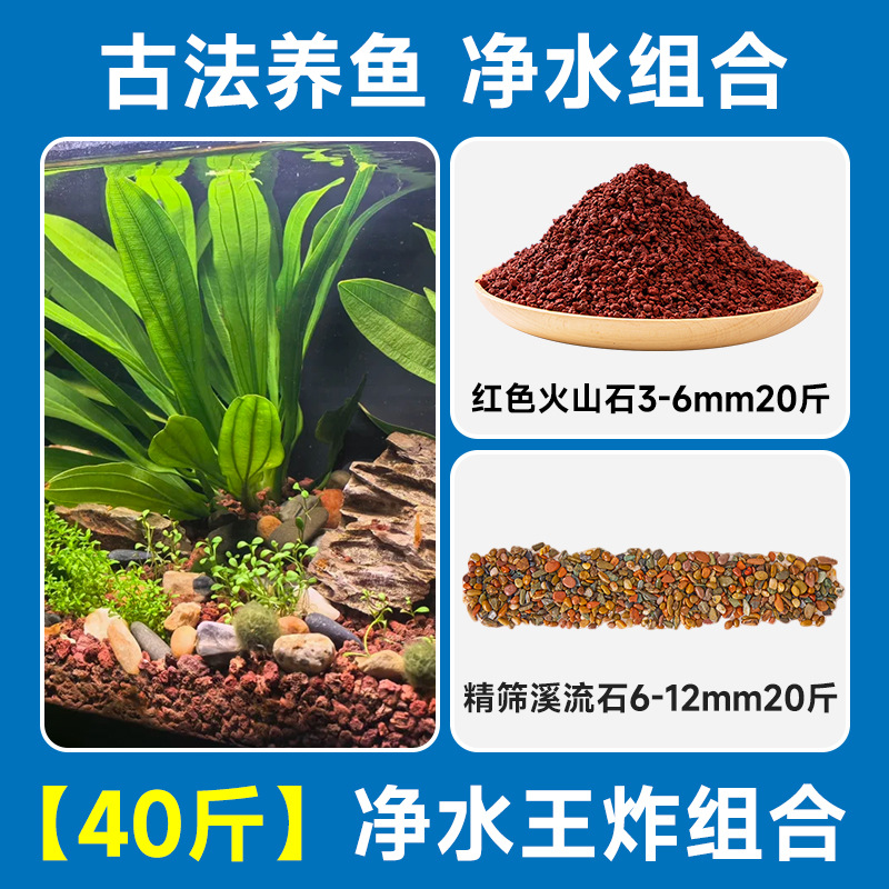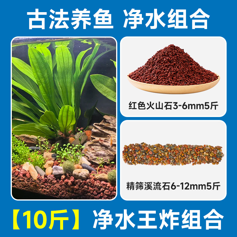 • [기장 탱크 패키지] 5-8mm 붉은 화산석 2.5kg개 + 6-12mm 고운 체로 치은 하천석 2.5kg개 [길이 40*가로 30cm 사각 탱크]