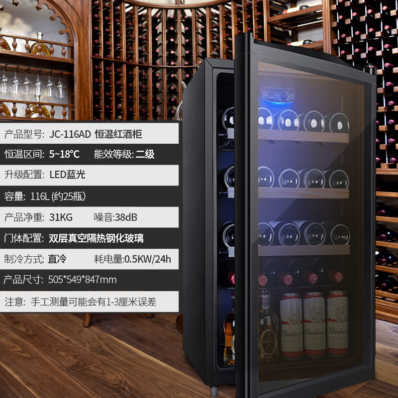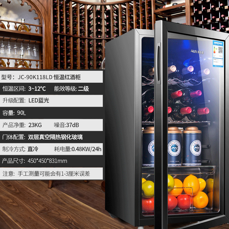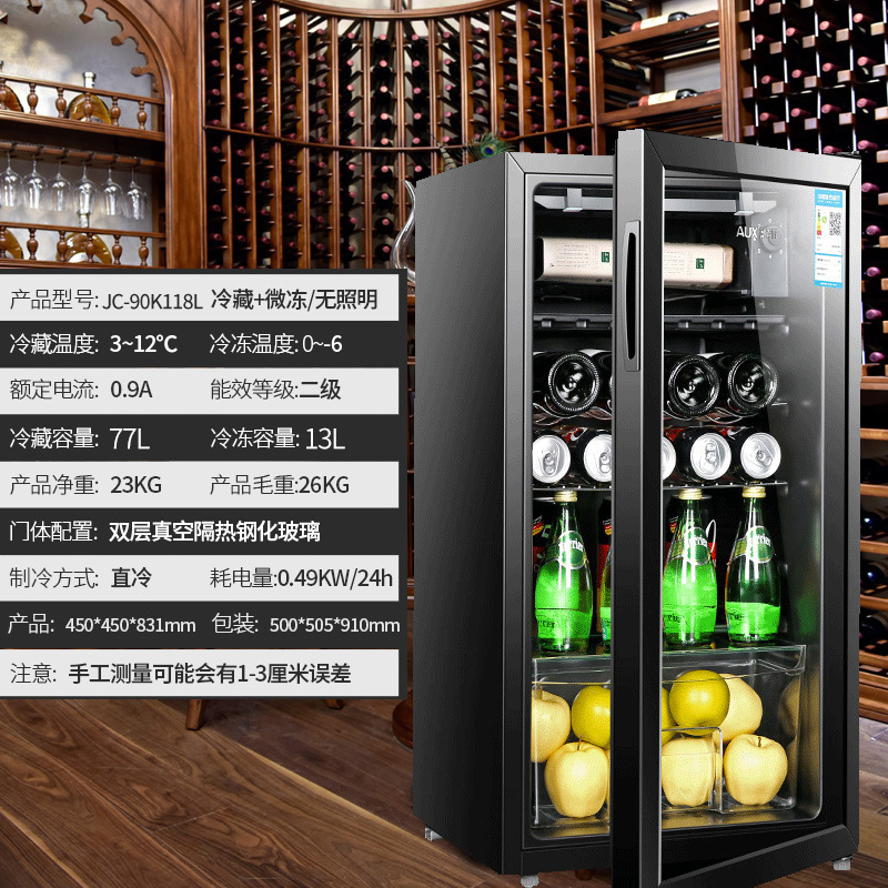 오크스 아이스 바 소형 단일 도어 소형 냉장고 홈 오피스 투명 음료 레드 와인 차 냉장 보존 캐비닛