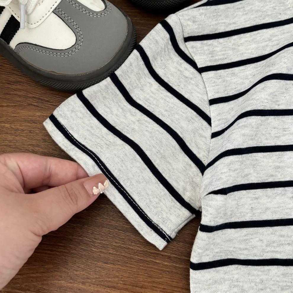 소년과 소녀 여름 반팔 양복 줄무늬 2025 새로운 어린이 여름 얇은 아기 스타일 투피스 세트
