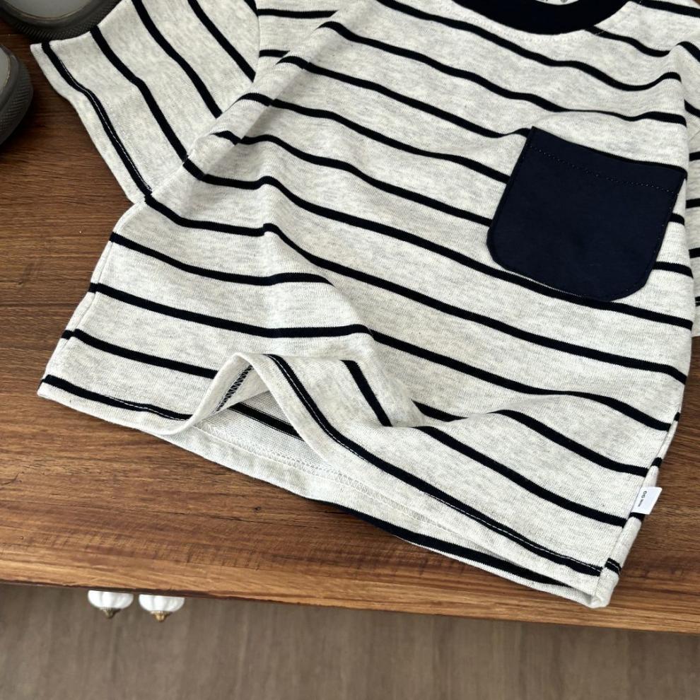 소년과 소녀 여름 반팔 양복 줄무늬 2025 새로운 어린이 여름 얇은 아기 스타일 투피스 세트스토어 가기