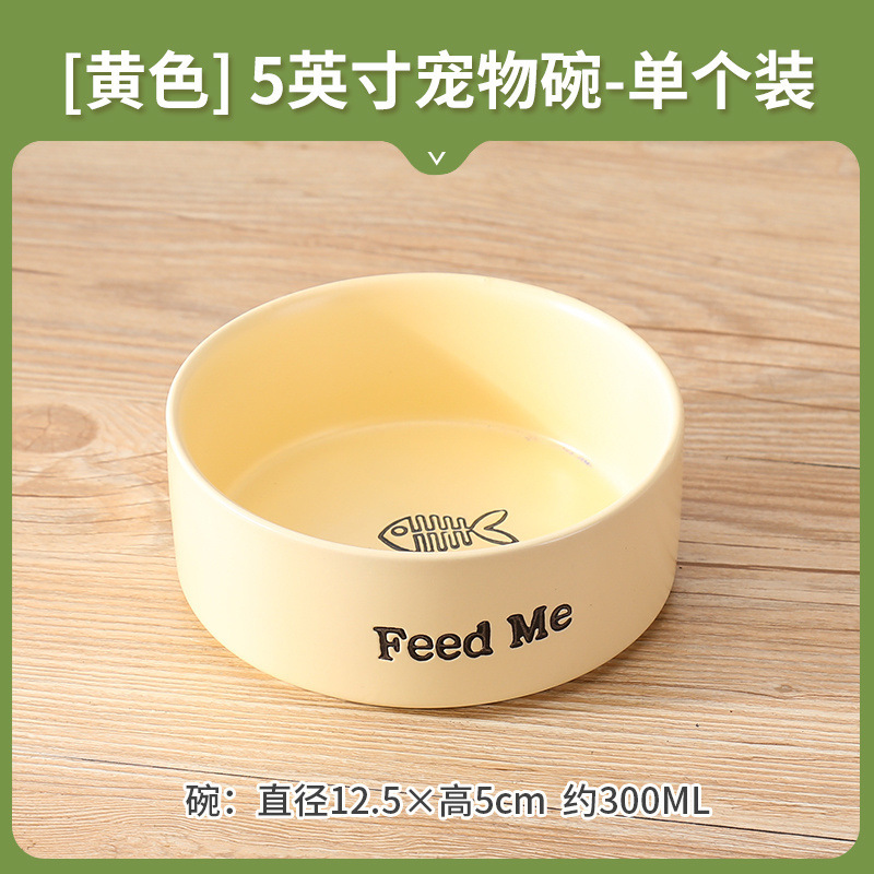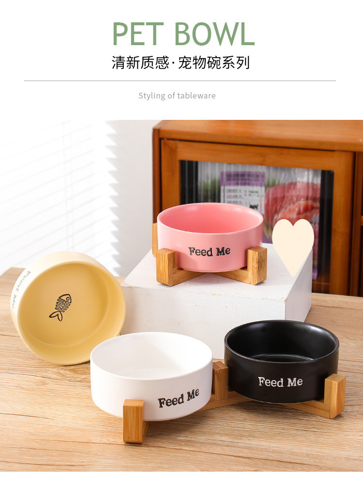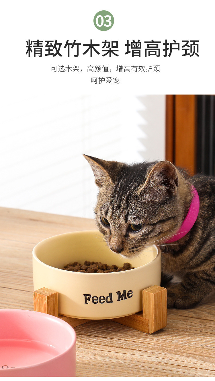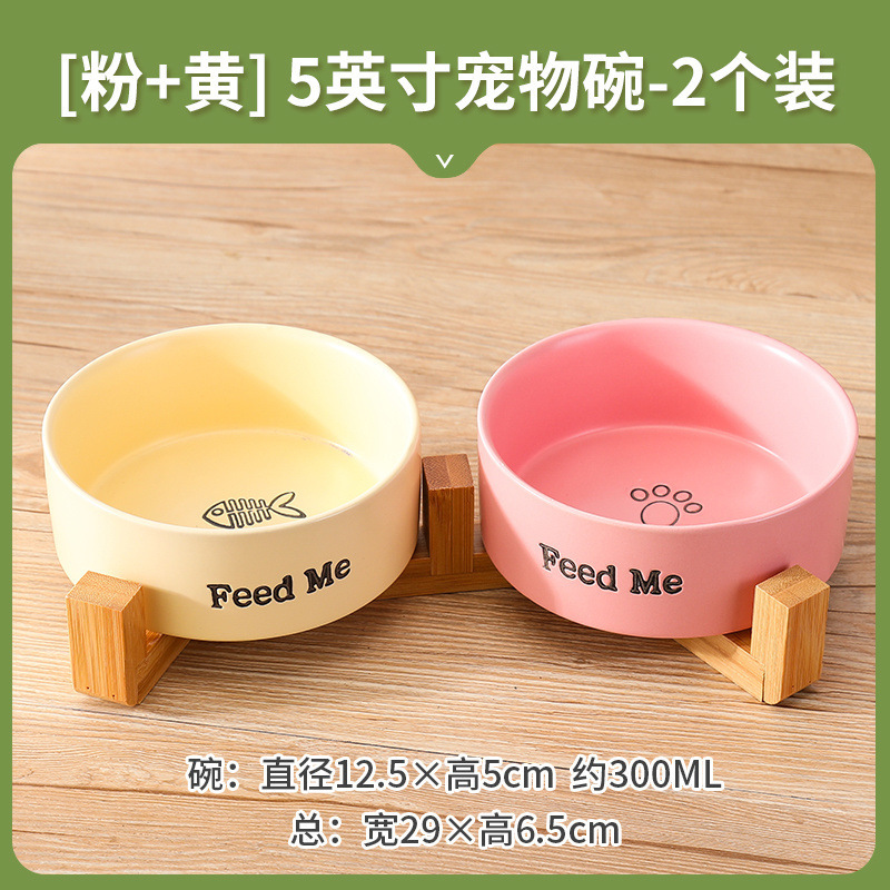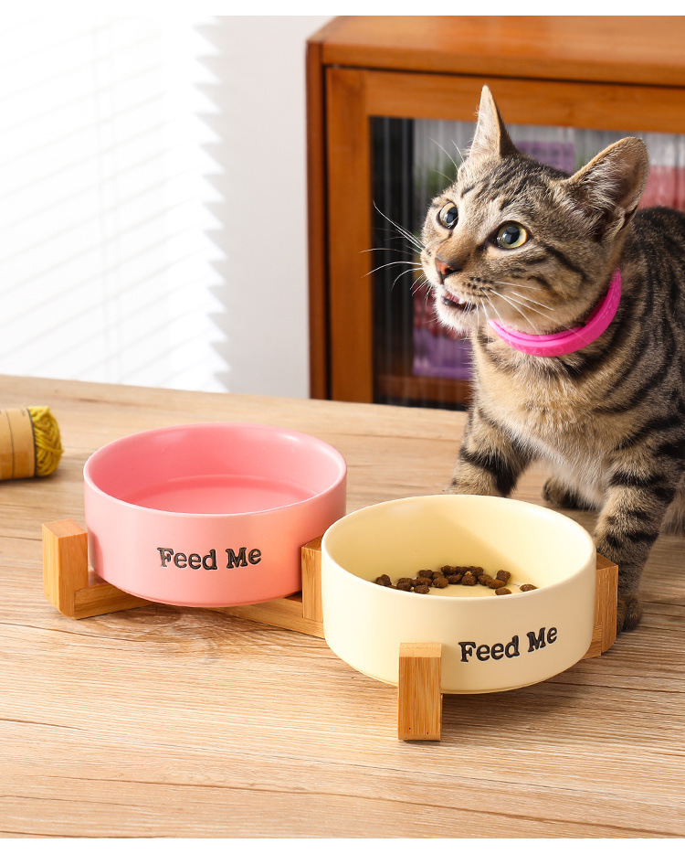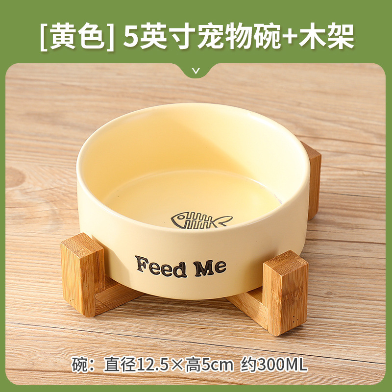 • 노란 고양이 그릇(나무 스탠드 포함)
