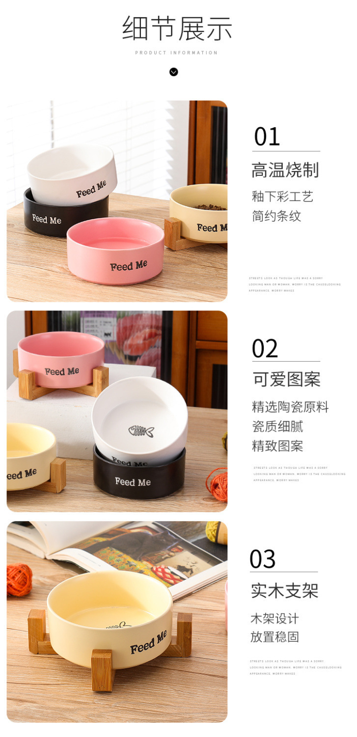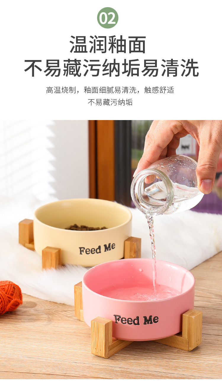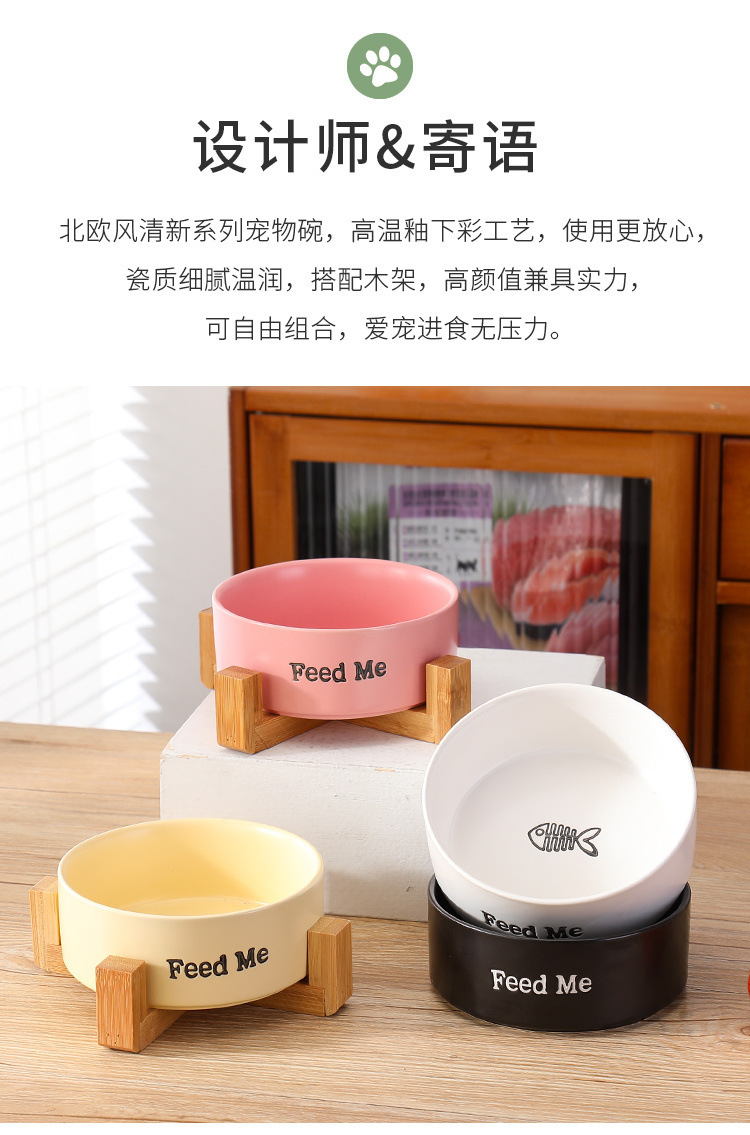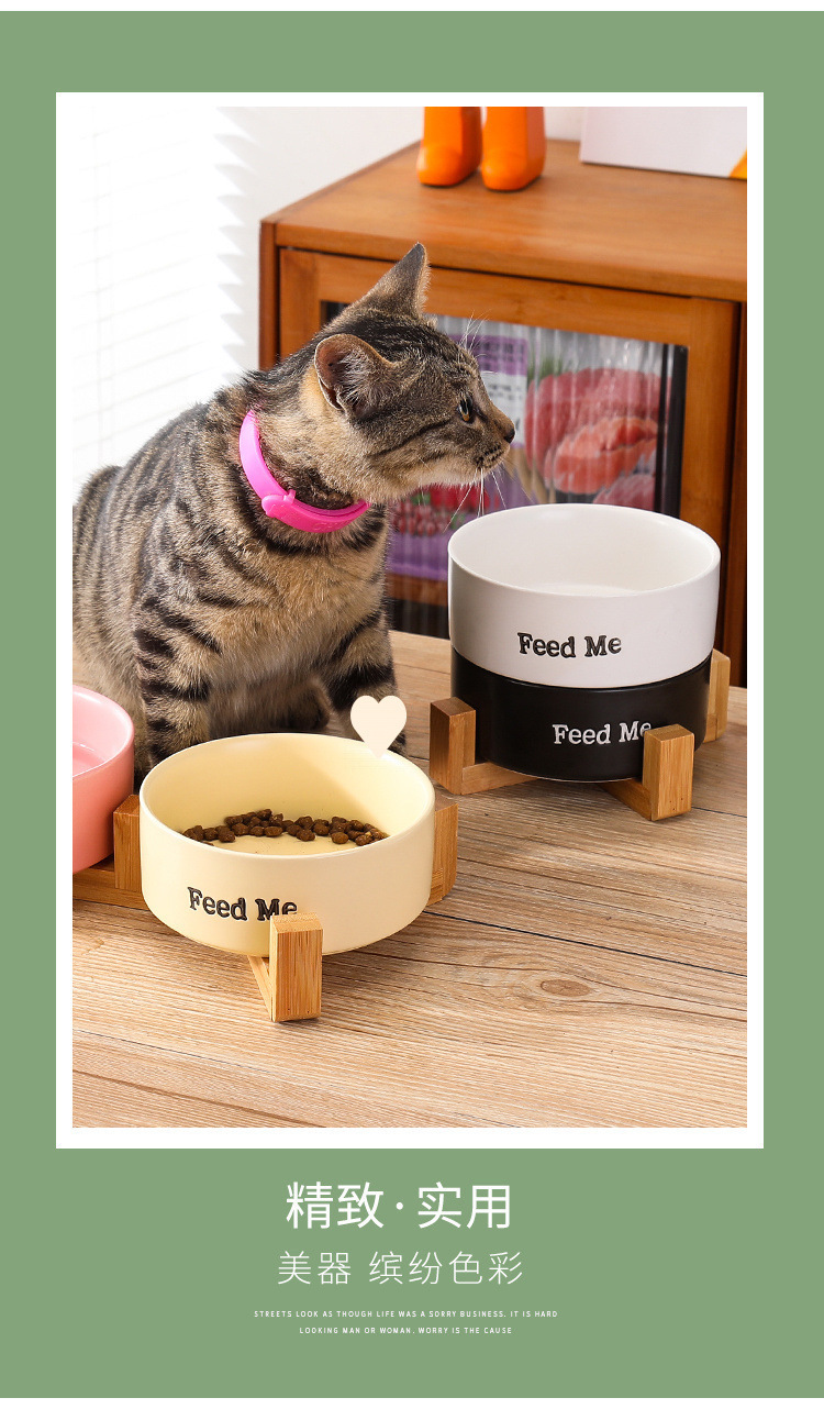 • 노란 고양이 그릇(나무 스탠드 포함)