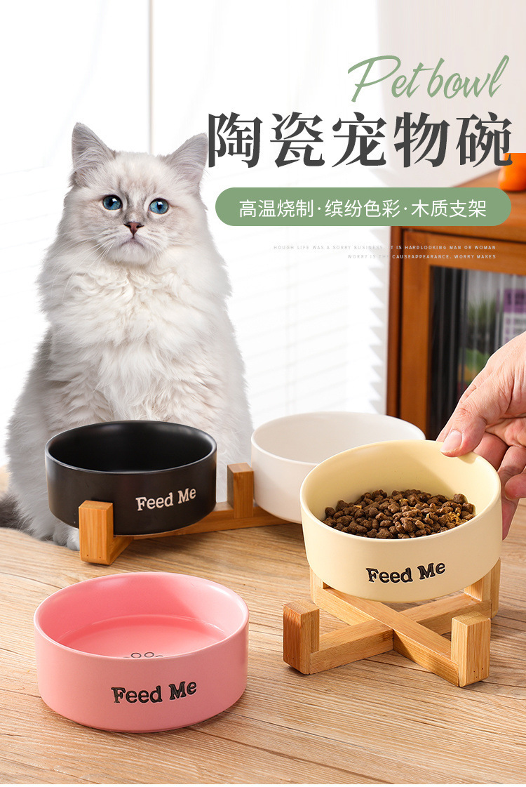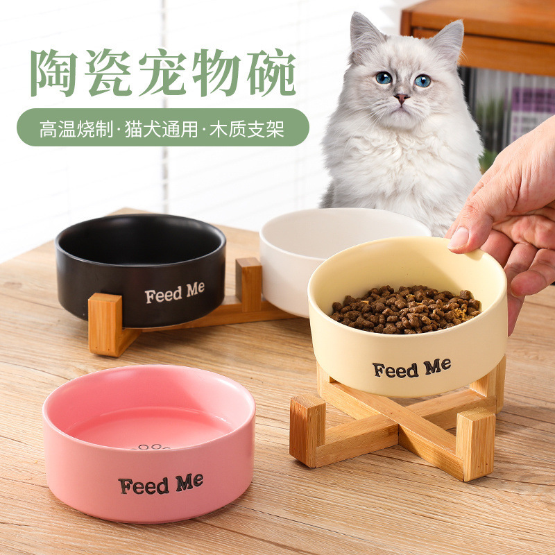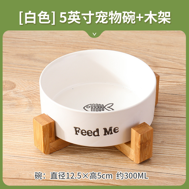 • 흰색 고양이 밥그릇(나무 스탠드 포함)