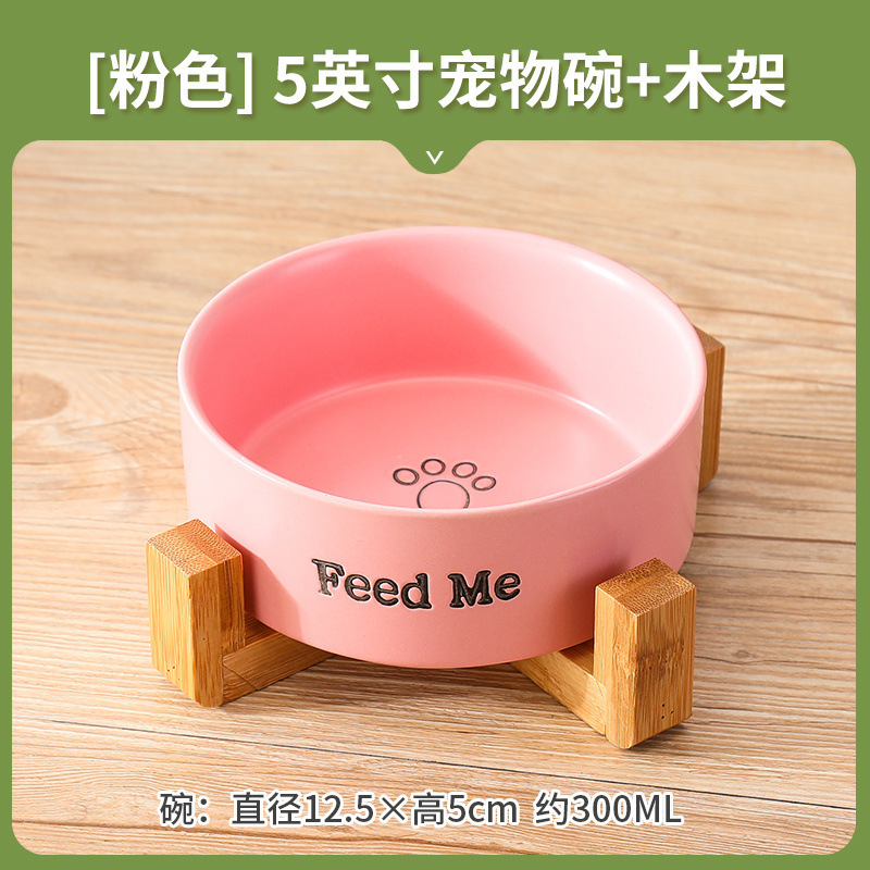 • 핑크 고양이 그릇(나무 스탠드 포함)