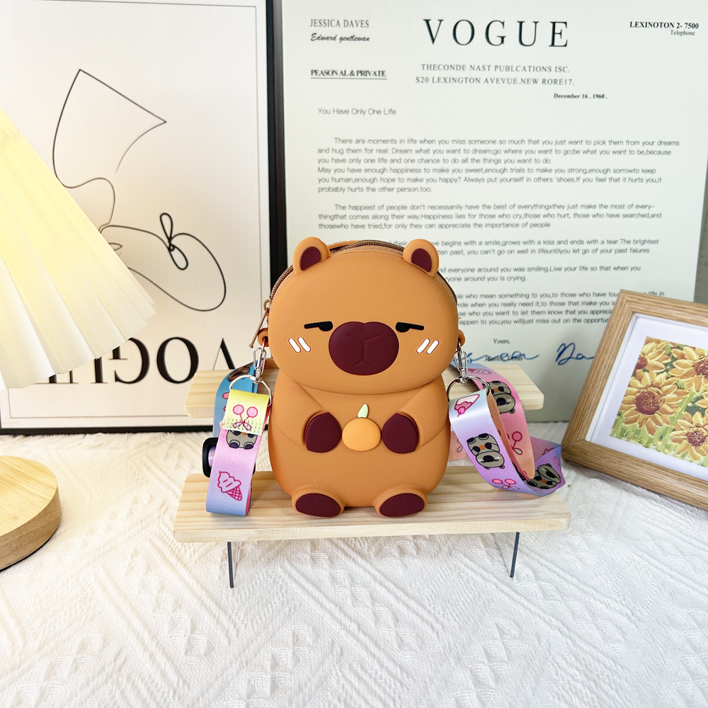 카피발라 가방 어린이 동전 지갑 귀여운 크로스백 실리콘 작은 가방 만화 수달 이어폰 가방