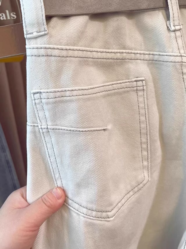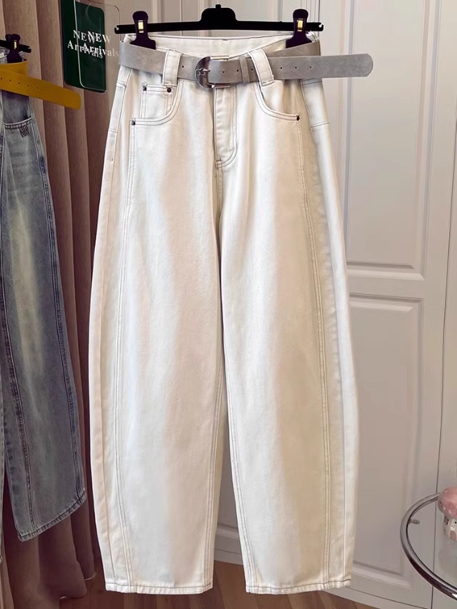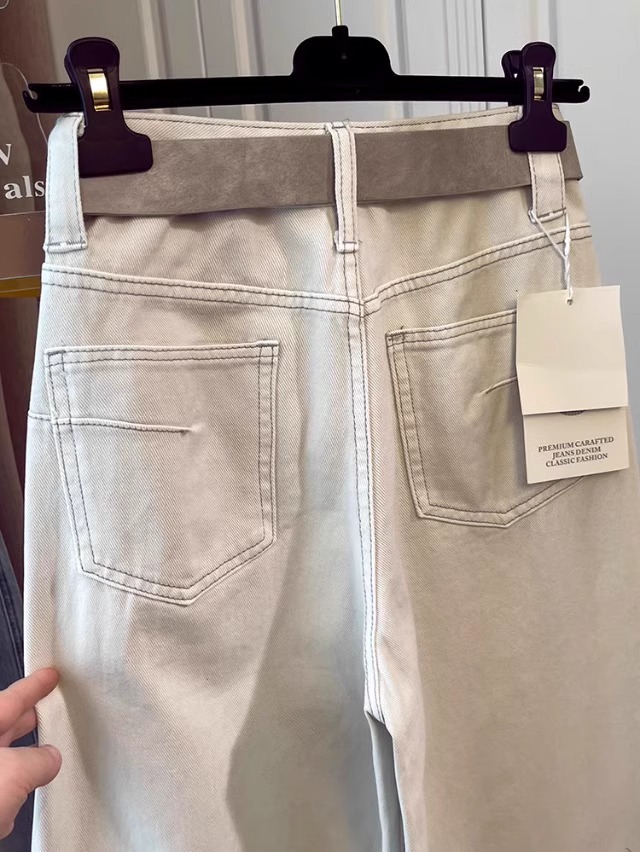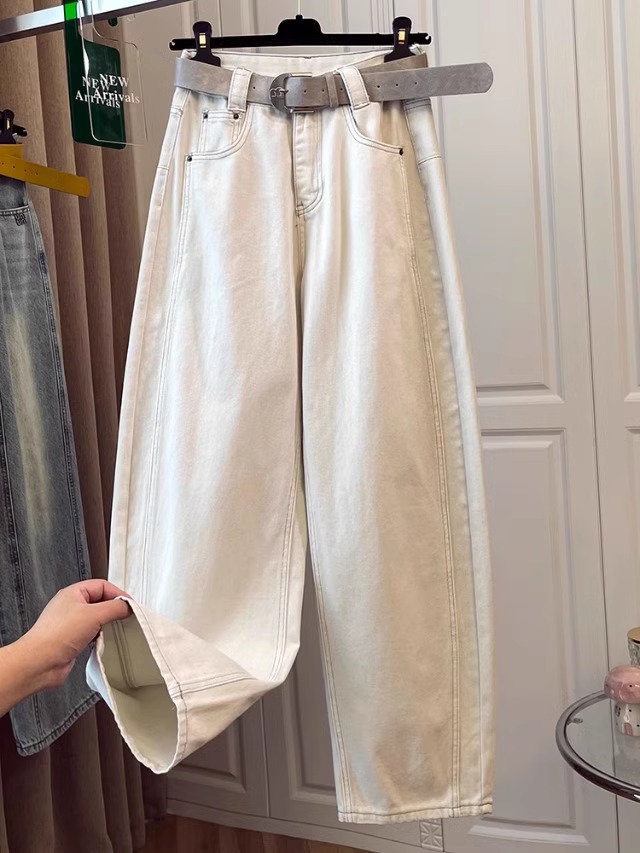 여성을위한 레트로 베이지색 세이버 스트레이트 청바지 봄, 가을 2025 새로운 하이 웨이스트 슬림 루즈 와이드 레그 바나나 바지스토어 가기