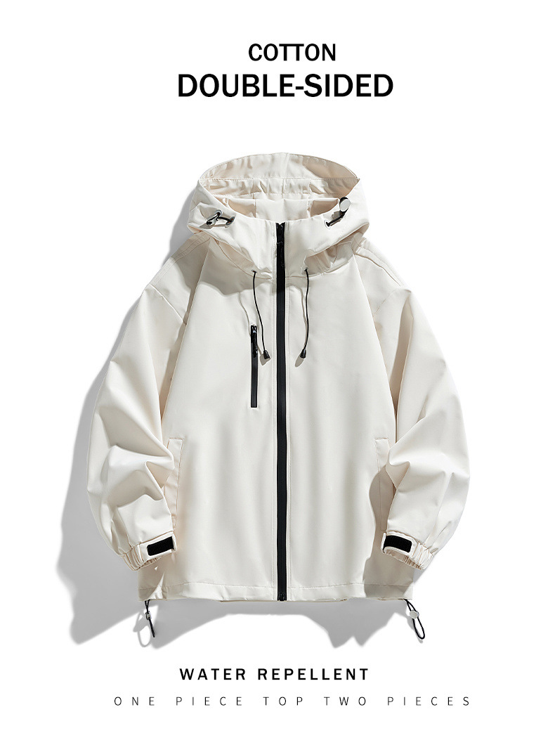 2024 새로운 재킷 남성 후드 커플 착용 남성 스타일 두 개의 개방형 솔리드 컬러 재킷 남성과 여성 야외 스포츠