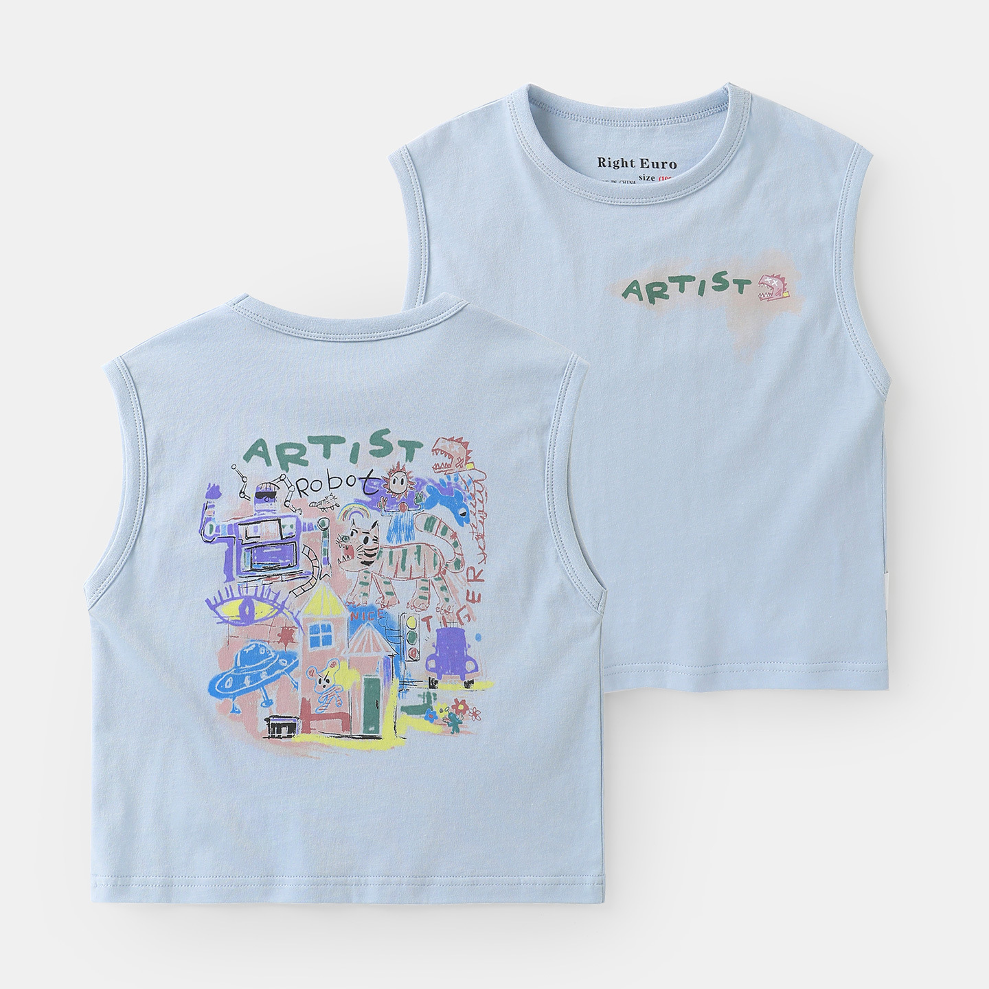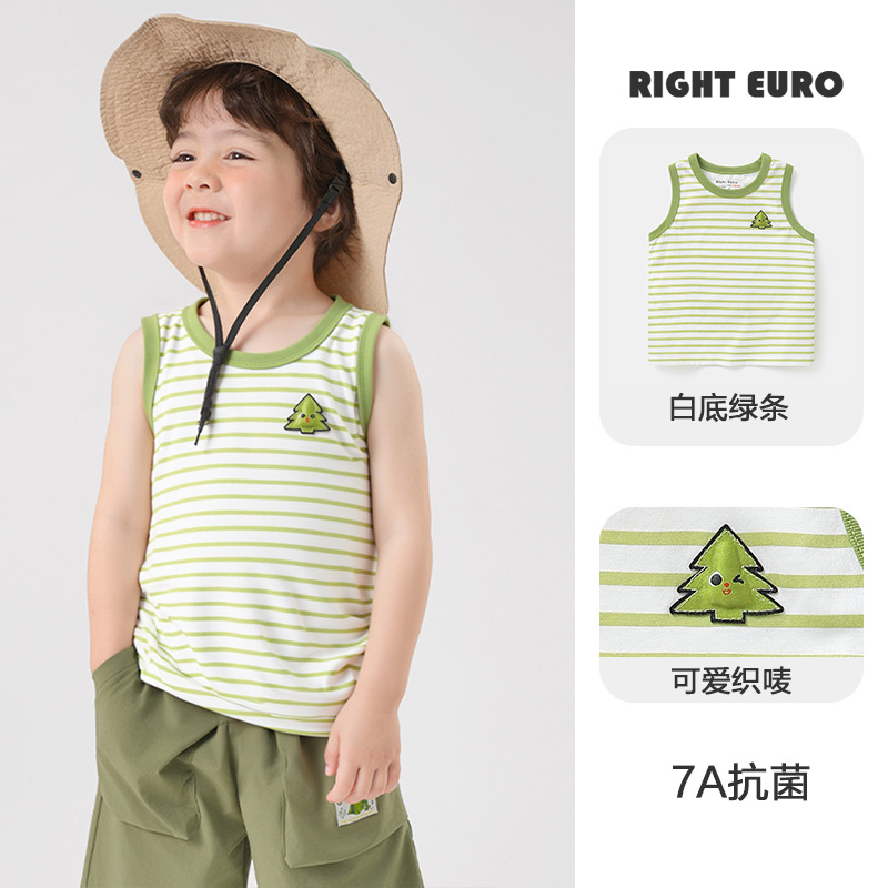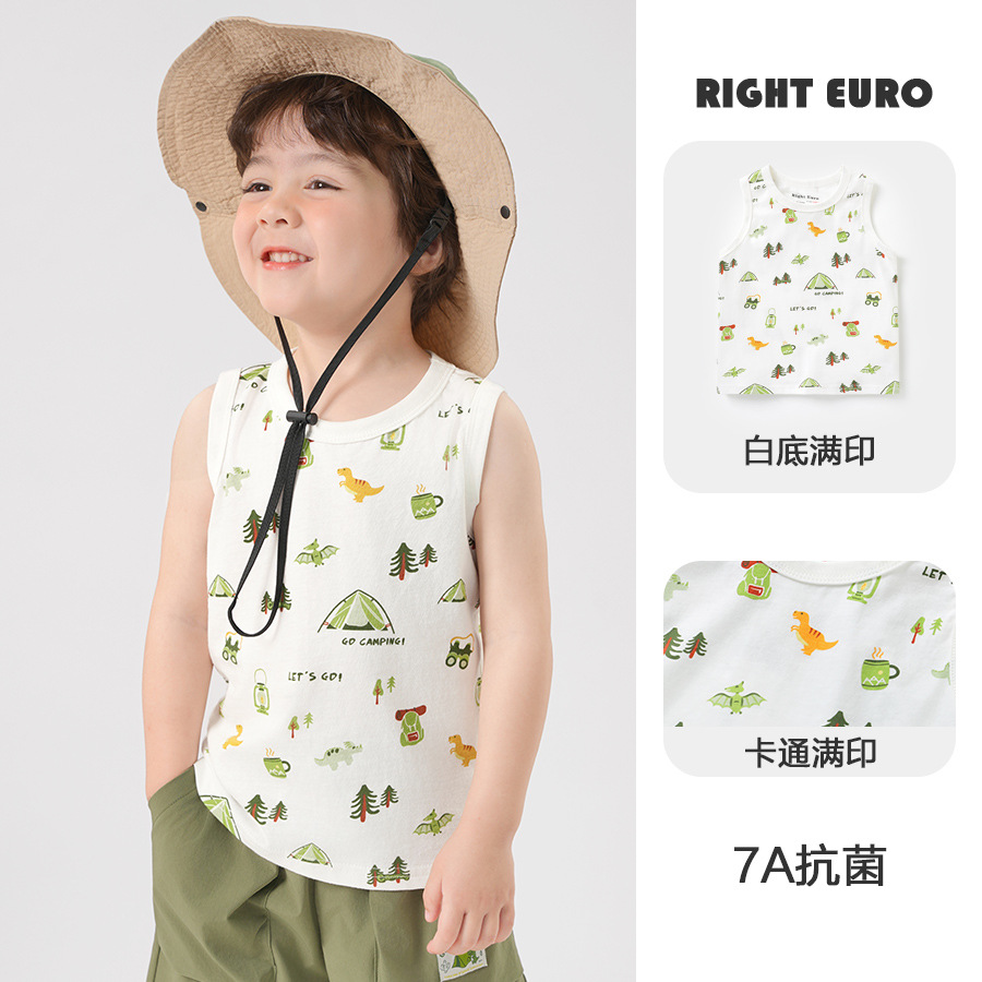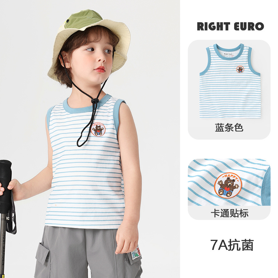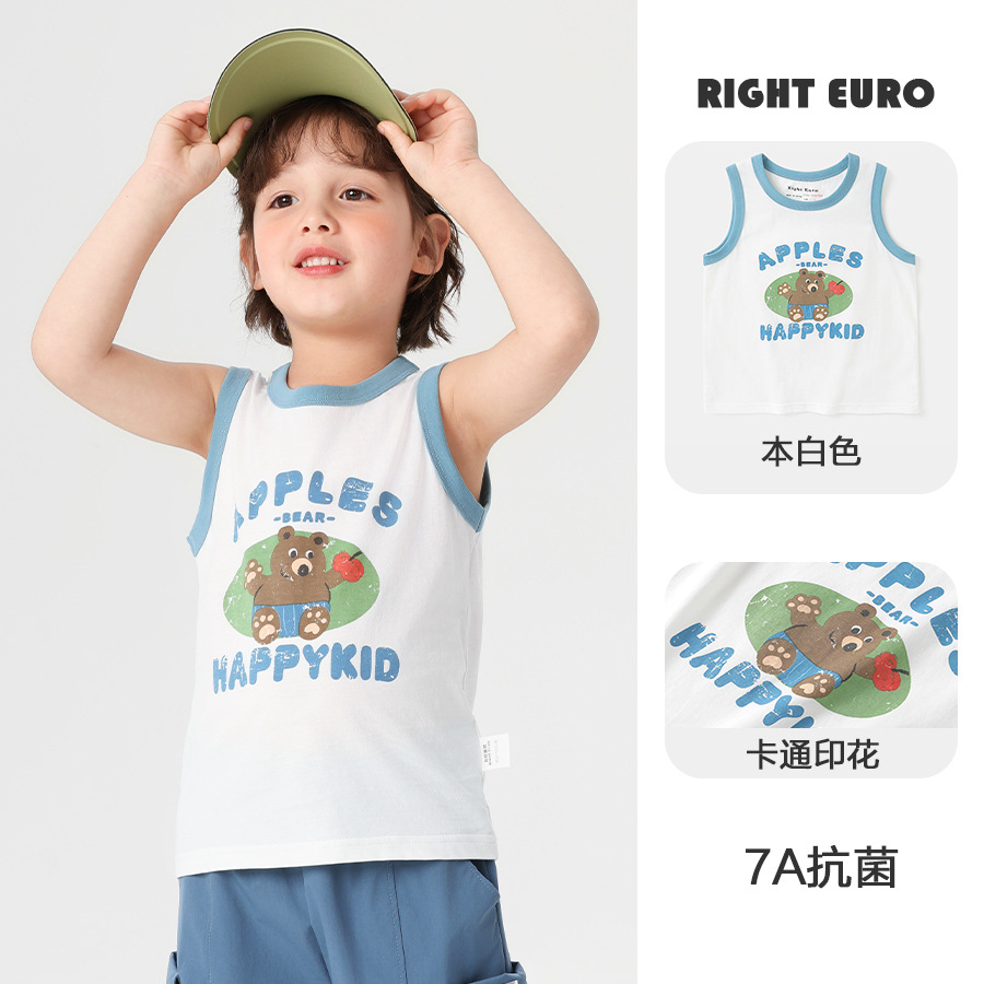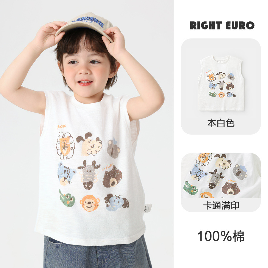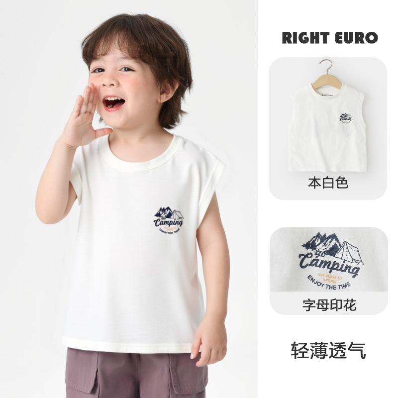 오른쪽 유럽 소년 여름 조끼 순수 코튼 쿨 2025 새로운 아동 의류 아동용 베이비 민소매 티셔츠 여름 얇은 스타일스토어 가기