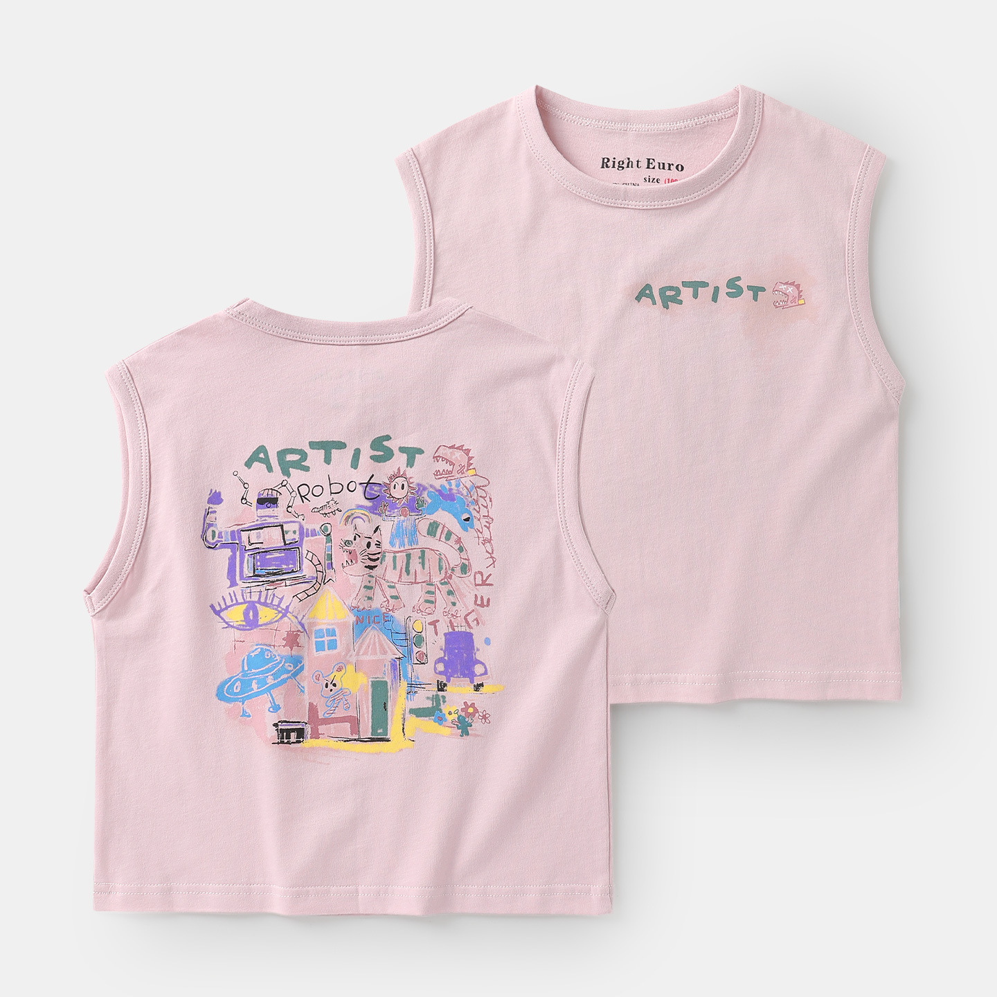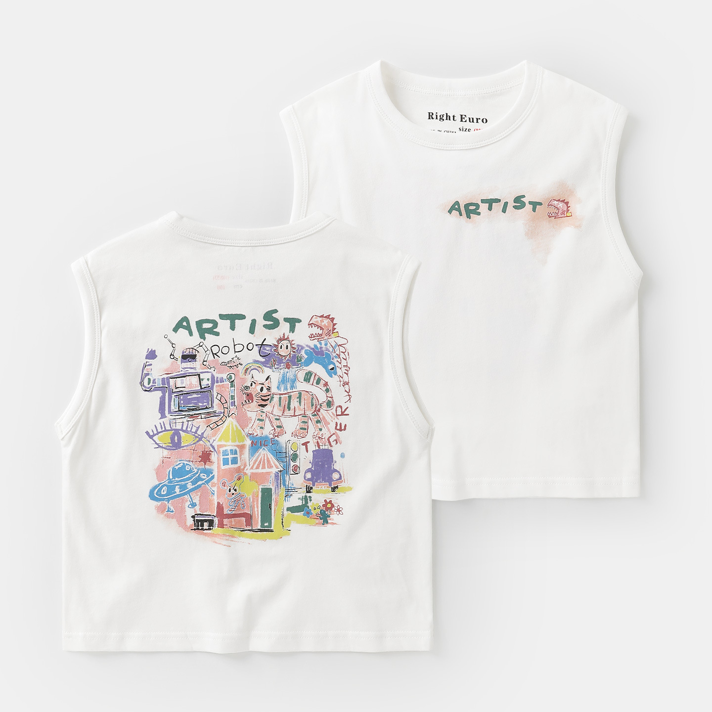 오른쪽 유럽 소년 여름 조끼 순수 코튼 쿨 2025 새로운 아동 의류 아동용 베이비 민소매 티셔츠 여름 얇은 스타일
